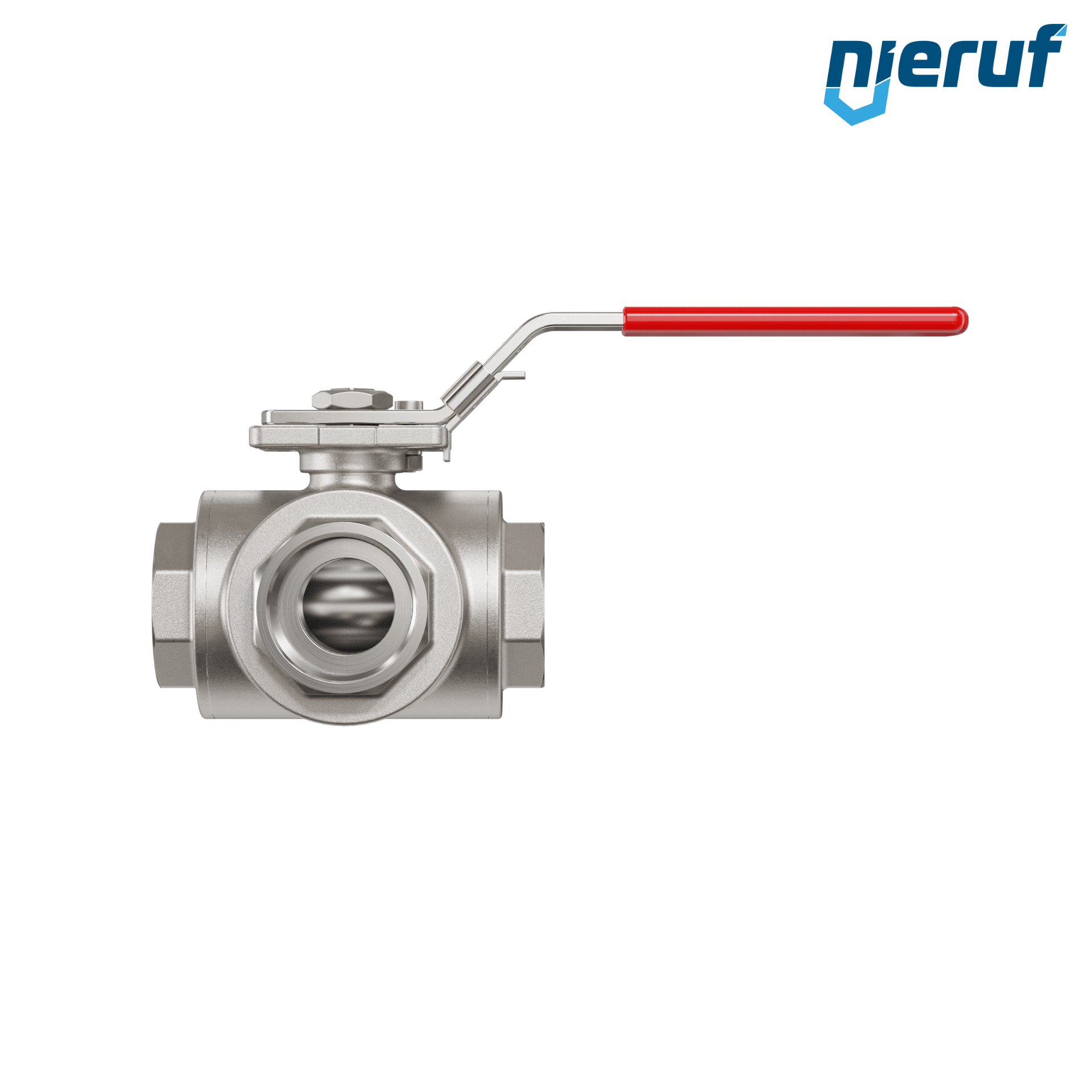 | Produktmerkmale | Dreiwege-Kugelhahn aus Edelstahl mit Stopfbuchse und schwimmender Kugel mit T-Bohrung |