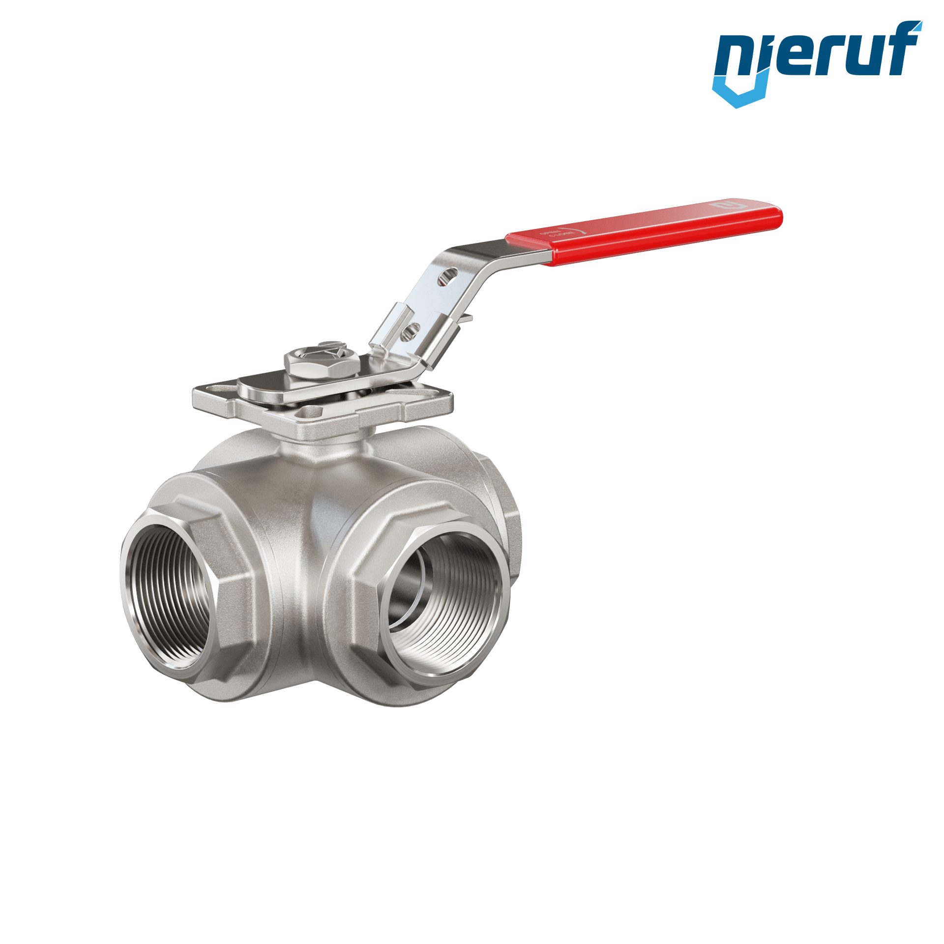 3 Wege Kugelhahn DN40 - 1 1/2" Zoll GK09 Edelstahl T-Bohrung