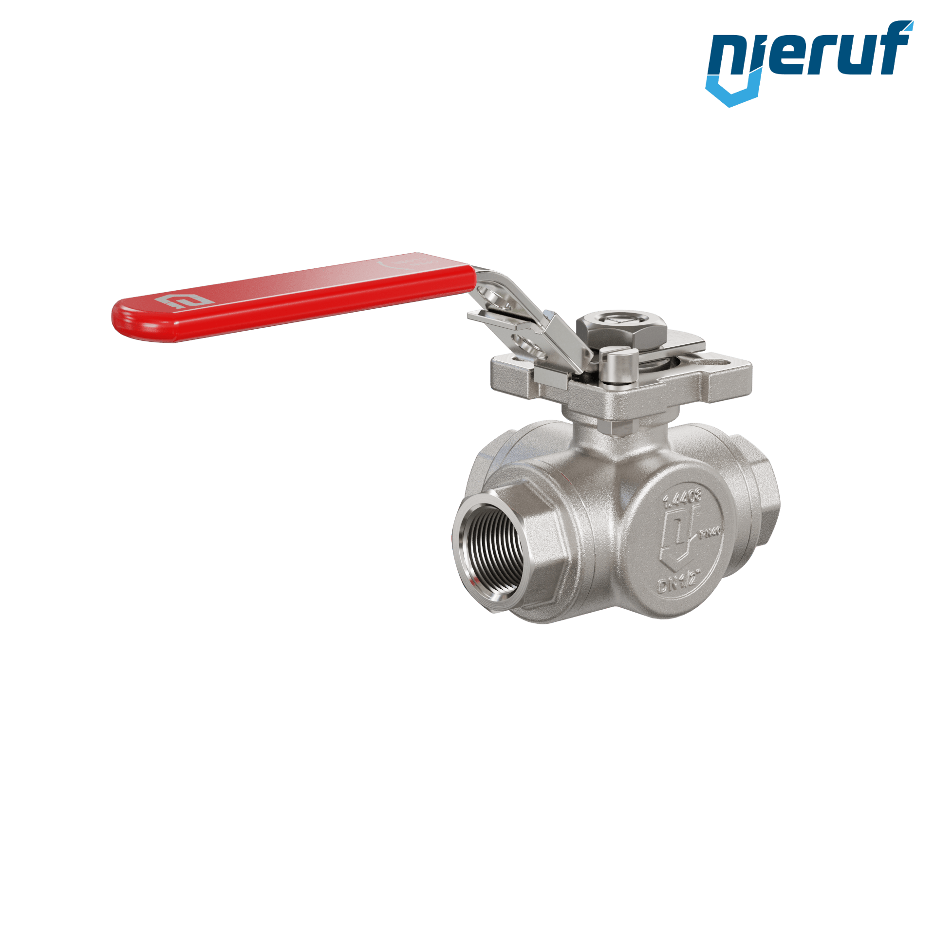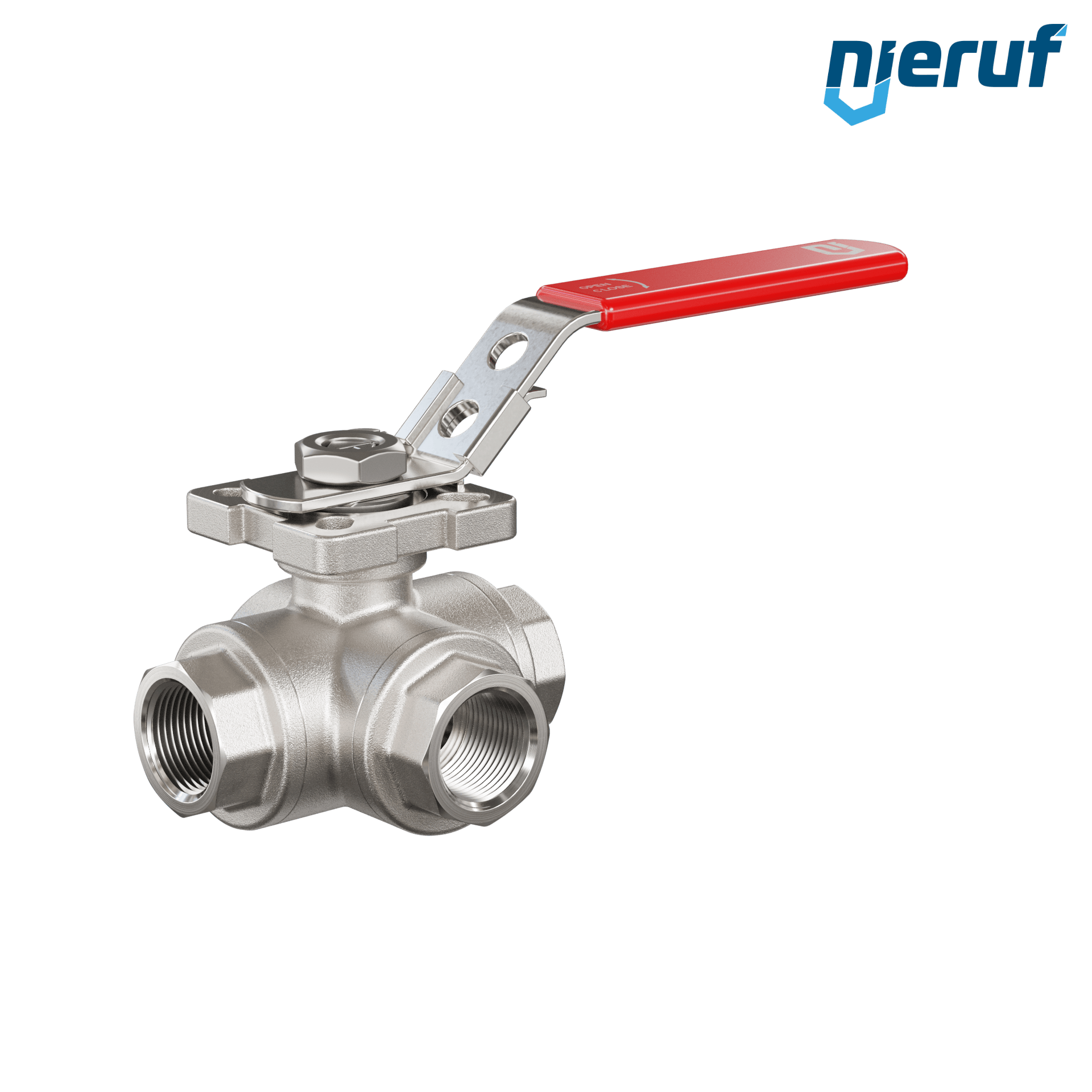 | Produktmerkmale | Dreiwege-Kugelhahn aus Edelstahl mit Stopfbuchse und schwimmender Kugel mit T-Bohrung |