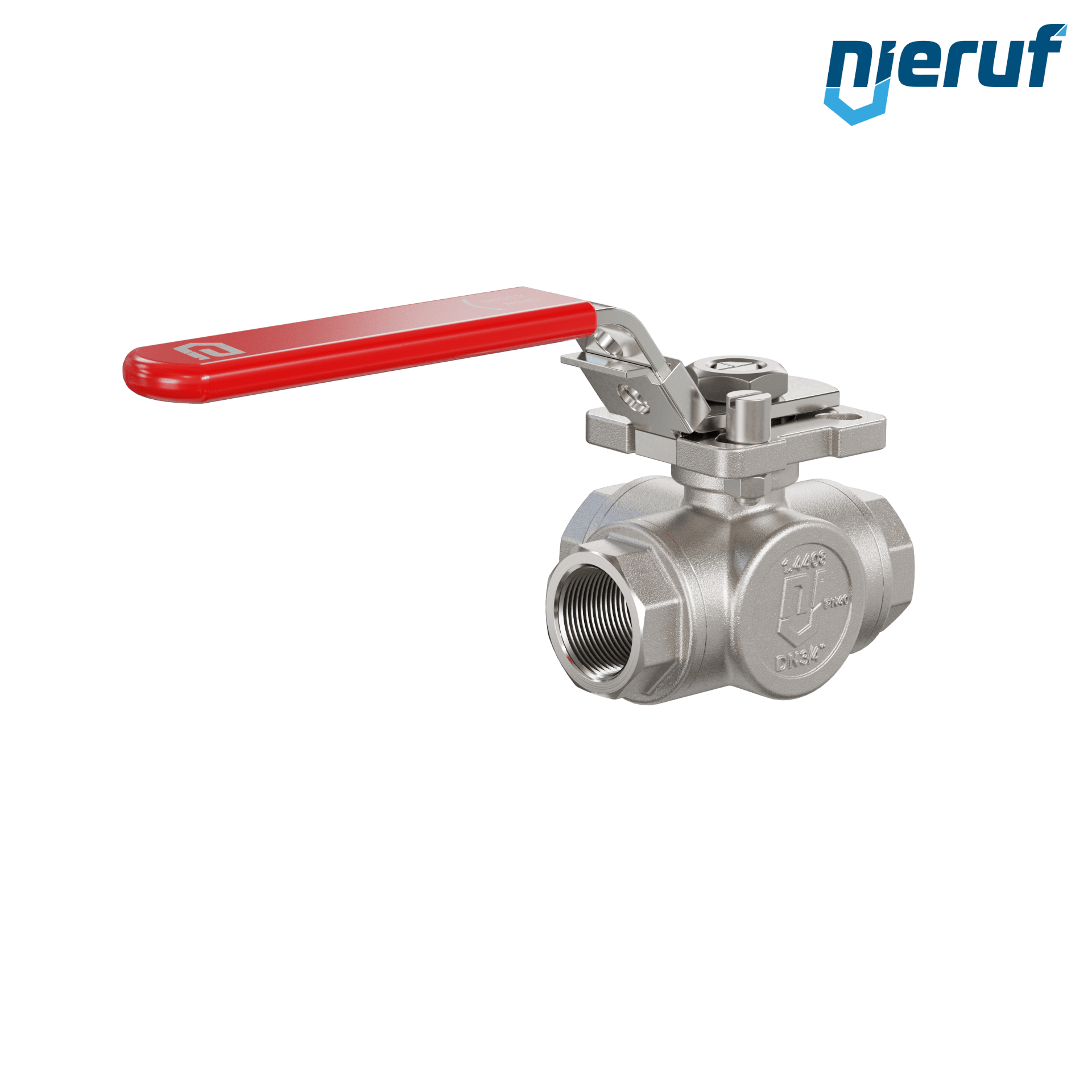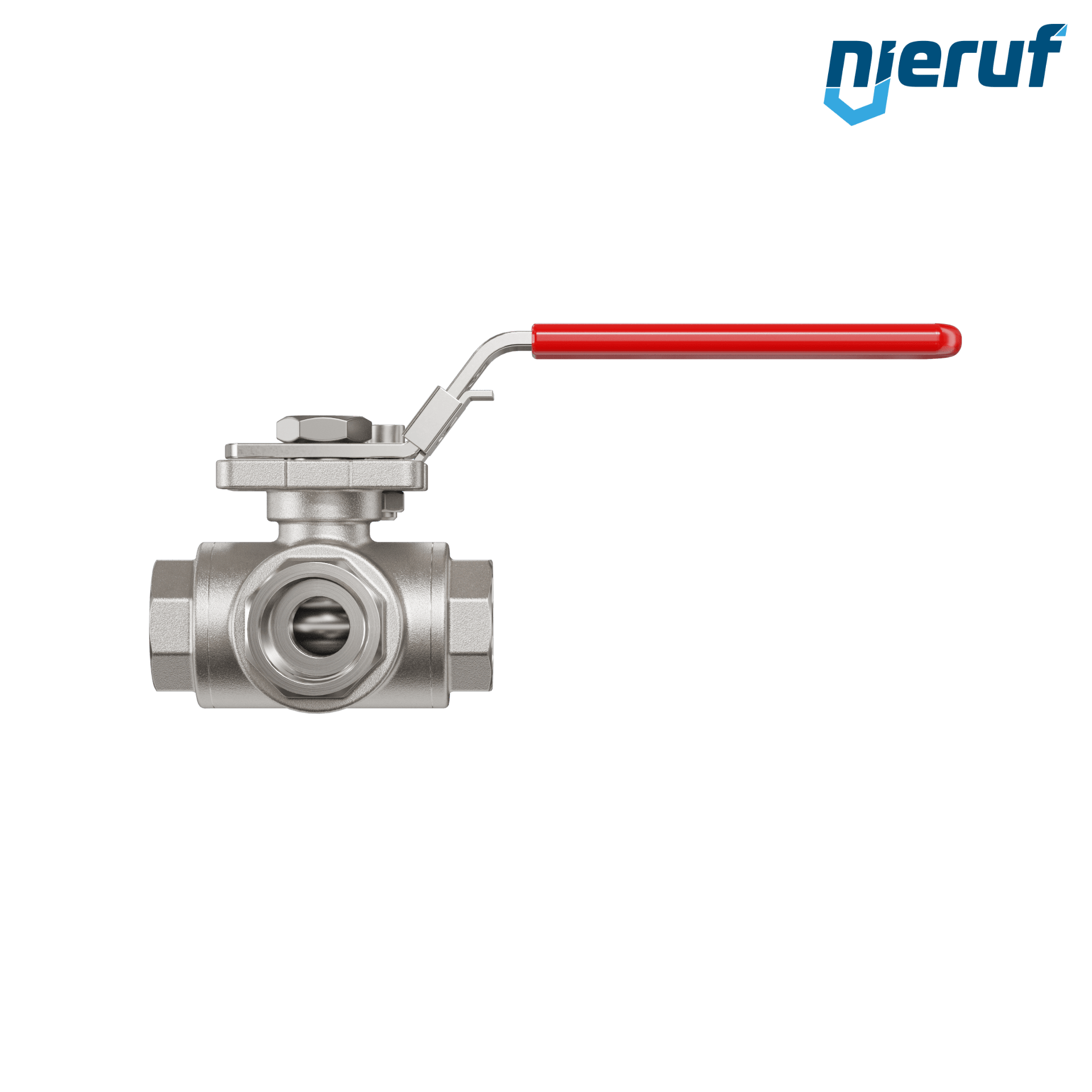 | Produktmerkmale | Dreiwege-Kugelhahn aus Edelstahl mit Stopfbuchse und schwimmender Kugel mit T-Bohrung |