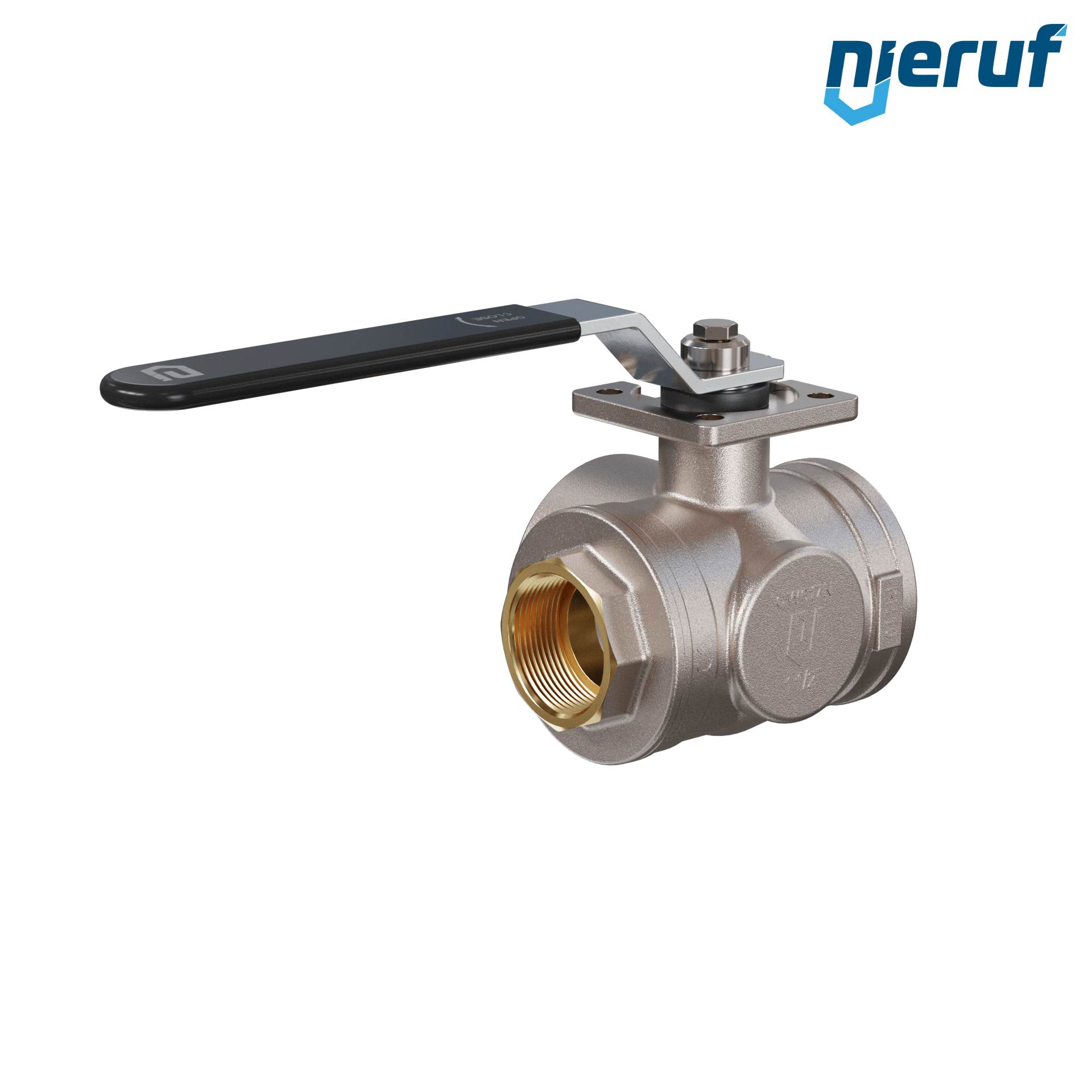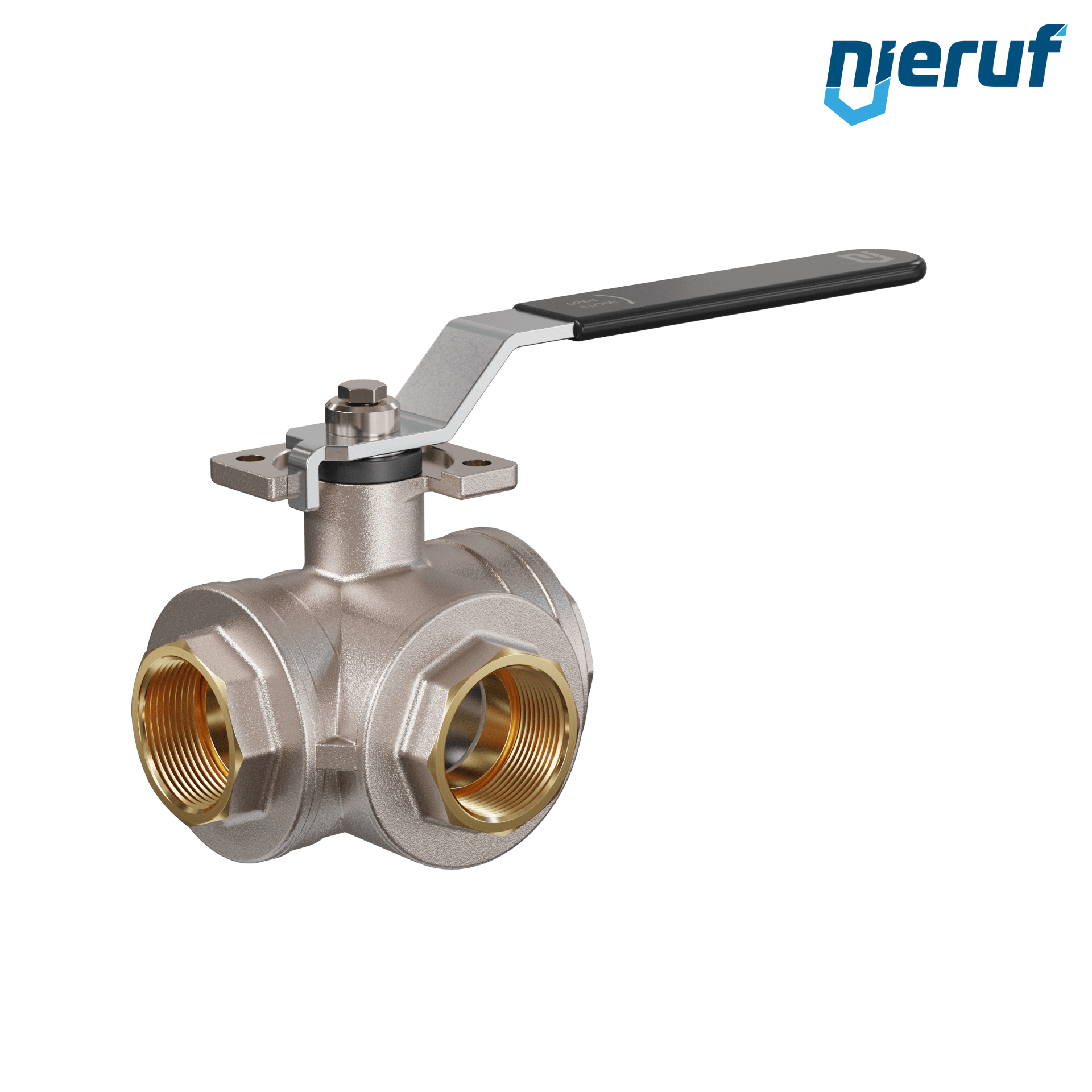| Produktmerkmale | Dreiwege-Kugelhahn aus Messing mit Stopfbuchse und schwimmender Kugel mit T-Bohrung |