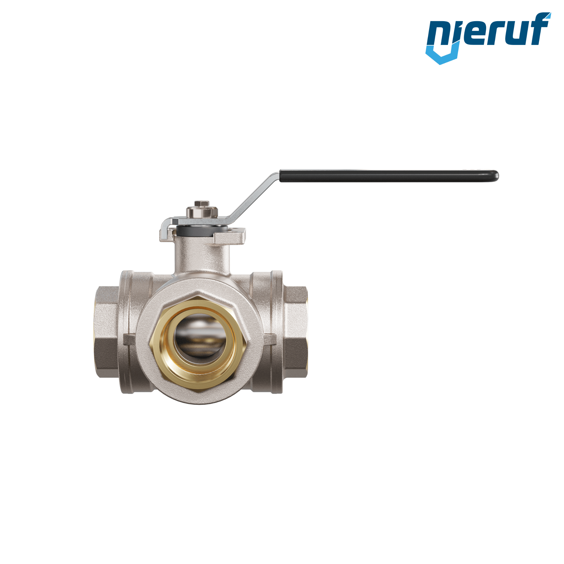 | Produktmerkmale | Dreiwege-Kugelhahn aus Messing mit Stopfbuchse und schwimmender Kugel mit L-Bohrung |