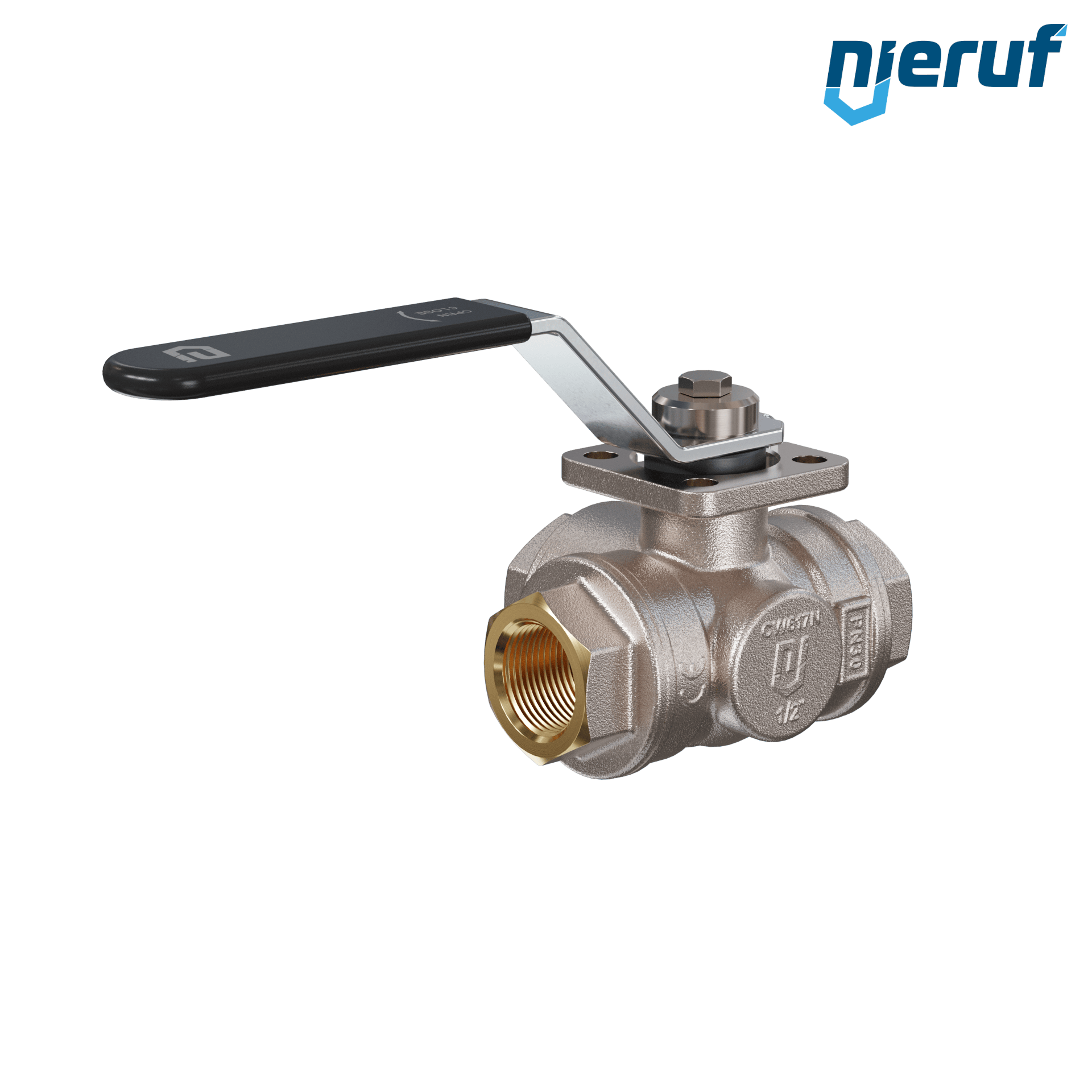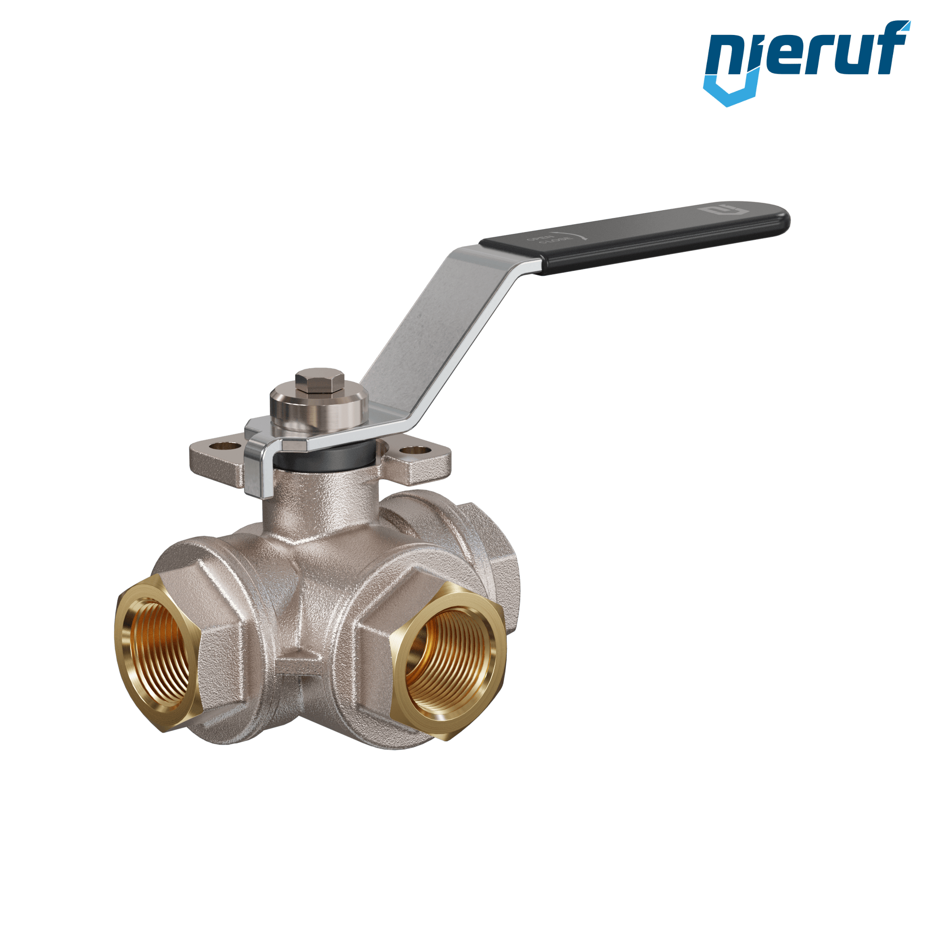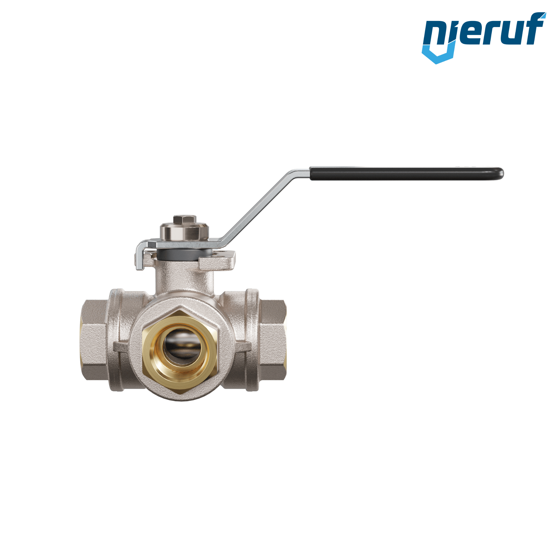 | Produktmerkmale | Dreiwege-Kugelhahn aus Messing mit Stopfbuchse und schwimmender Kugel mit T-Bohrung |