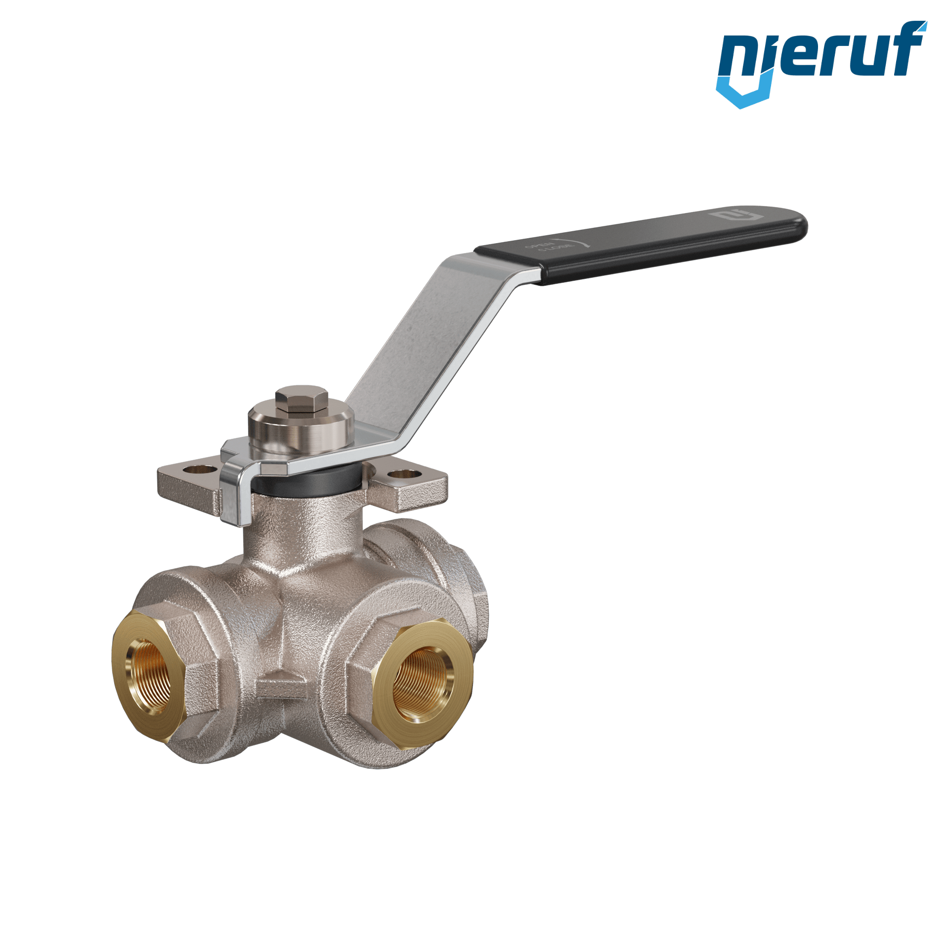 | Produktmerkmale | Dreiwege-Kugelhahn aus Messing mit Stopfbuchse und schwimmender Kugel mit L-Bohrung |