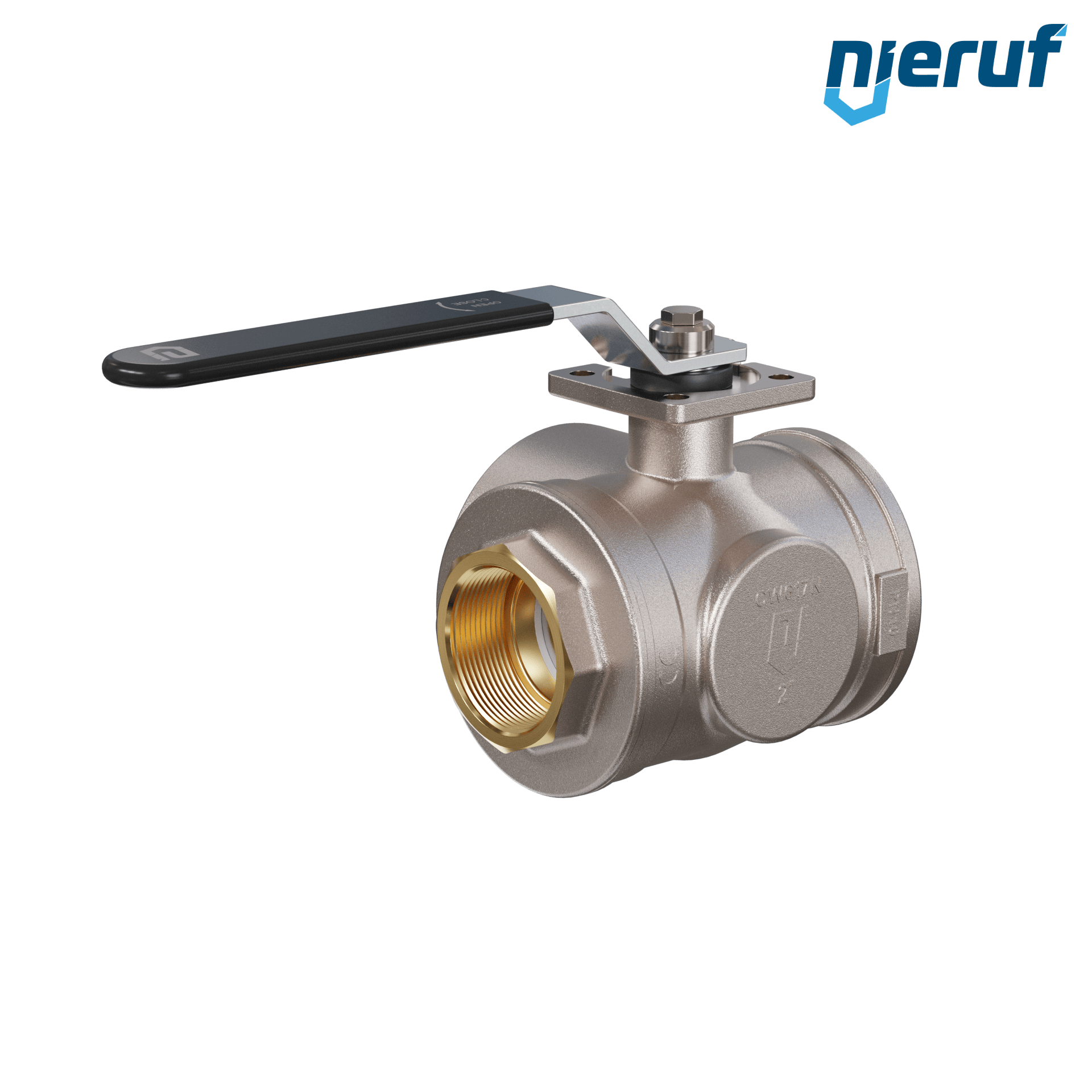 | Produktmerkmale | Dreiwege-Kugelhahn aus Messing mit Stopfbuchse und schwimmender Kugel mit L-Bohrung |