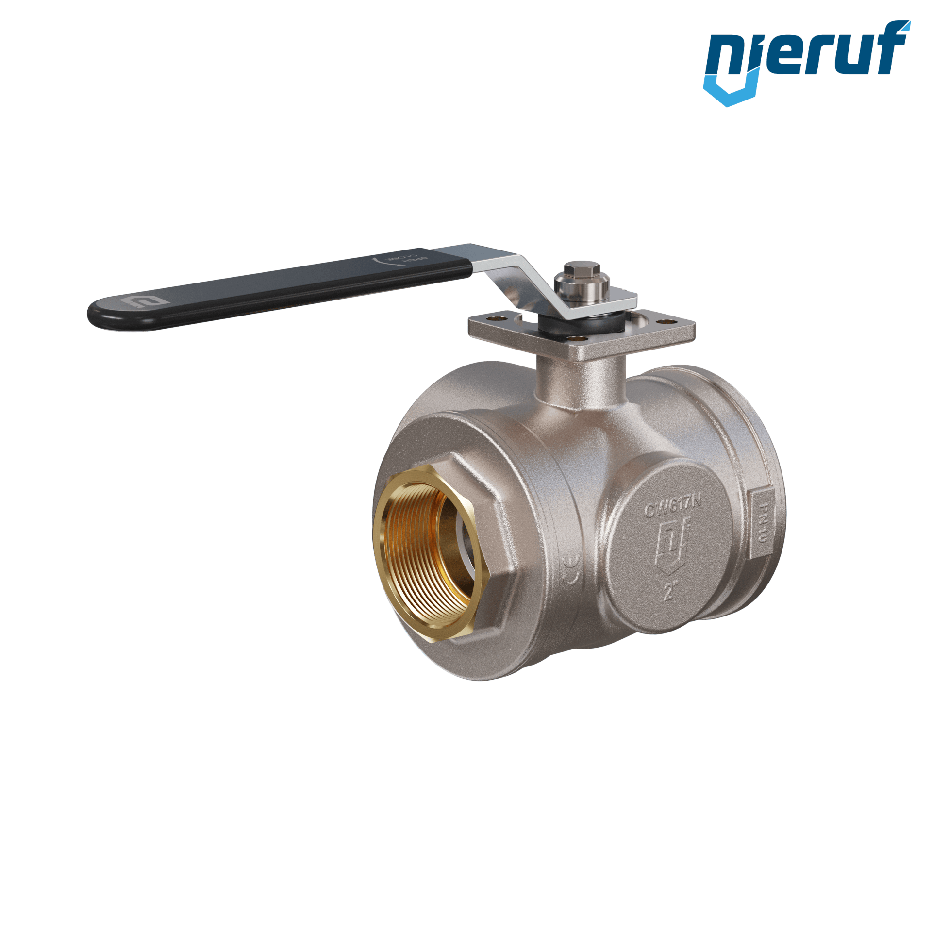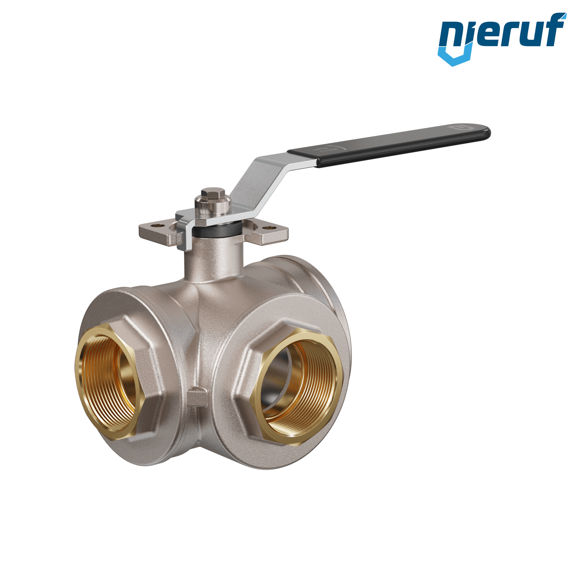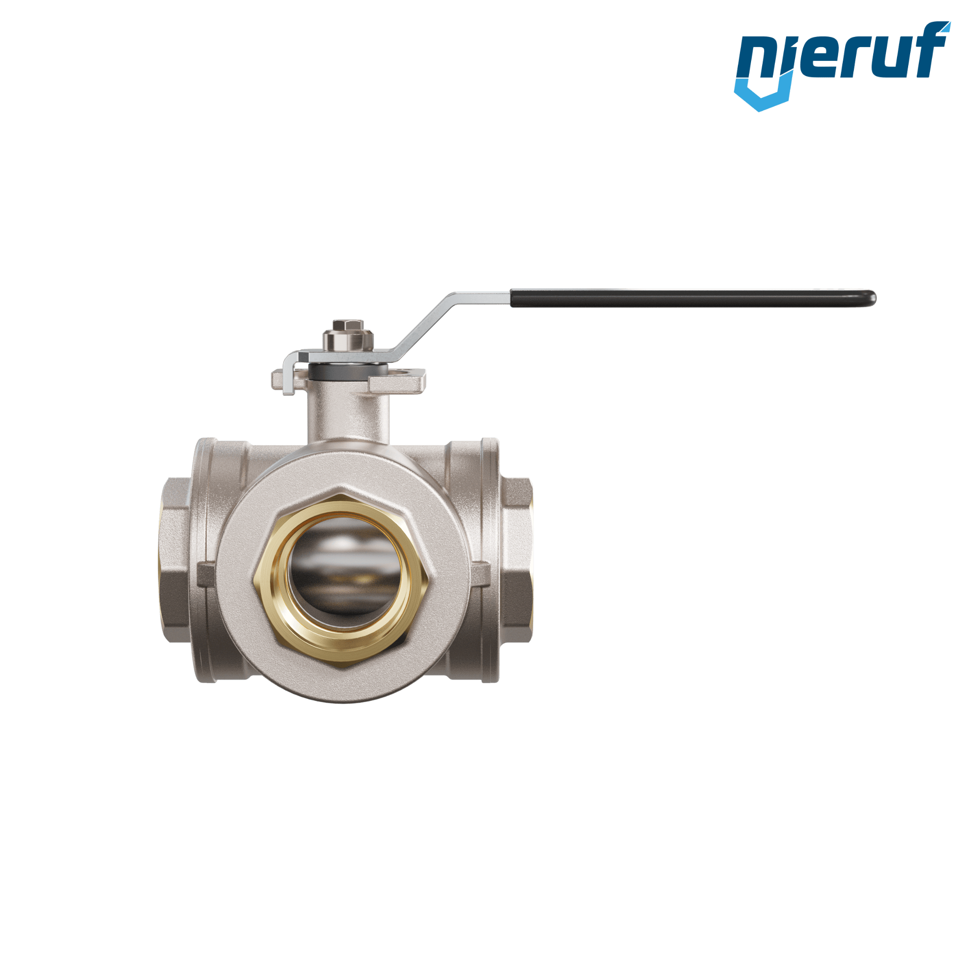 | Produktmerkmale | Dreiwege-Kugelhahn aus Messing mit Stopfbuchse und schwimmender Kugel mit T-Bohrung |