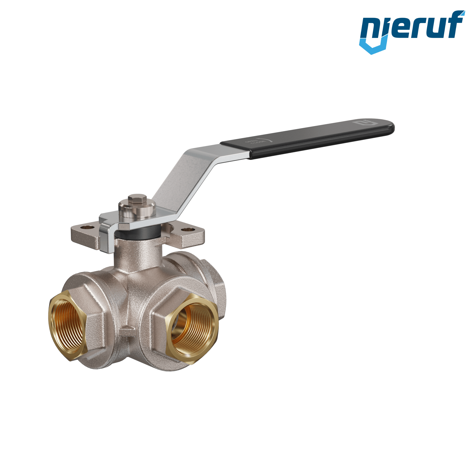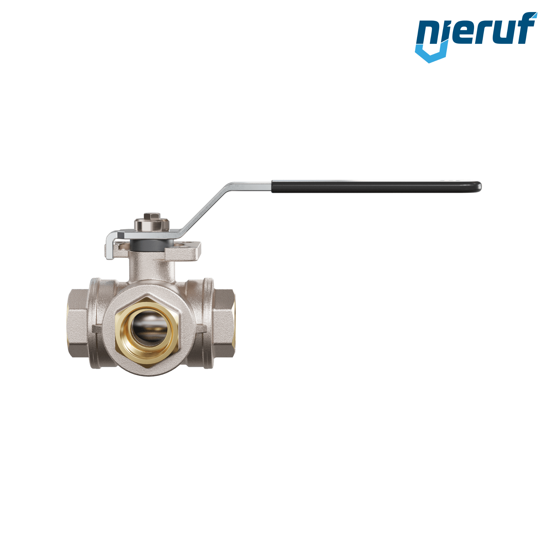 | Produktmerkmale | Dreiwege-Kugelhahn aus Messing mit Stopfbuchse und schwimmender Kugel mit T-Bohrung |