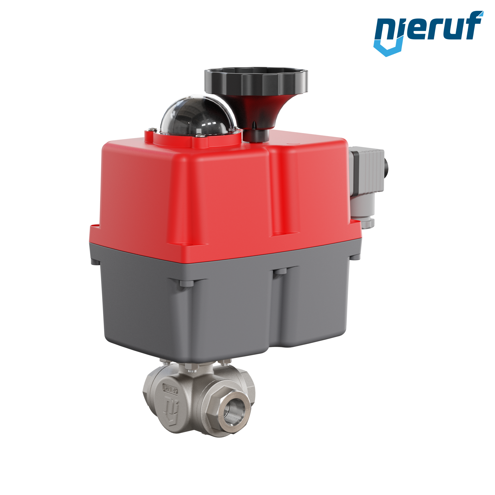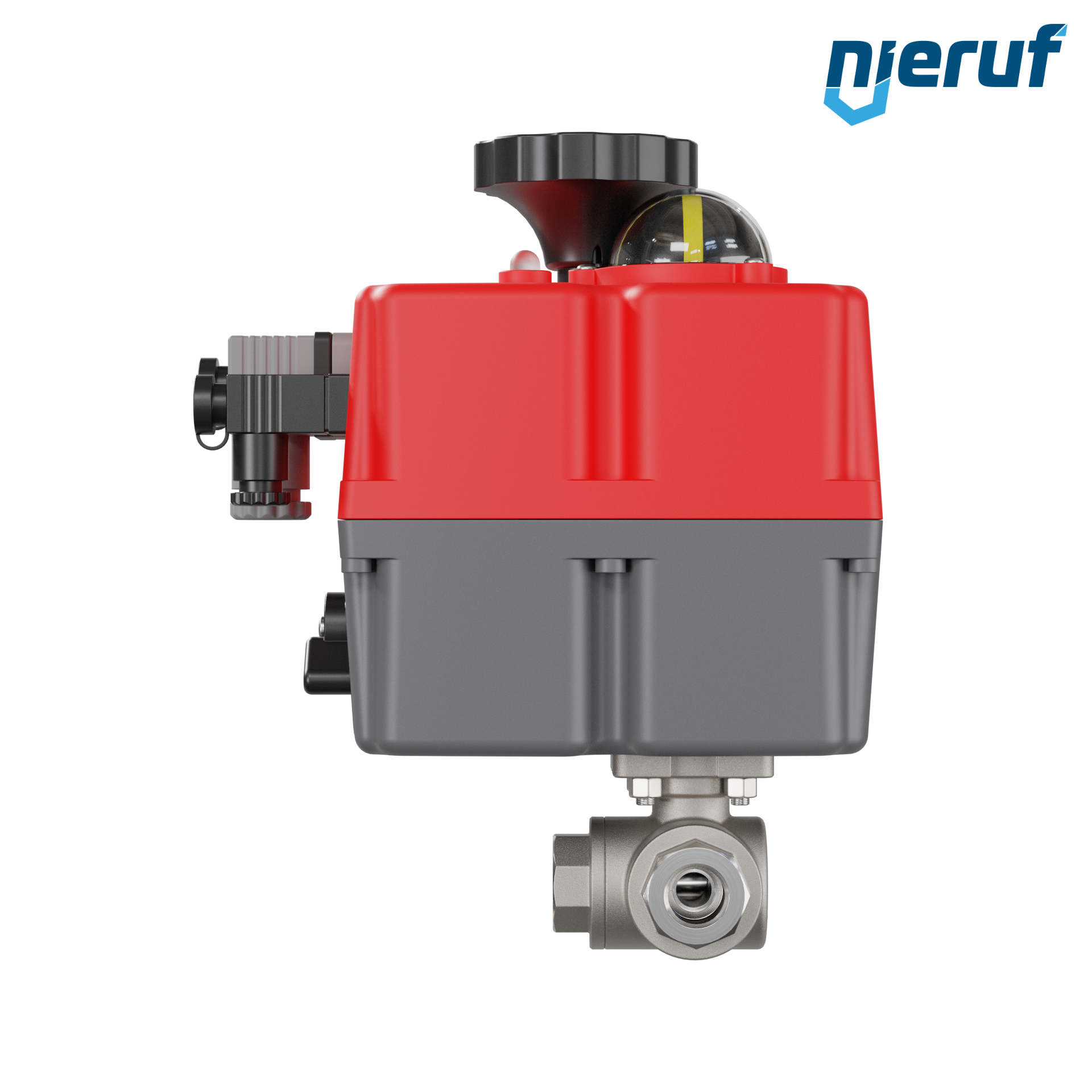 Dieser hoch qualitative Automatik-Muffenkugelhahn aus Edelstahl mit elektronischem Drehantrieb (Serie S) hat eine optische Stellungsanzeige und eine Handnotbetätigung.