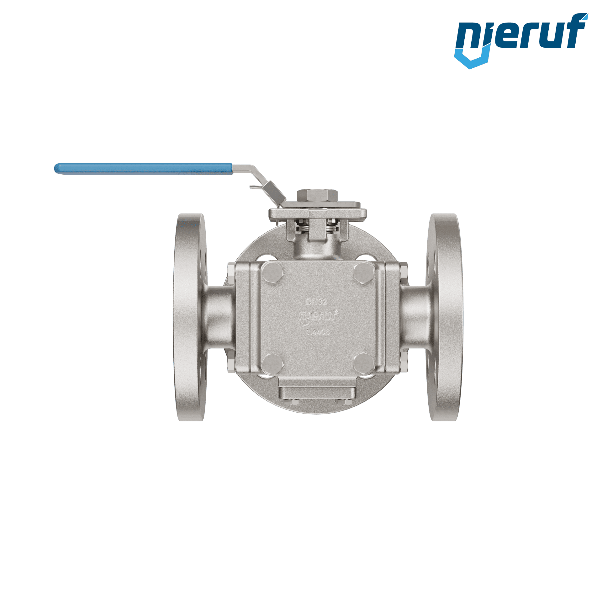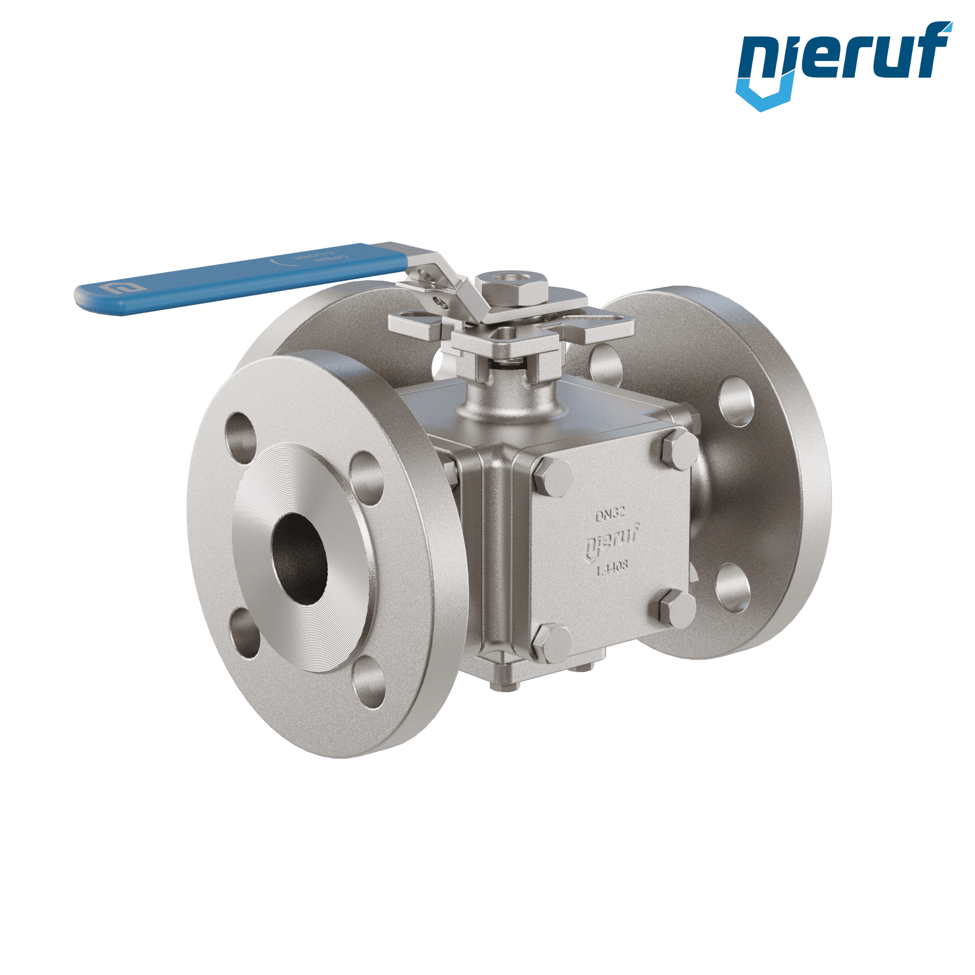 3 Wege Flanschkugelhahn aus Edelstahl DN32 FK09 T-Bohrung Edelstahl 1.4408
