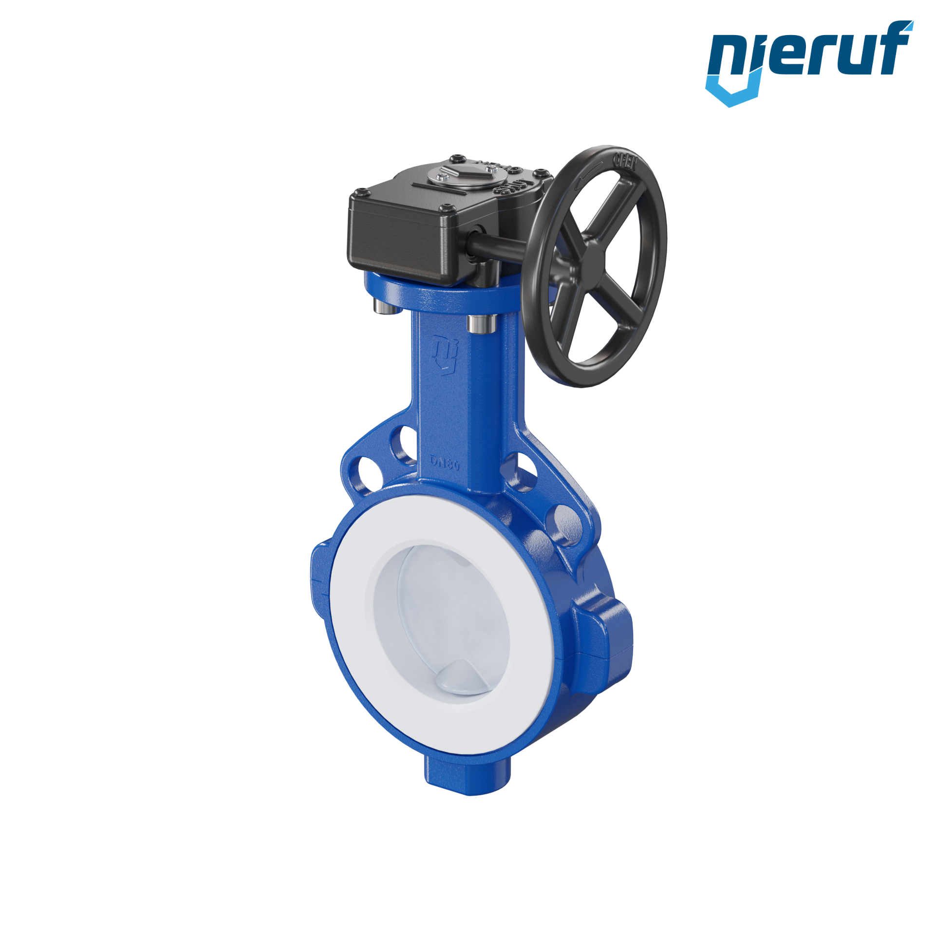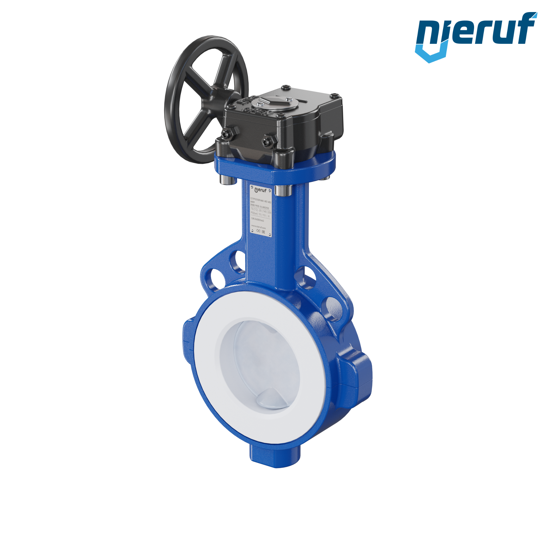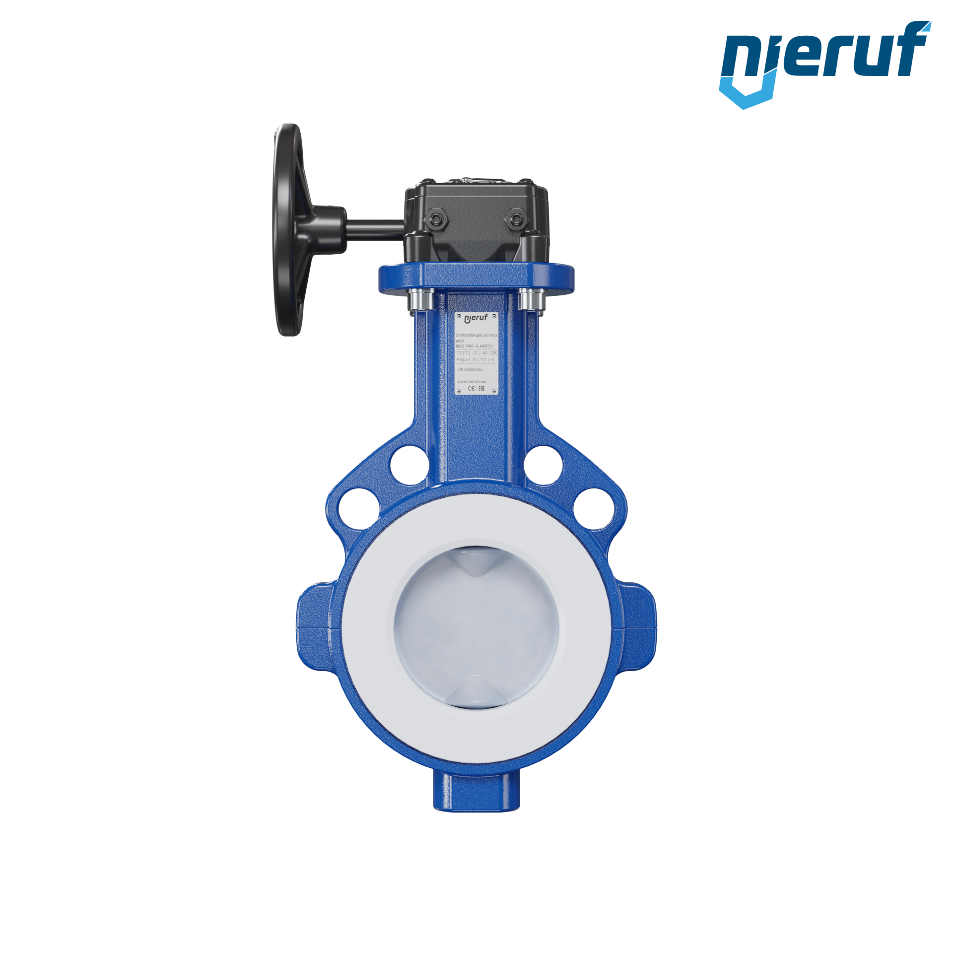 Absperrklappe PTFE AK09 DN80 PN10-PN16 Handradgetriebe FKM Einlage
