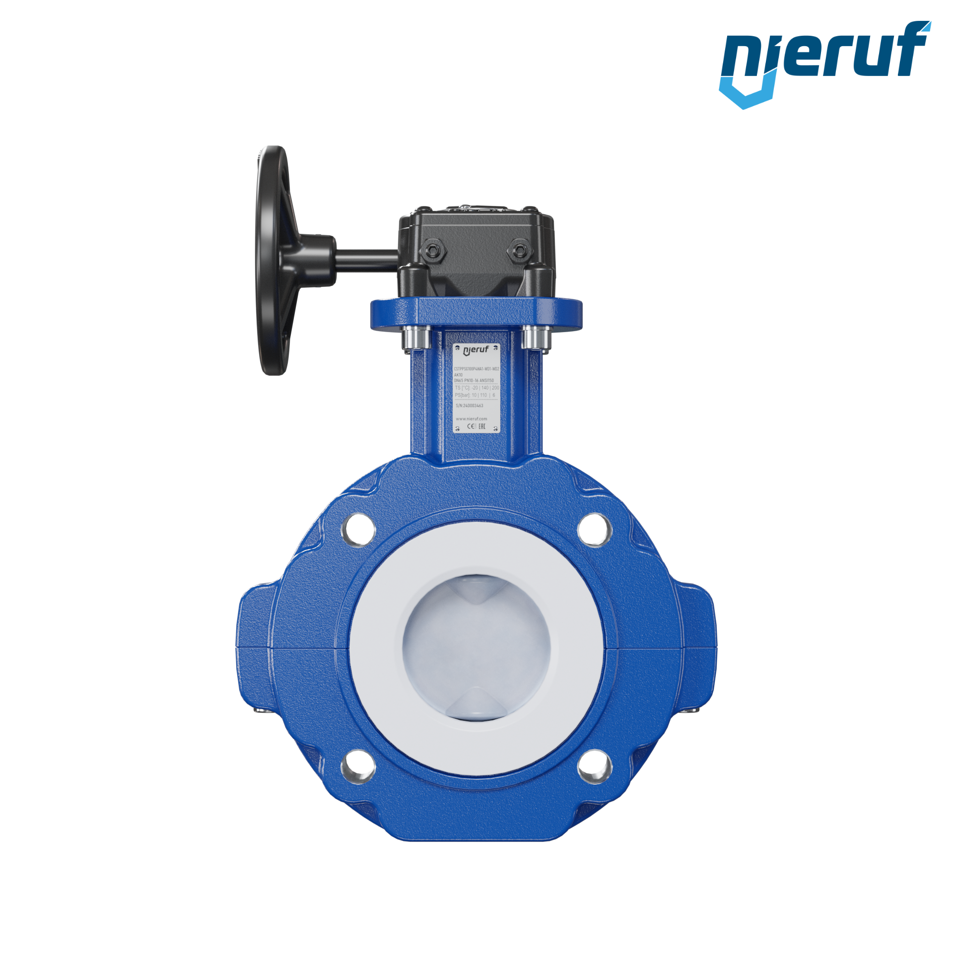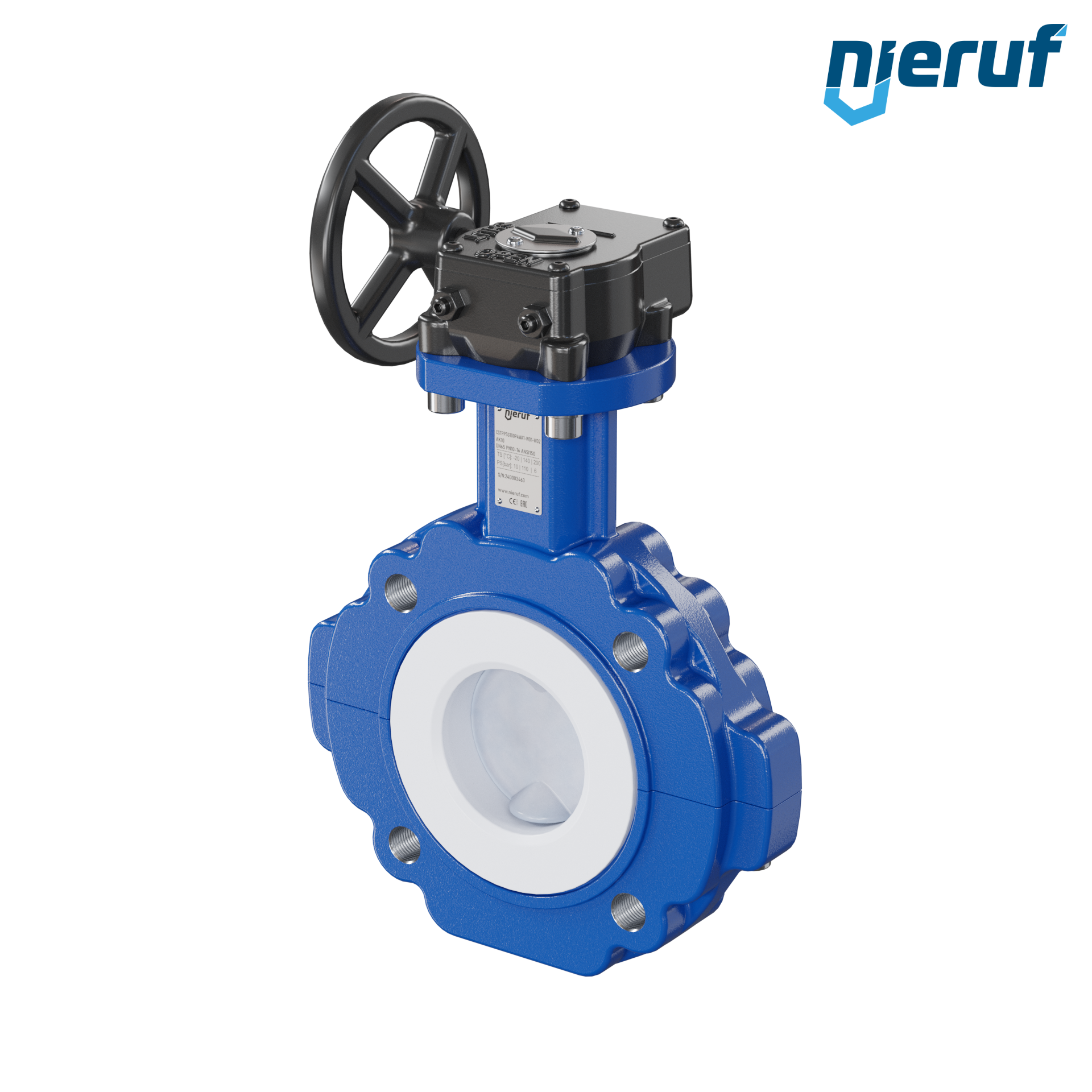 Absperrklappe PTFE AK10 DN65 ANSI150 Handradgetriebe FKM Einlage