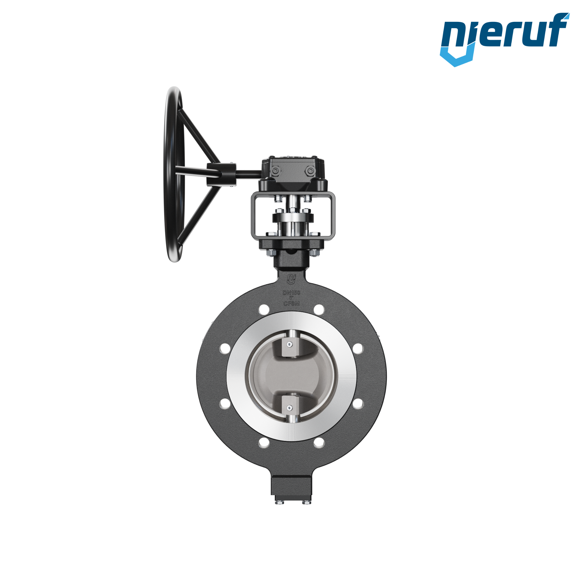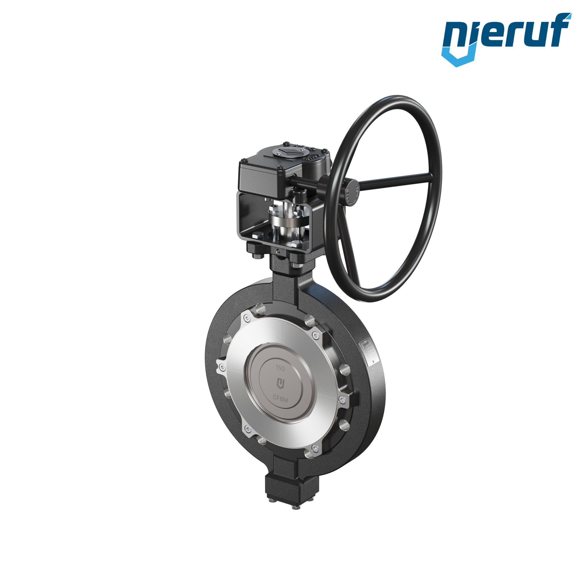 3-fach exzentrische Absperrklappe Gewindeaugen AK14 DN 150 PN10-PN16 mit Gehäuse aus Stahlguss max. 40 bar Getriebe