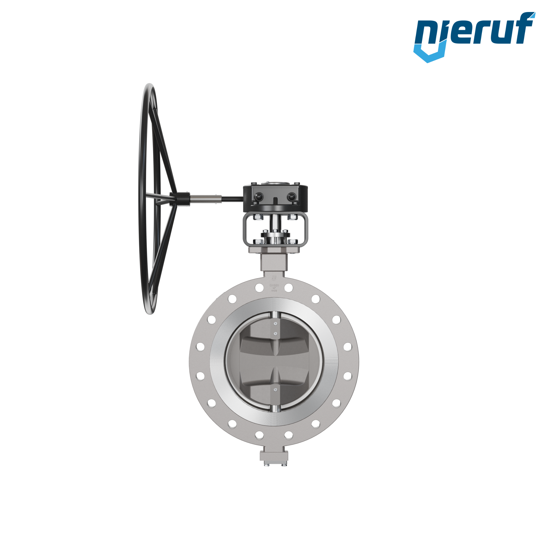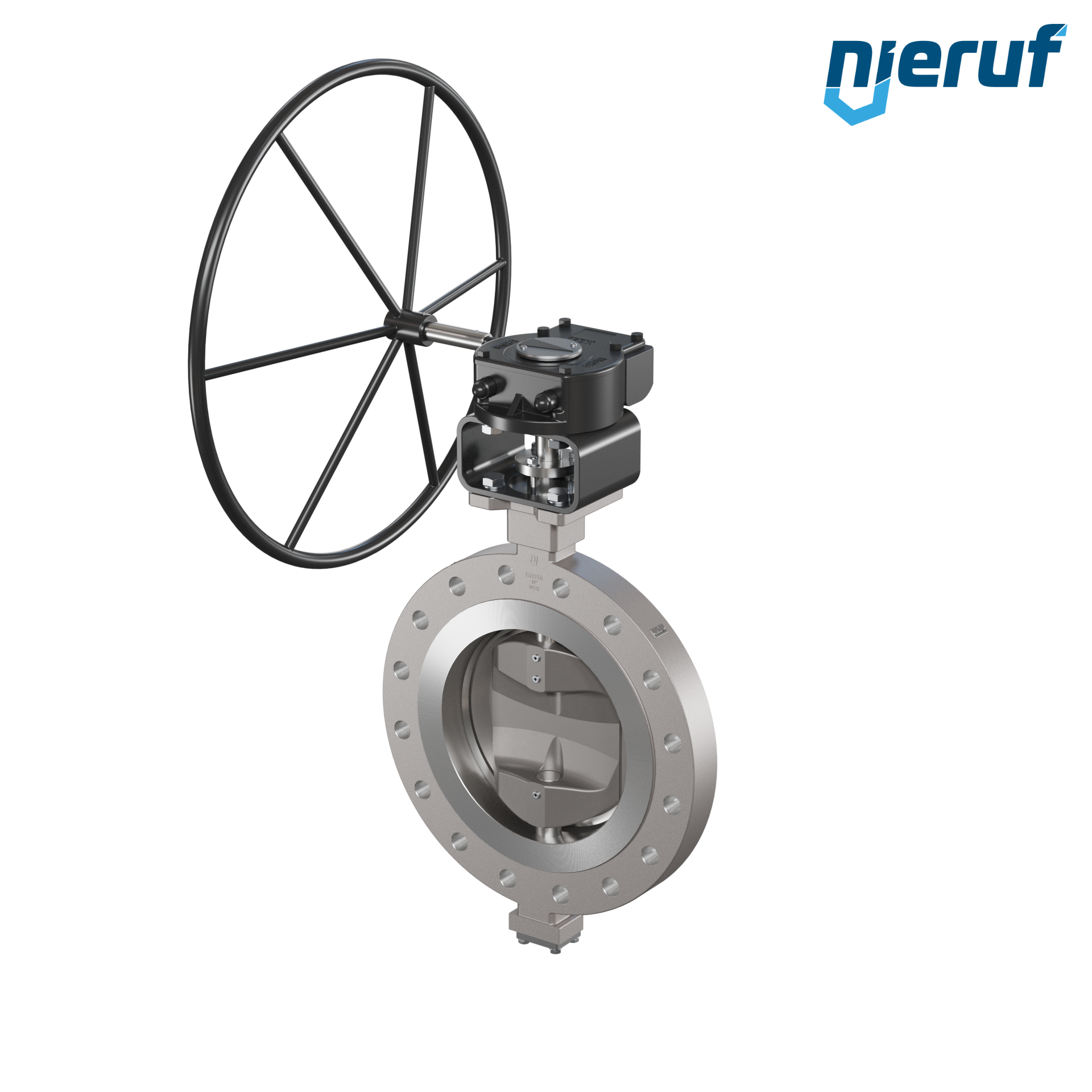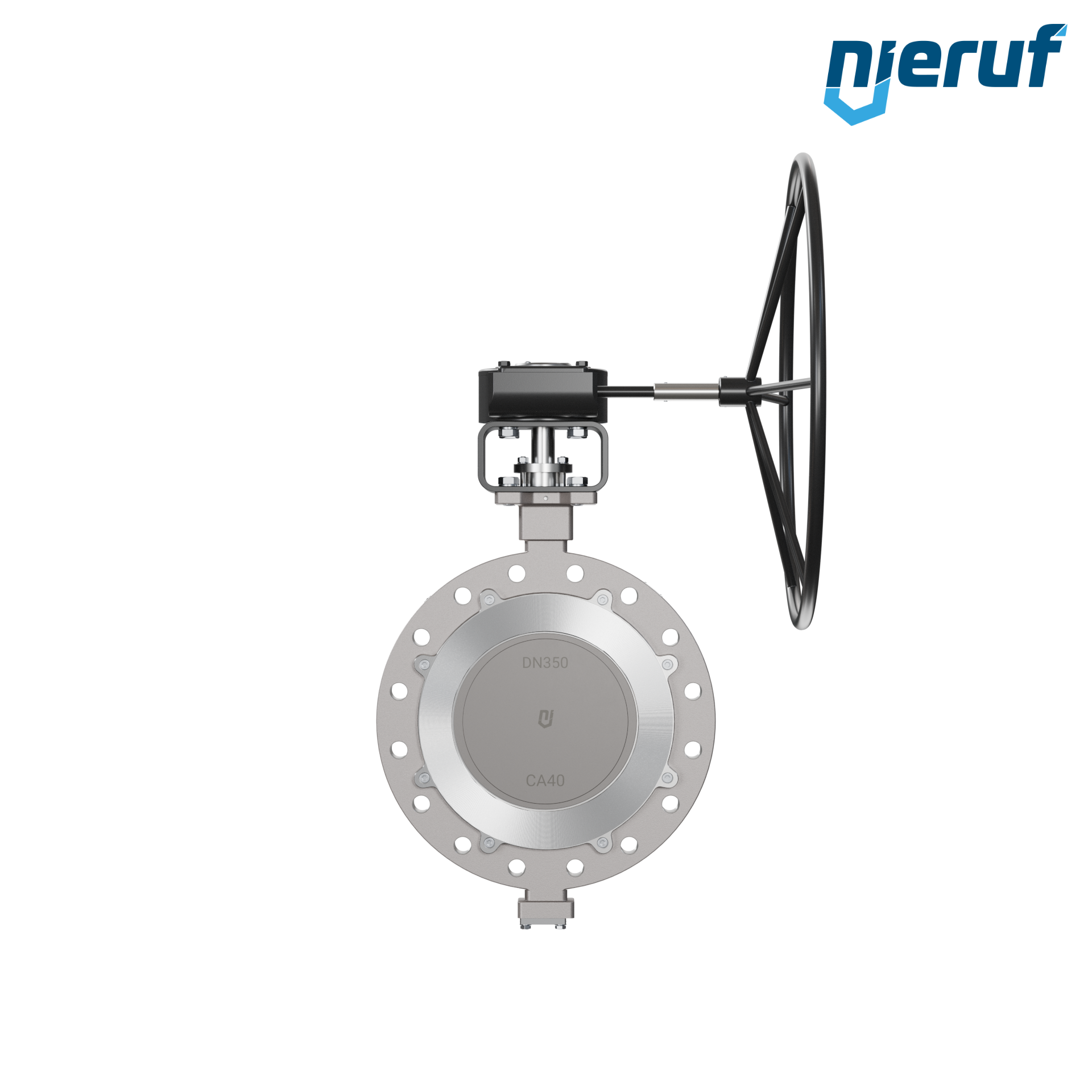 Dreifachexzentrische Absperrklappe Gewindeaugen AK14 DN 350 ANSI150 mit Gehäuse aus Edelstahl max. 25 bar Getriebe