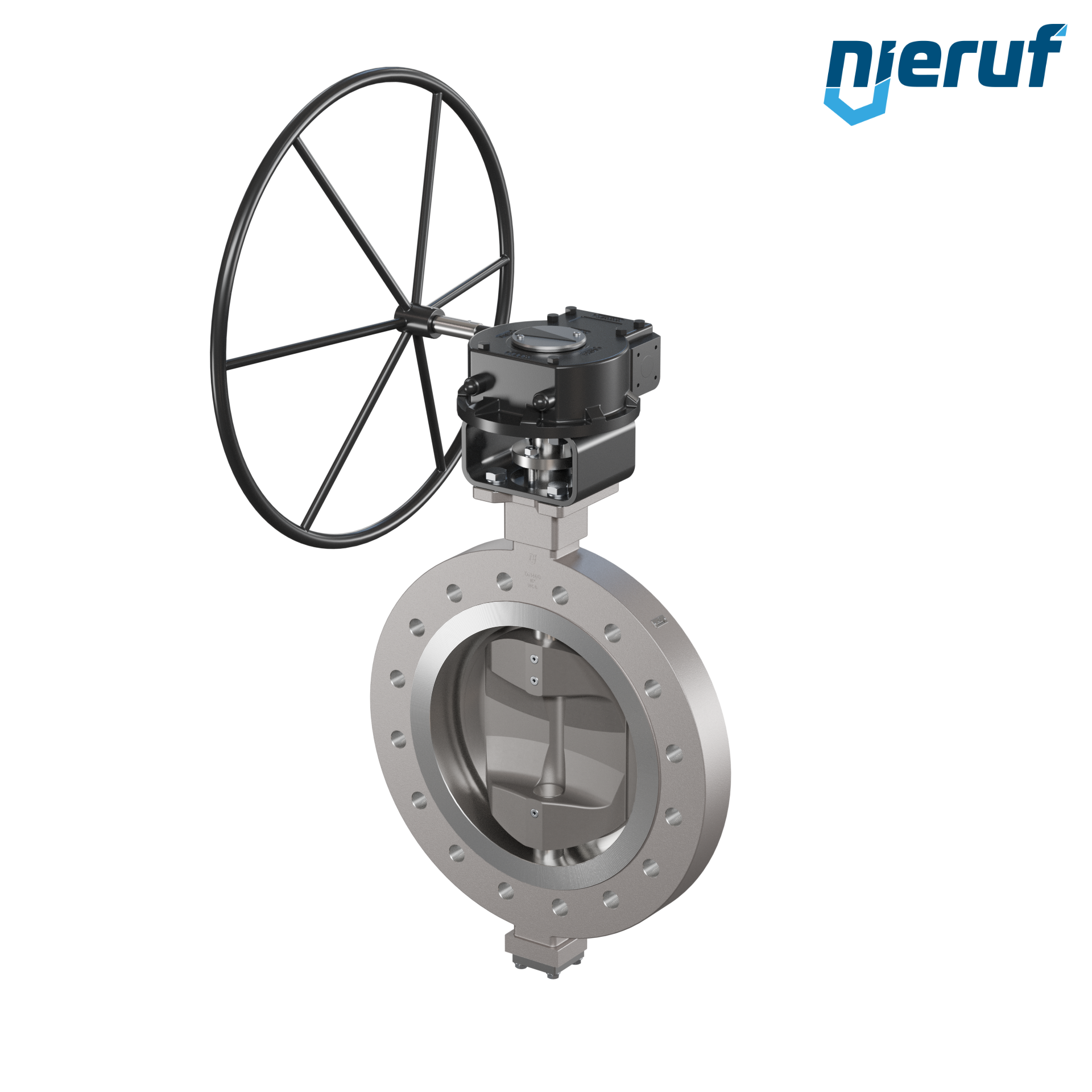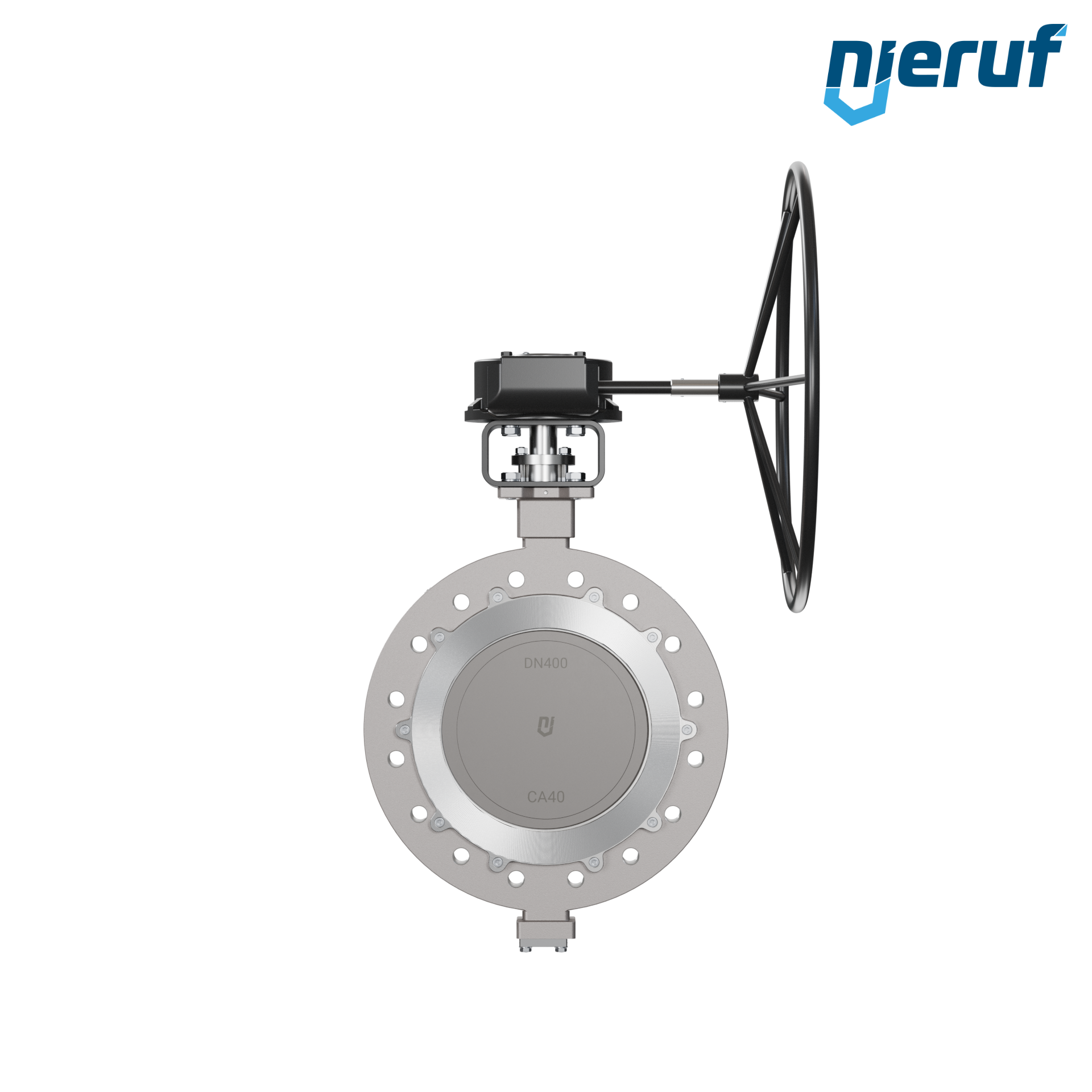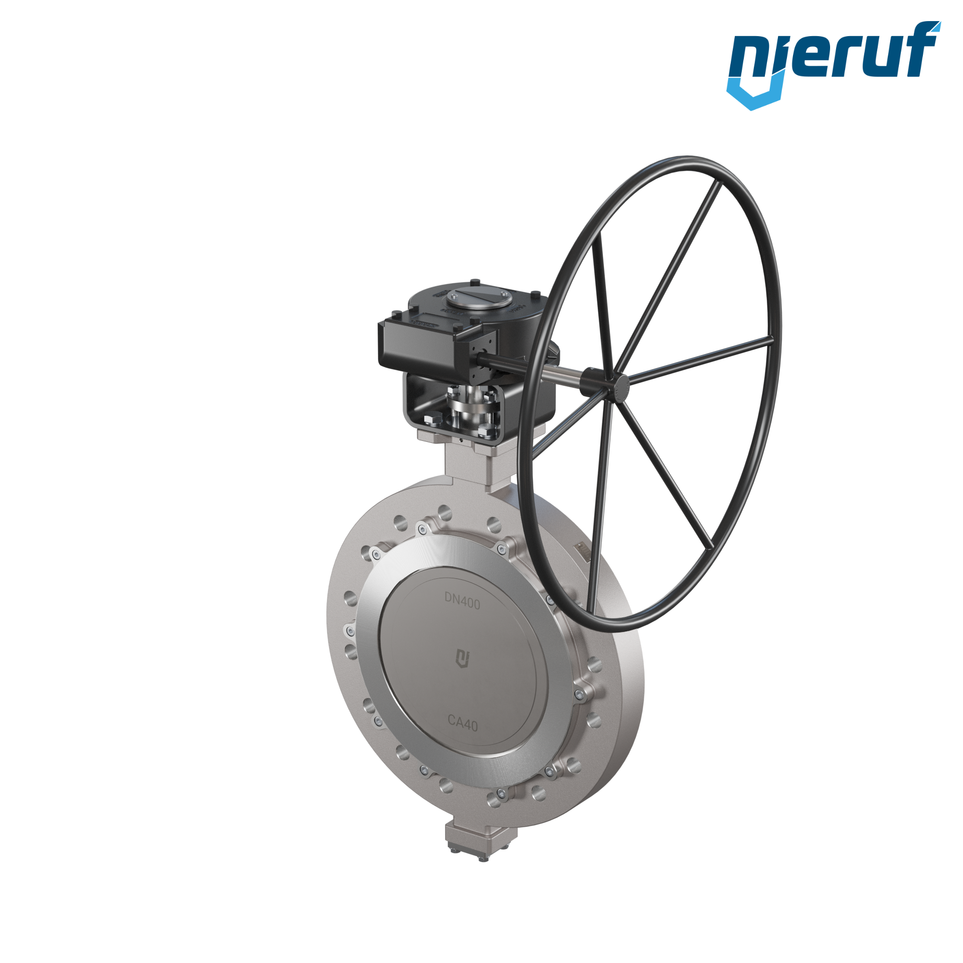 Dreifachexzentrische Absperrklappe Gewindeaugen AK14 DN 400 PN25 mit Gehäuse aus Edelstahl max. 25 bar Getriebe