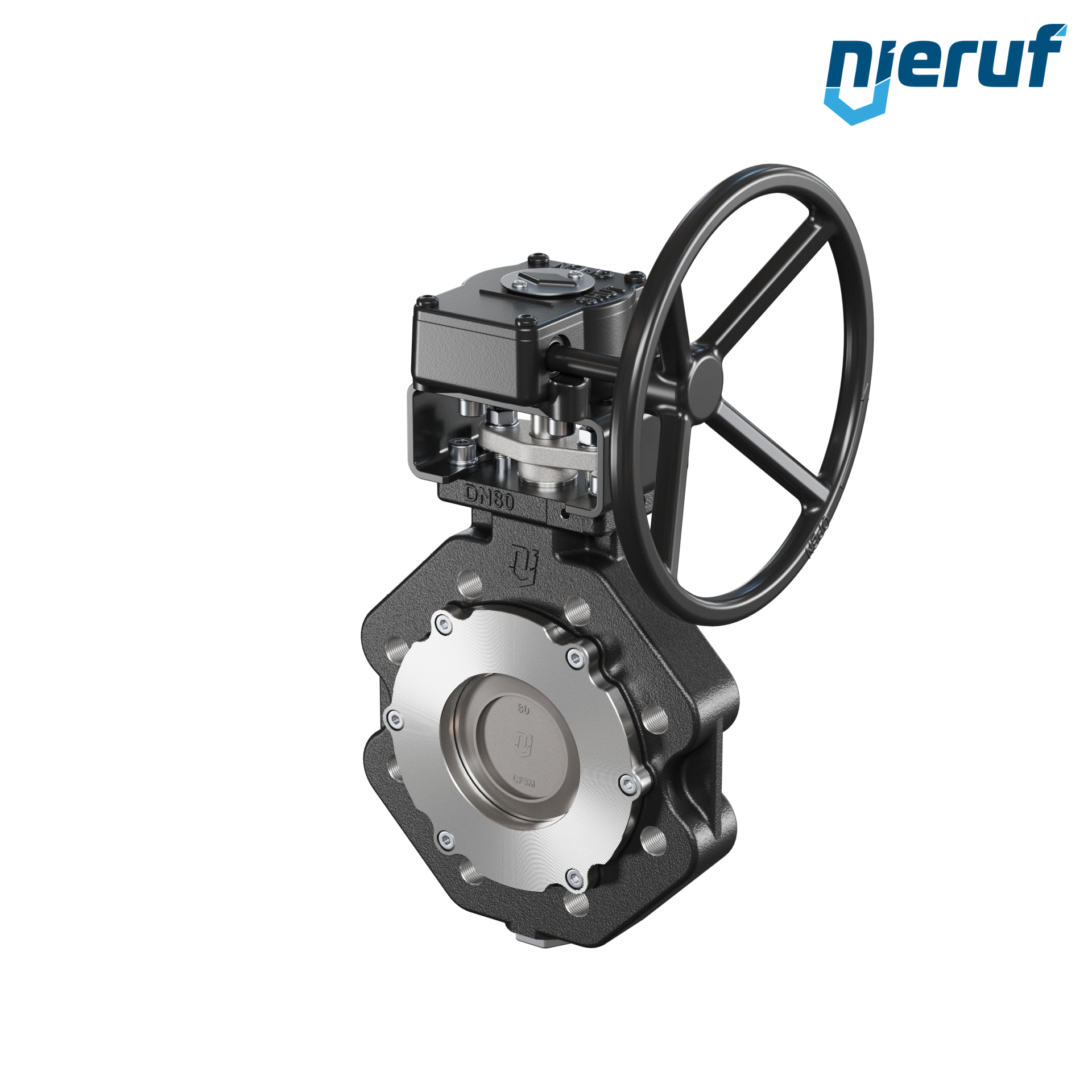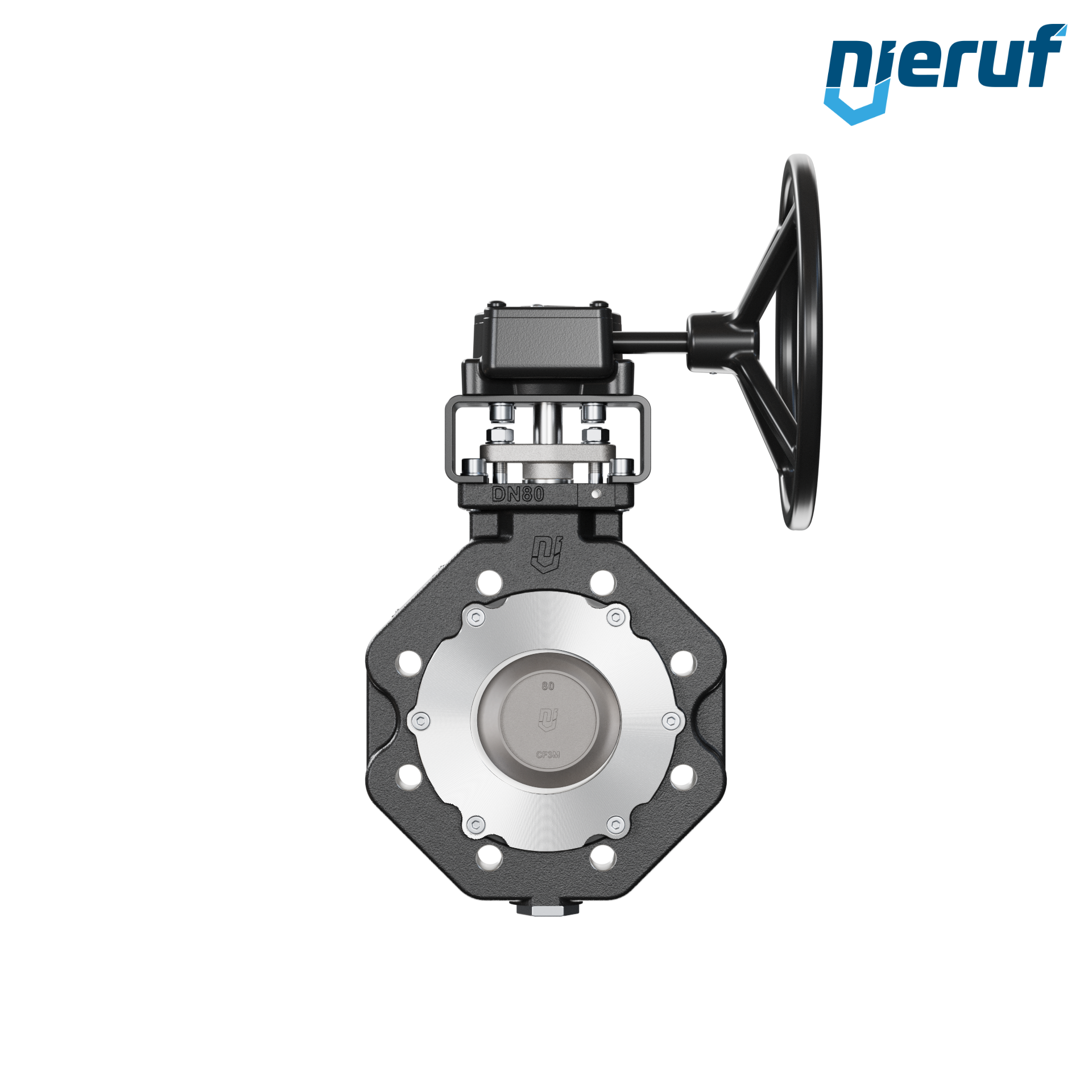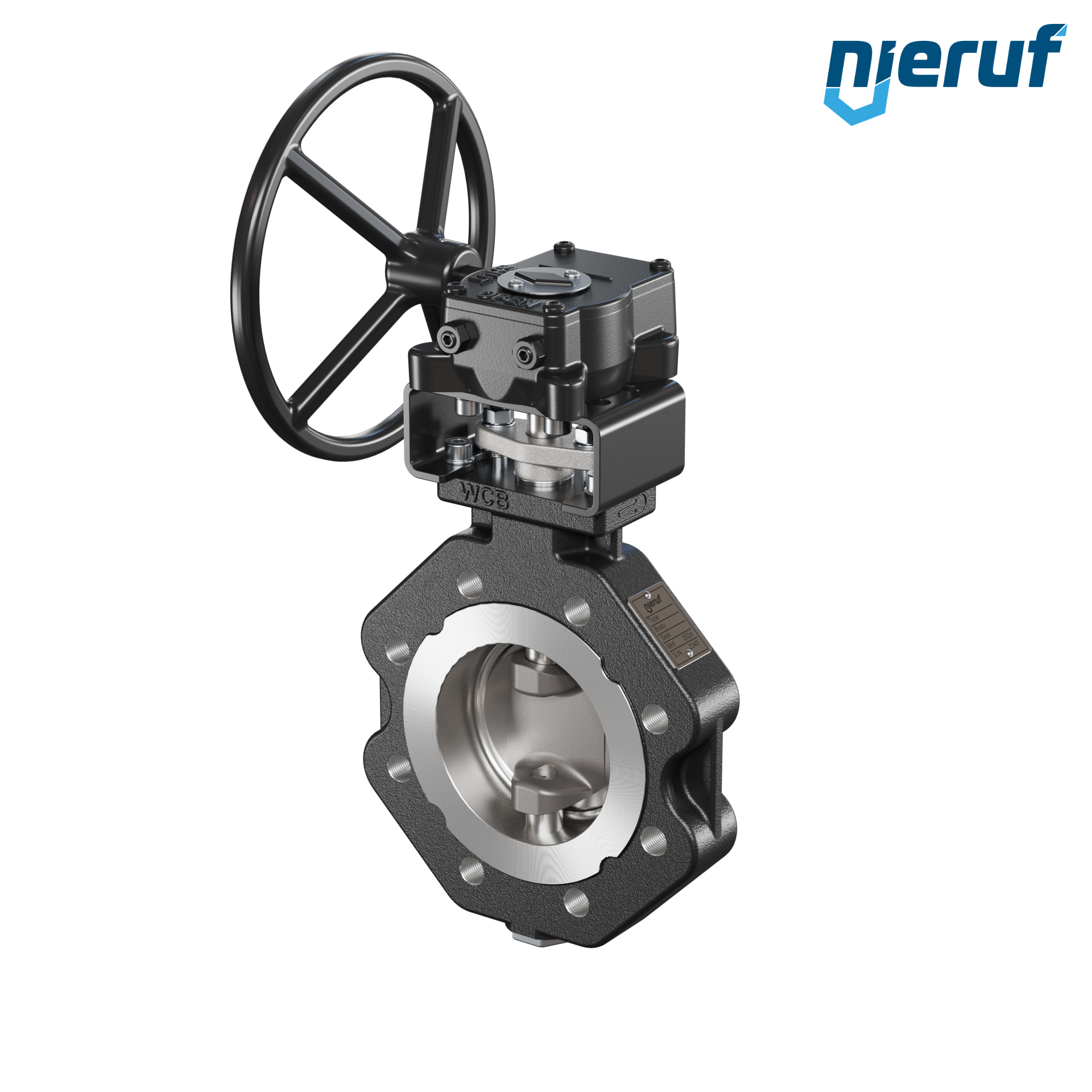 Dreifachexzentrische Absperrklappe Gewindeaugen AK14 DN 80 PN10-PN16-PN25-PN40 & ANSI150-ANSI300 mit Gehäuse aus Stahlguss max. 50 bar Getriebe