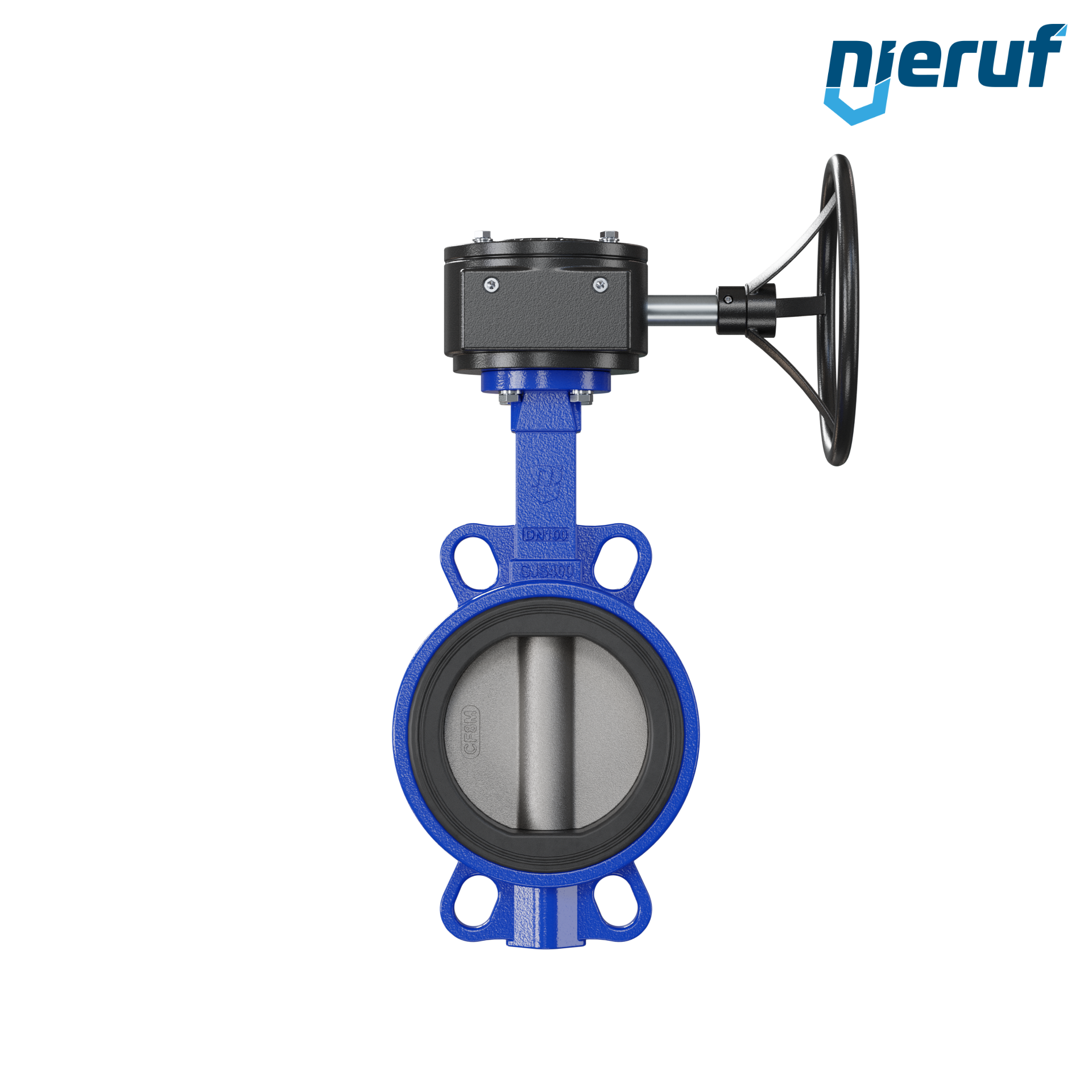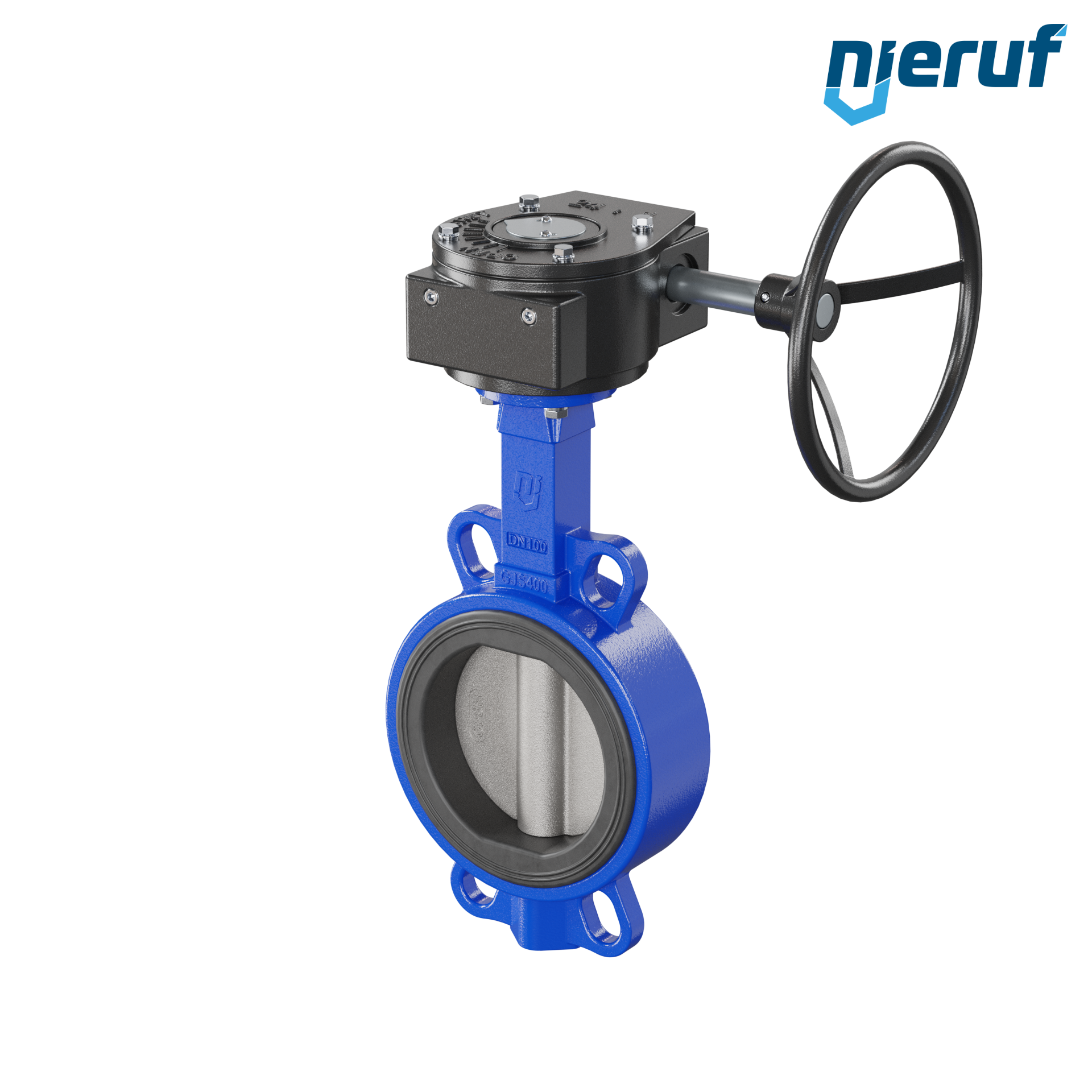 Absperrklappe DN 100 PN16 mit Zentrieraugen Gehäuse aus Gusseisen EN GJL-250 (GG25) Klappenscheibe Edelstahl 1.4408 mit Getriebe EPDM