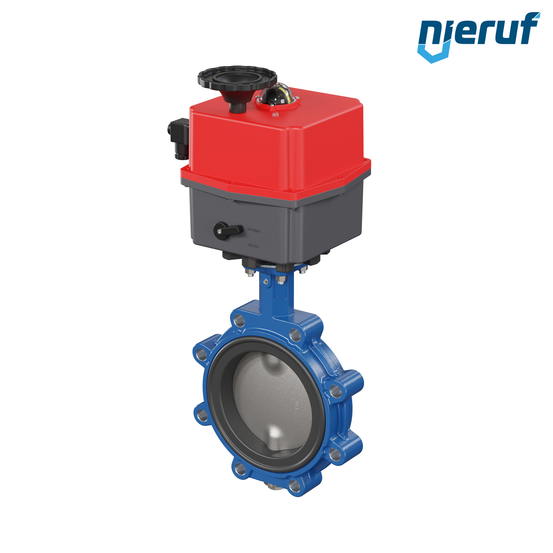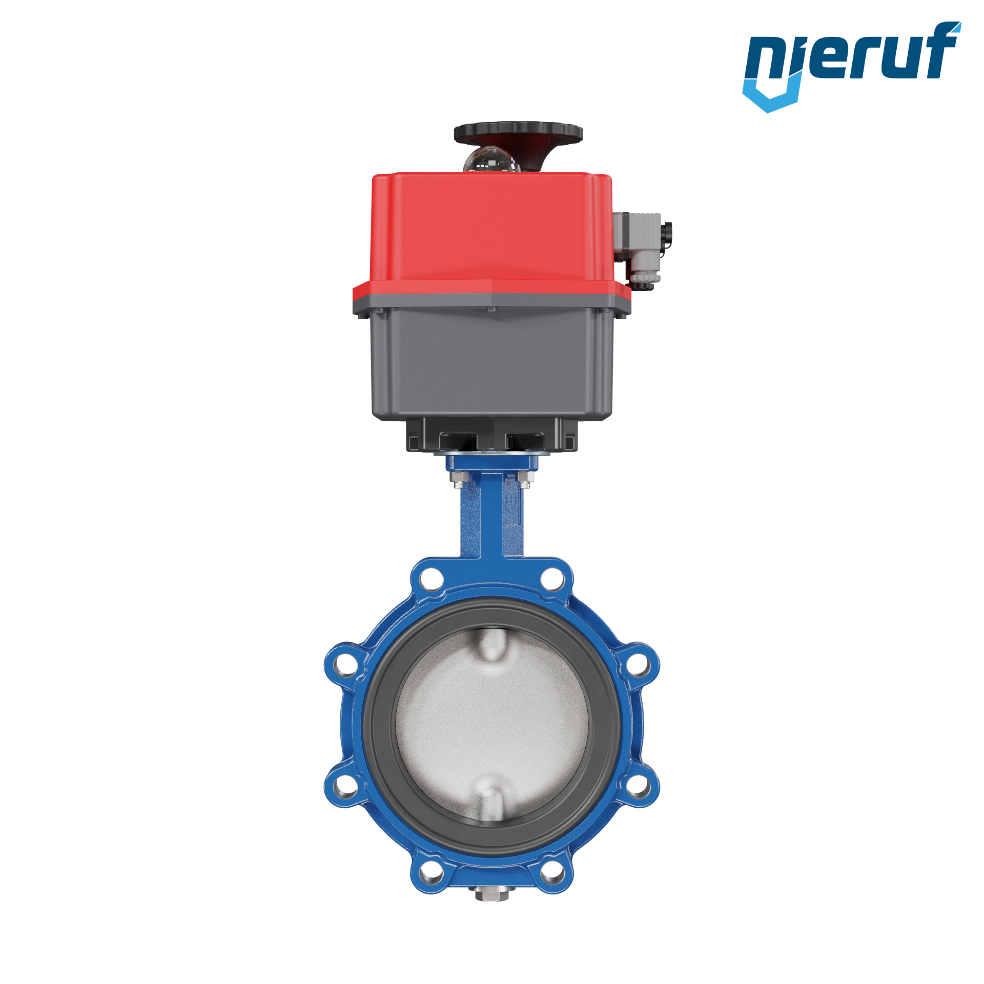 Absperrklappe DN 150 PN10-PN16 mit Gewindeaugen Gehäuse aus Sphäroguss mit elektronischer Schwenkantrieb 24-240V AC/DC Manschette aus NBR-70-schwarz DVGW Gas