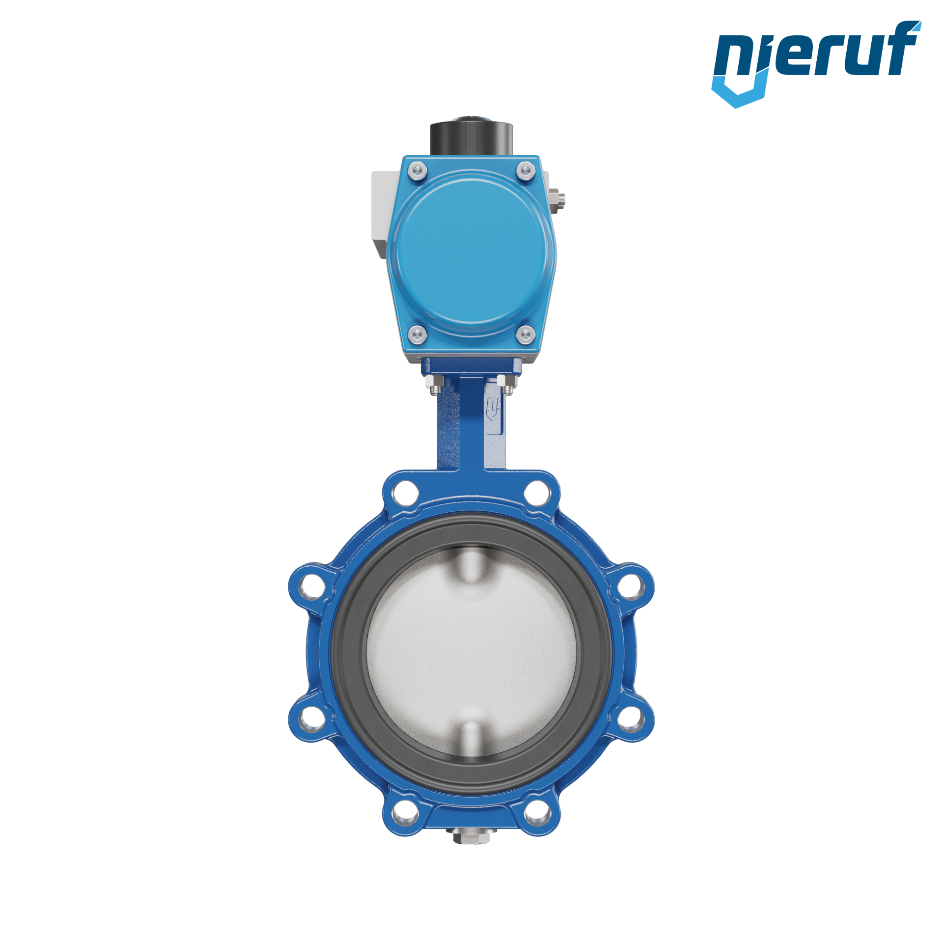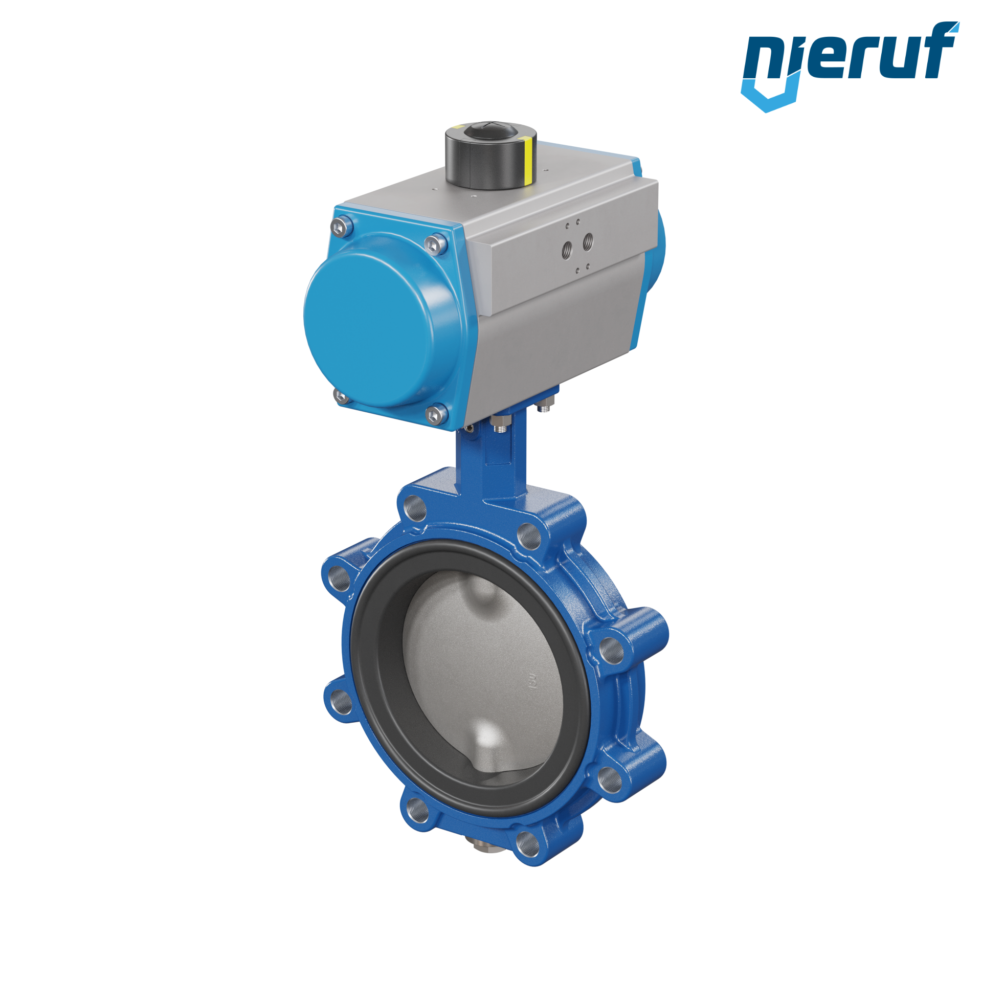 Absperrklappe DN 150 mit Gewindeaugen Gehäuse aus Sphäroguss mit pneumatischer Schwenkantrieb doppeltwirkend Manschette aus NBR-70-schwarz DVGW Gas