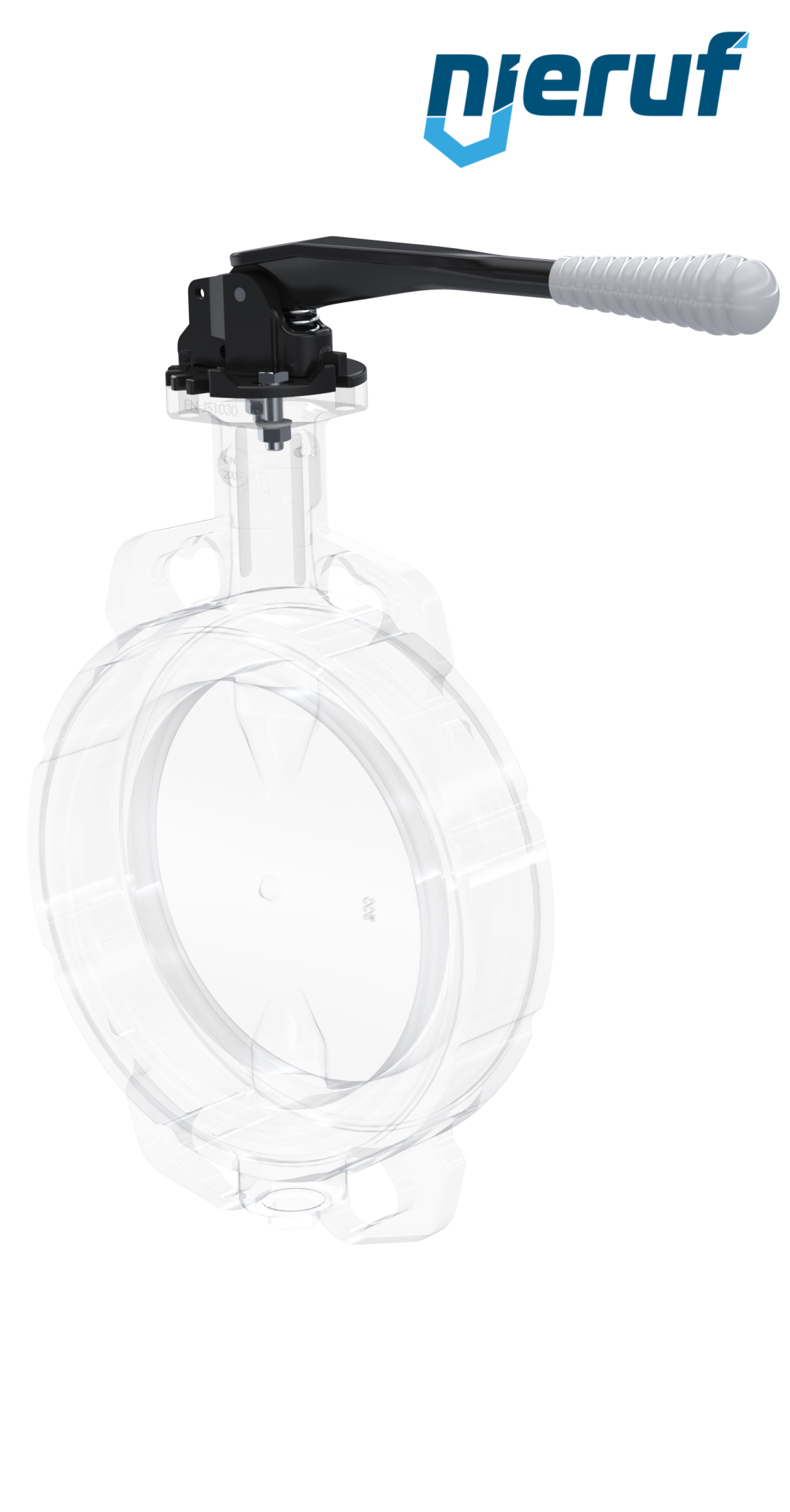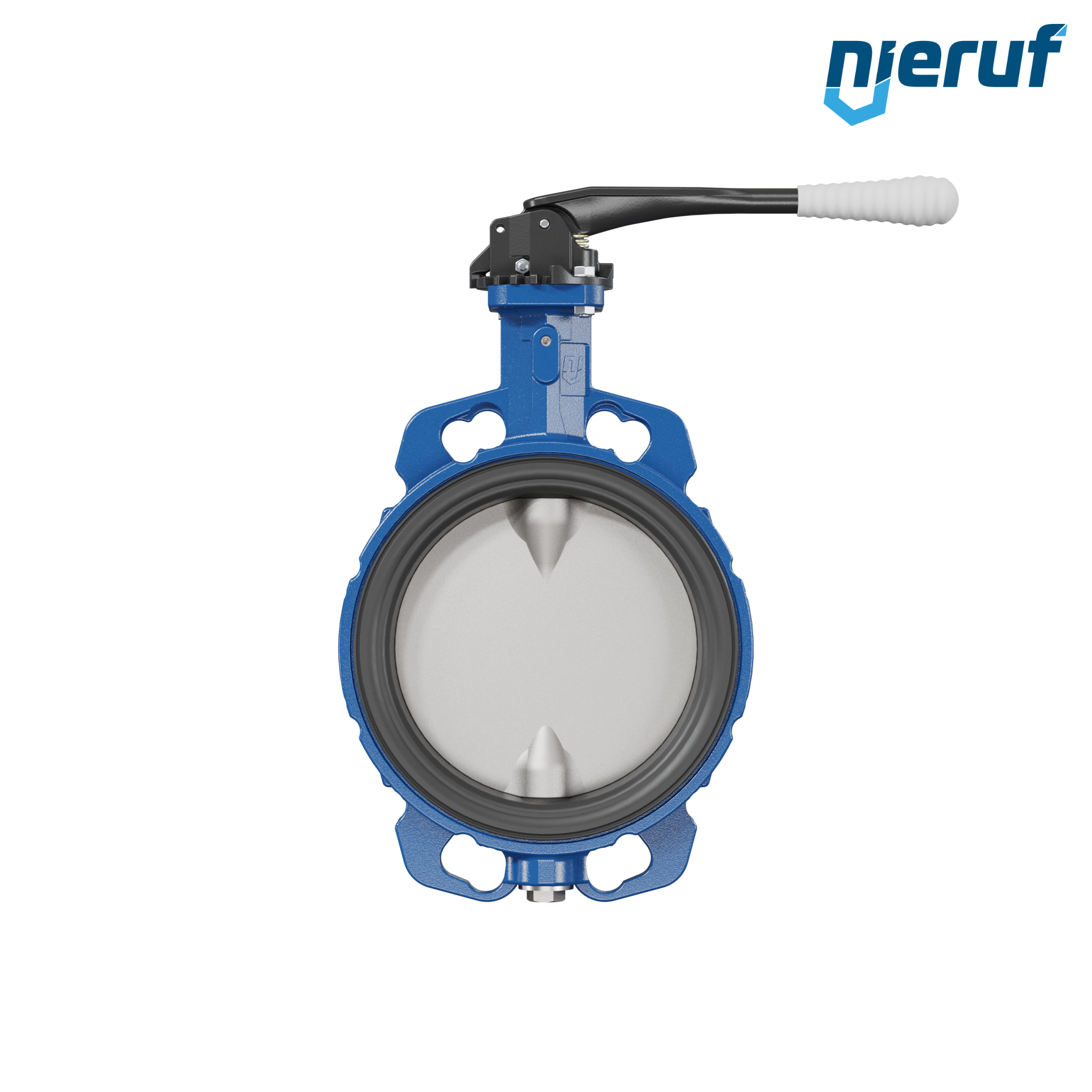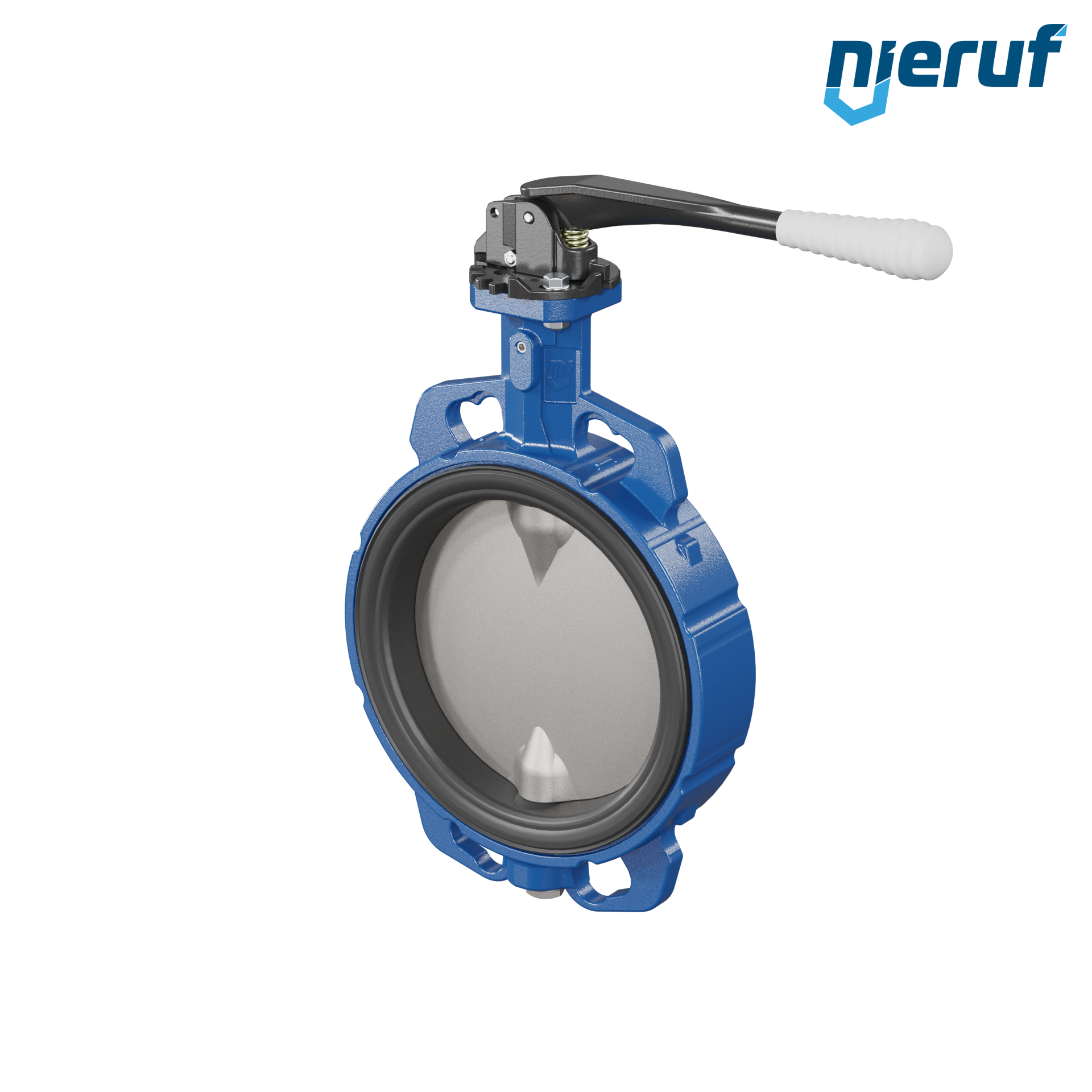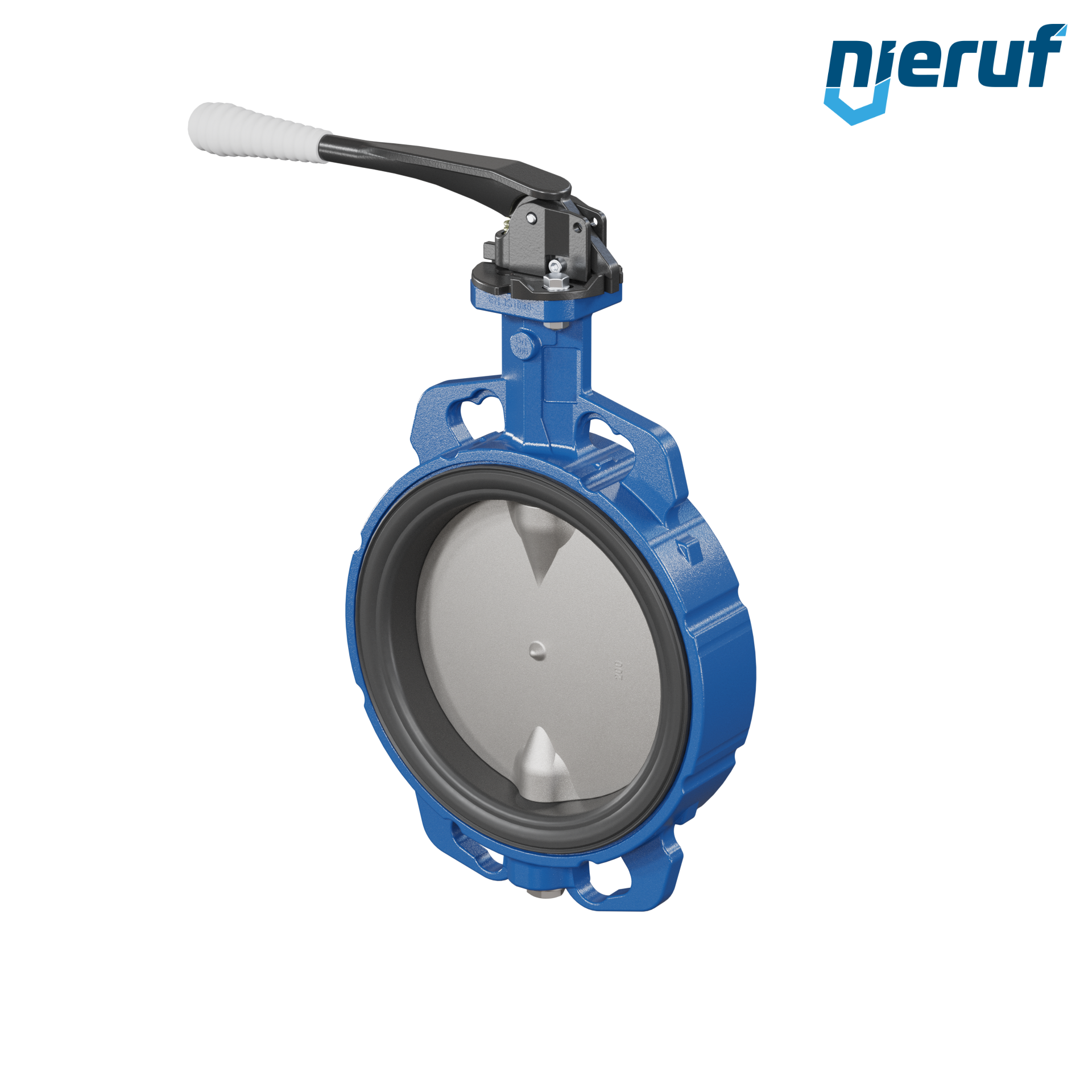 Absperrklappe DN 200 PN6-PN10-PN16 & ANSI150 mit Zentrieraugen aus Sphäroguss mit Handhebel mit grauer Hülse EPDM DVGW Trinkwasser, WRAS, ACS, W270
