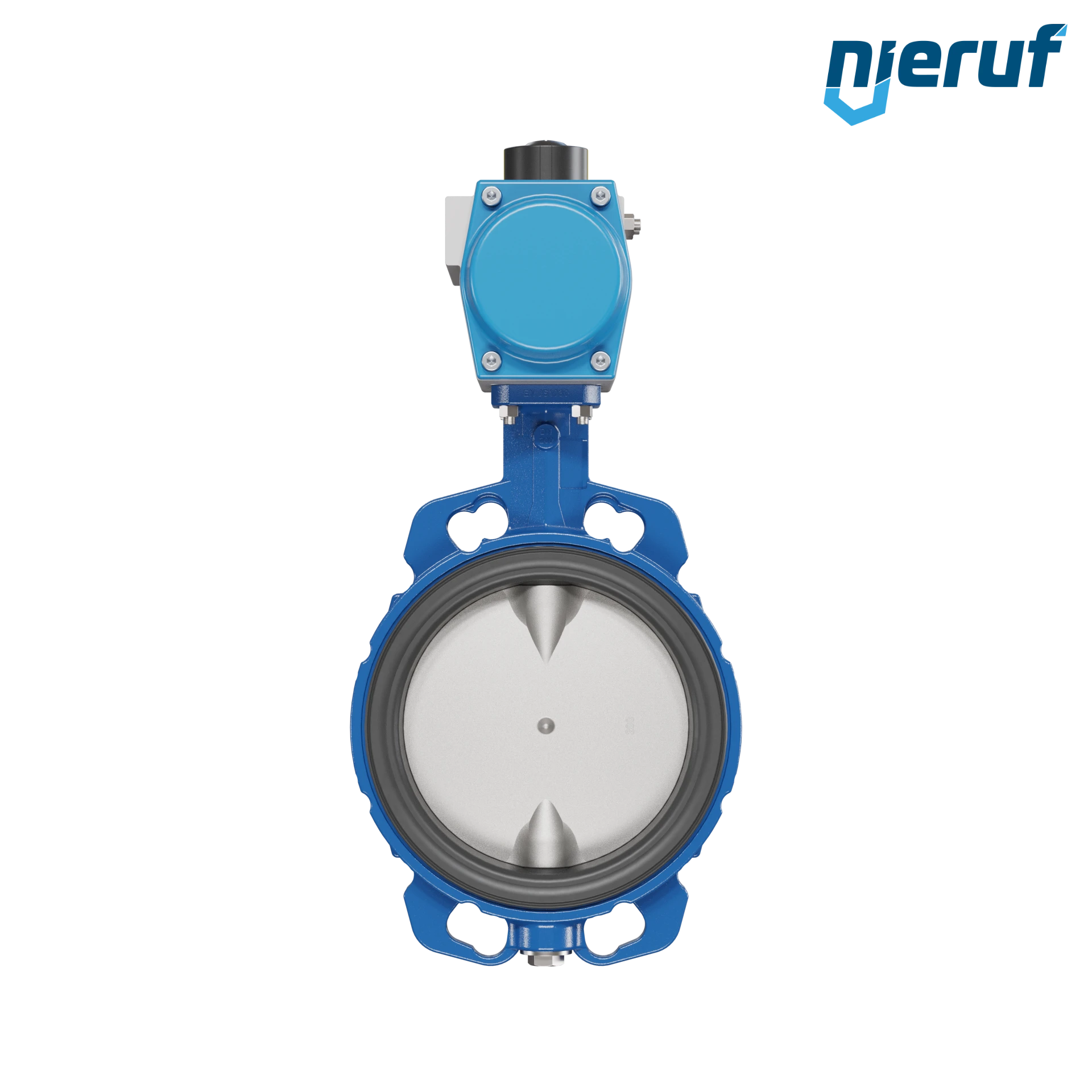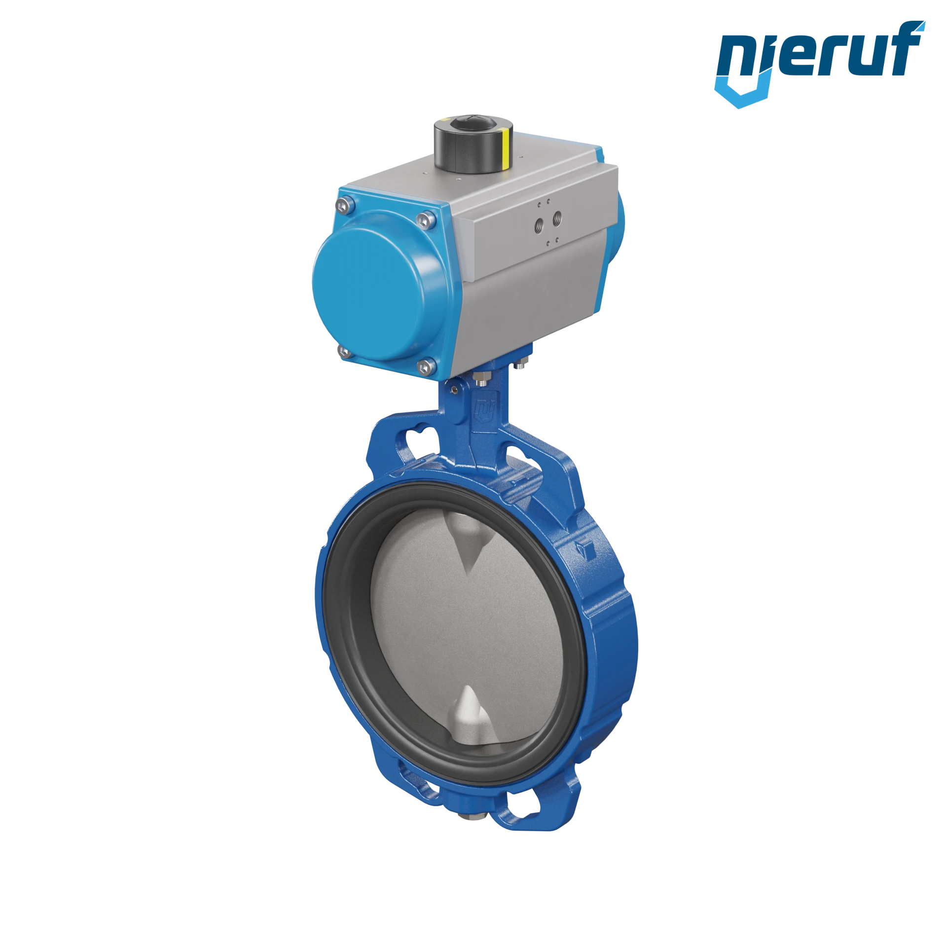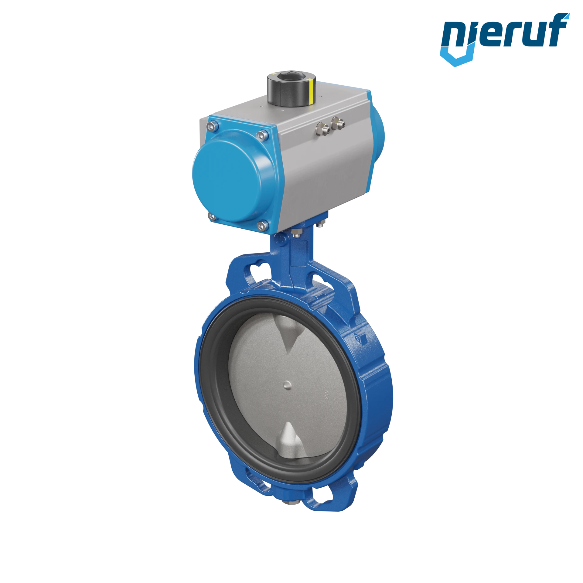Absperrklappe DN 200 mit Zentrieraugen Gehäuse aus Sphäroguss mit pneumatischer Schwenkantrieb doppeltwirkend Manschette aus NBR-70-schwarz DVGW Gas