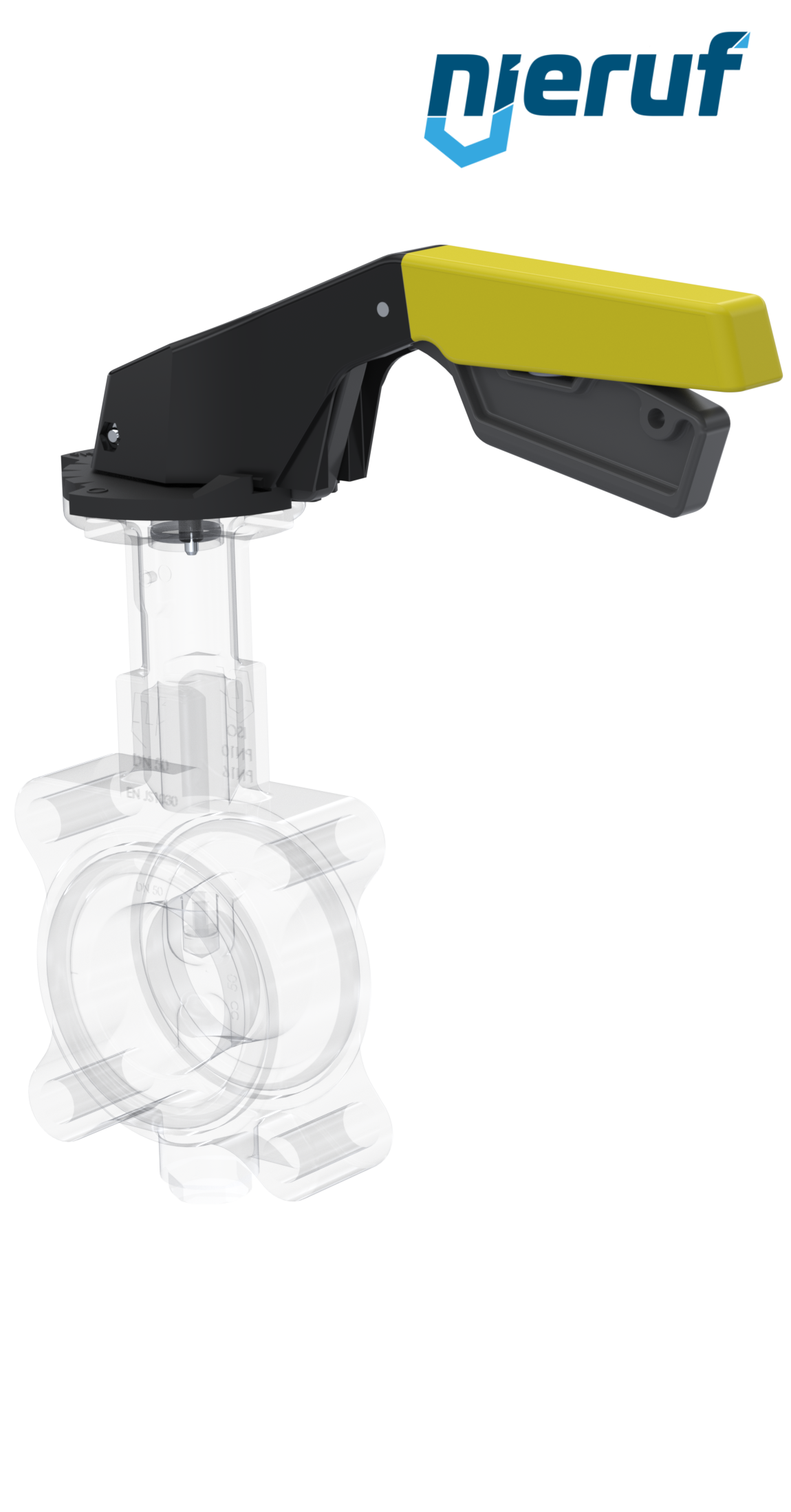 Absperrklappe DN 40 PN10-PN16 mit Gewindeaugen aus Sphäroguss mit Handhebel gelb NBR-70-schwarz DVGW Gas