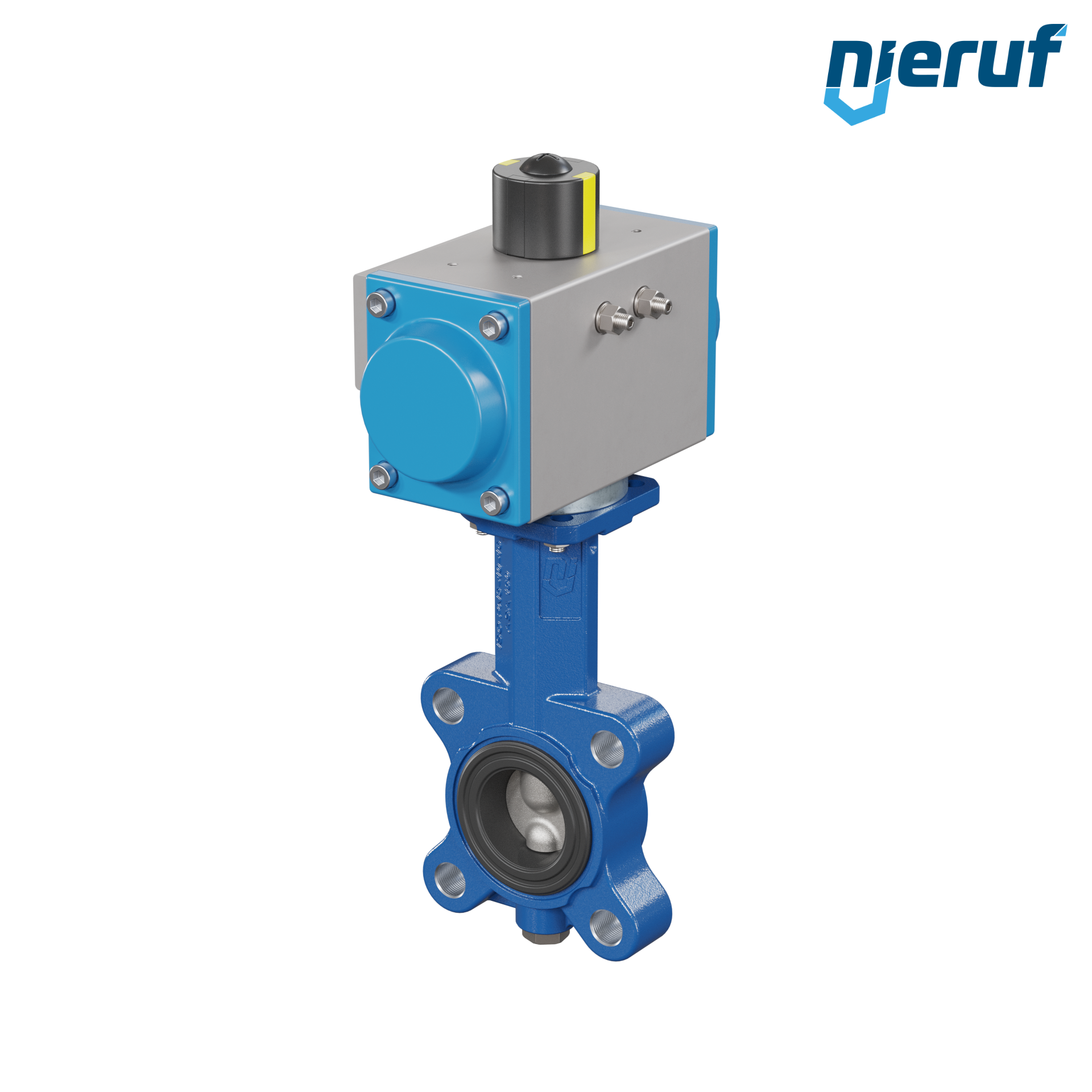 Absperrklappe DN 40 mit Gewindeaugen Gehäuse aus Sphäroguss mit pneumatischer Schwenkantrieb einfachwirkend federschließend Manschette aus EPDM DVGW Trinkwasser, WRAS, ACS, W270