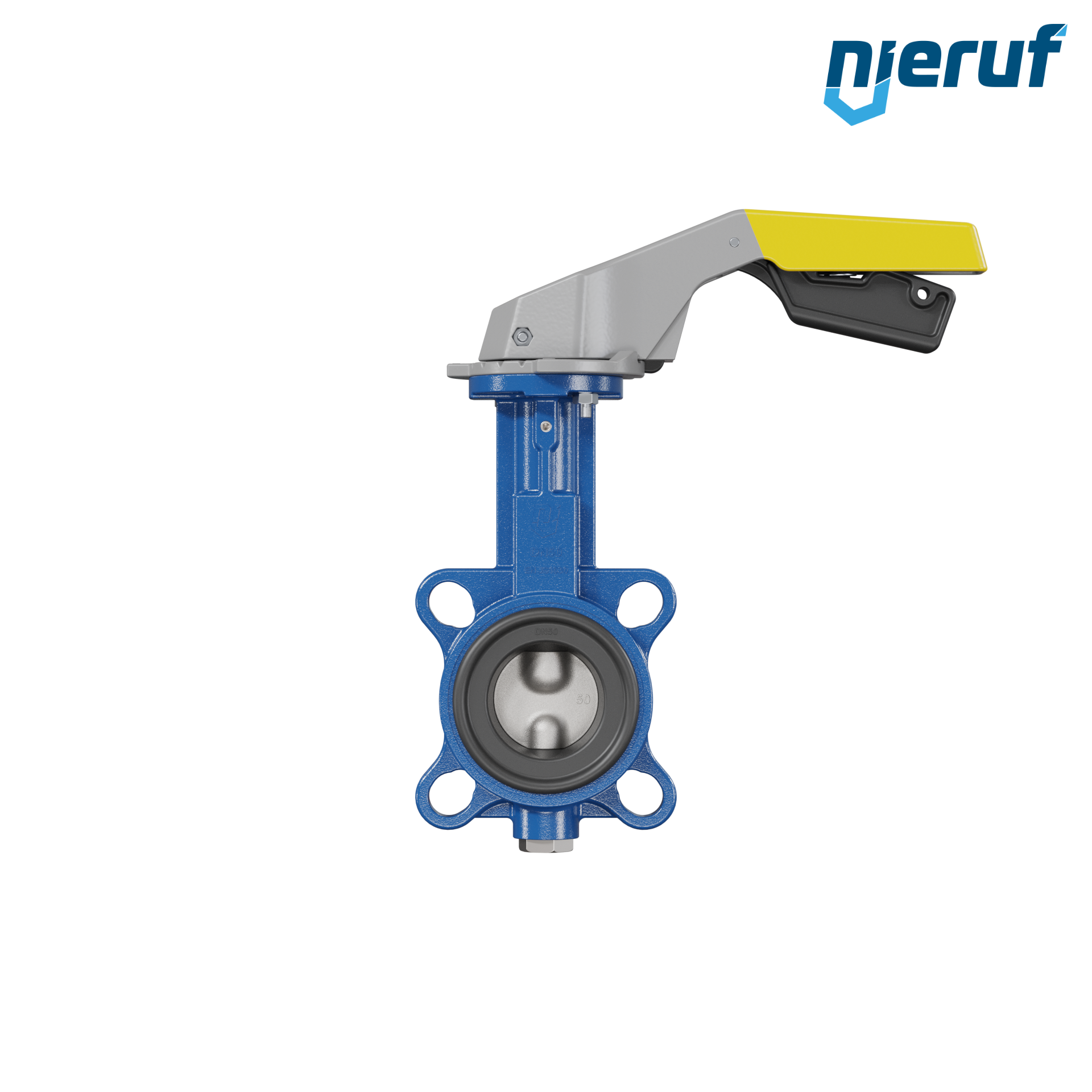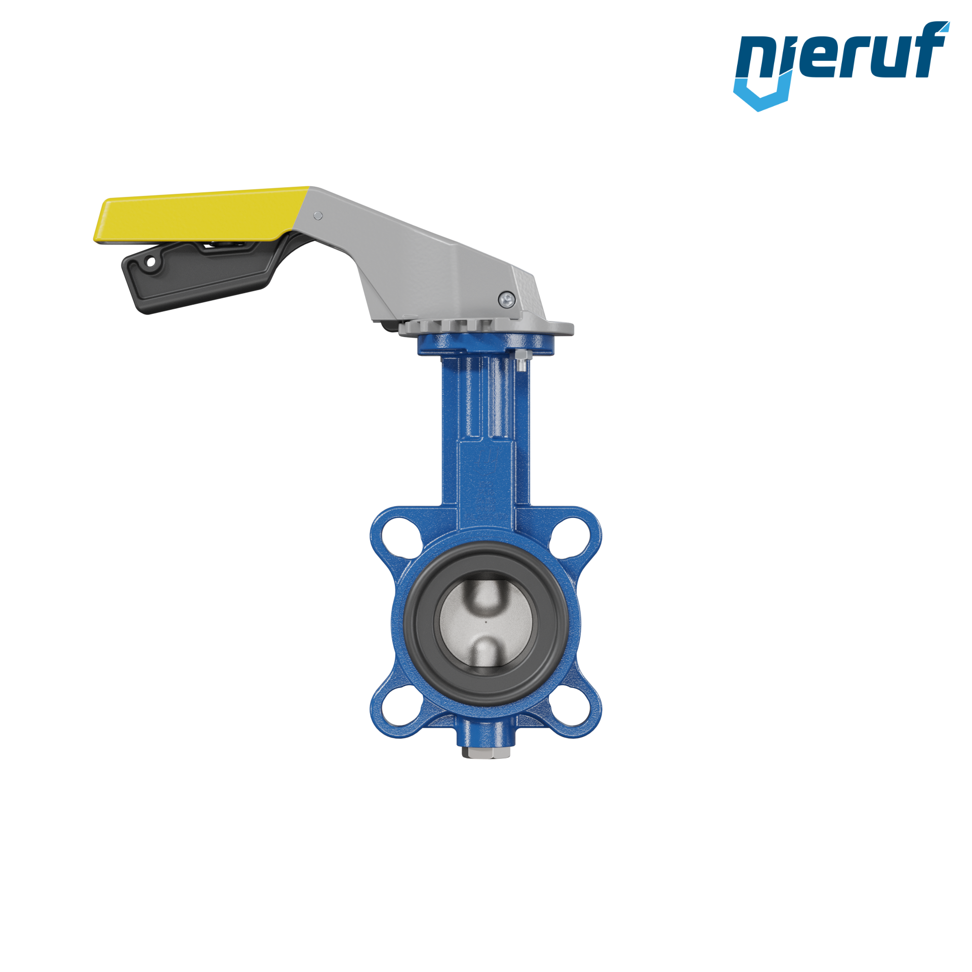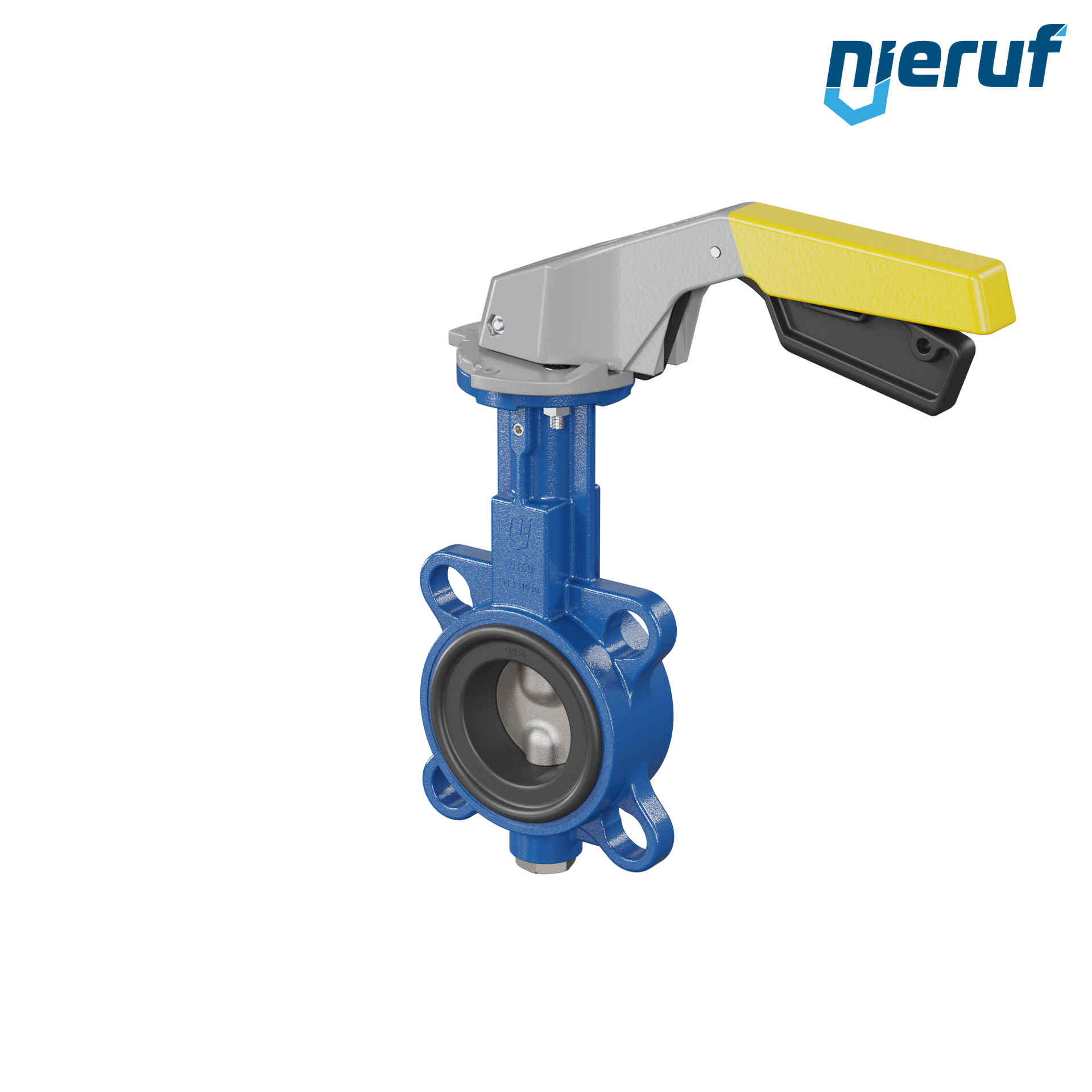 Absperrklappe DN 50 PN6-PN10-PN16 & ANSI150 mit Zentrieraugen aus Sphäroguss mit Handhebel gelb NBR-70-schwarz DVGW Gas