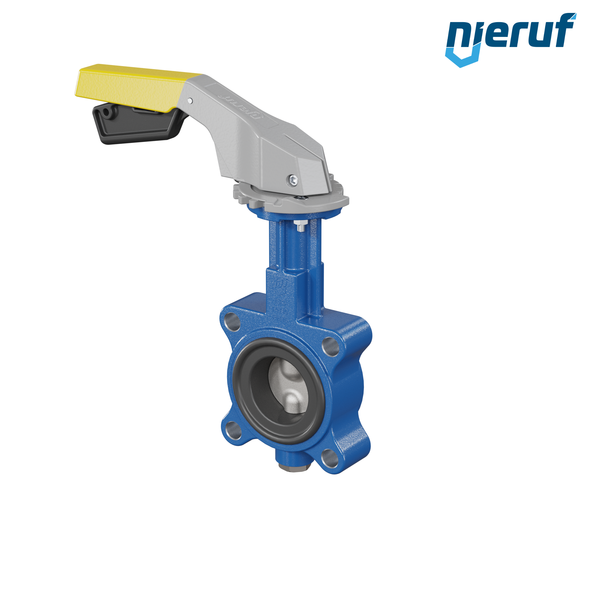 Absperrklappe DN 50 PN10-PN16 mit Gewindeaugen aus Sphäroguss mit Handhebel gelb NBR-70-schwarz DVGW Gas
