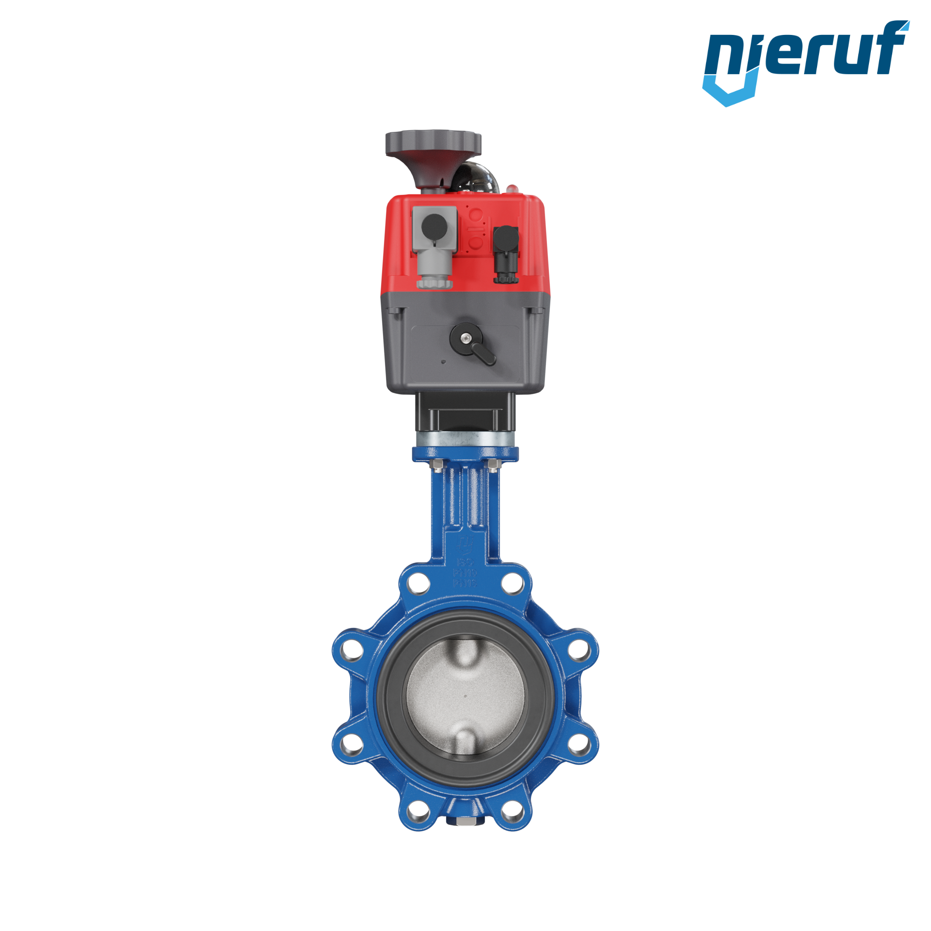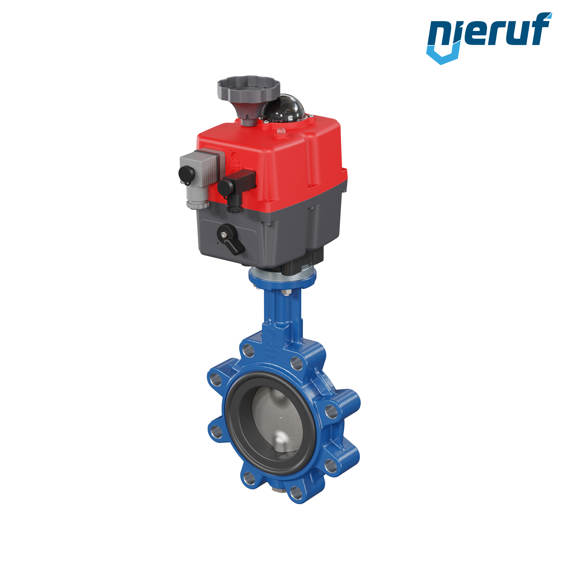 Absperrklappe DN 80 PN10-PN16 mit Gewindeaugen Gehäuse aus Sphäroguss elektrischer Drehantrieb Manschette aus EPDM DVGW Trinkwasser, WRAS, ACS, W270