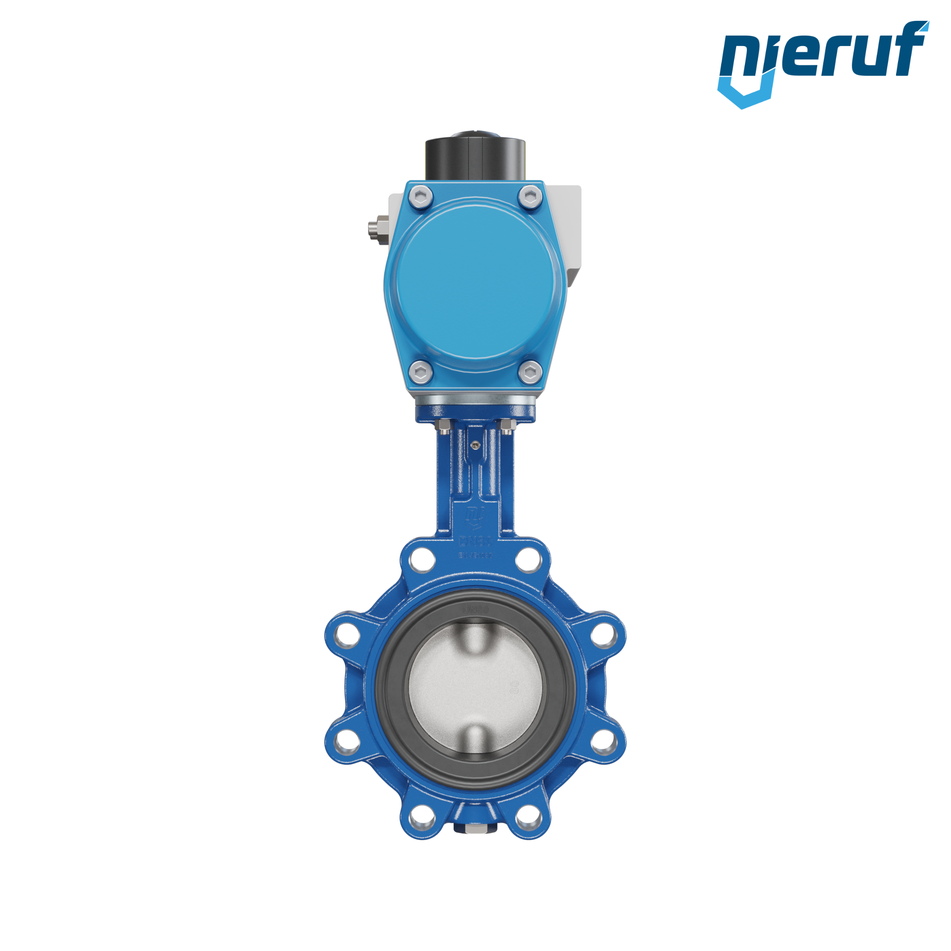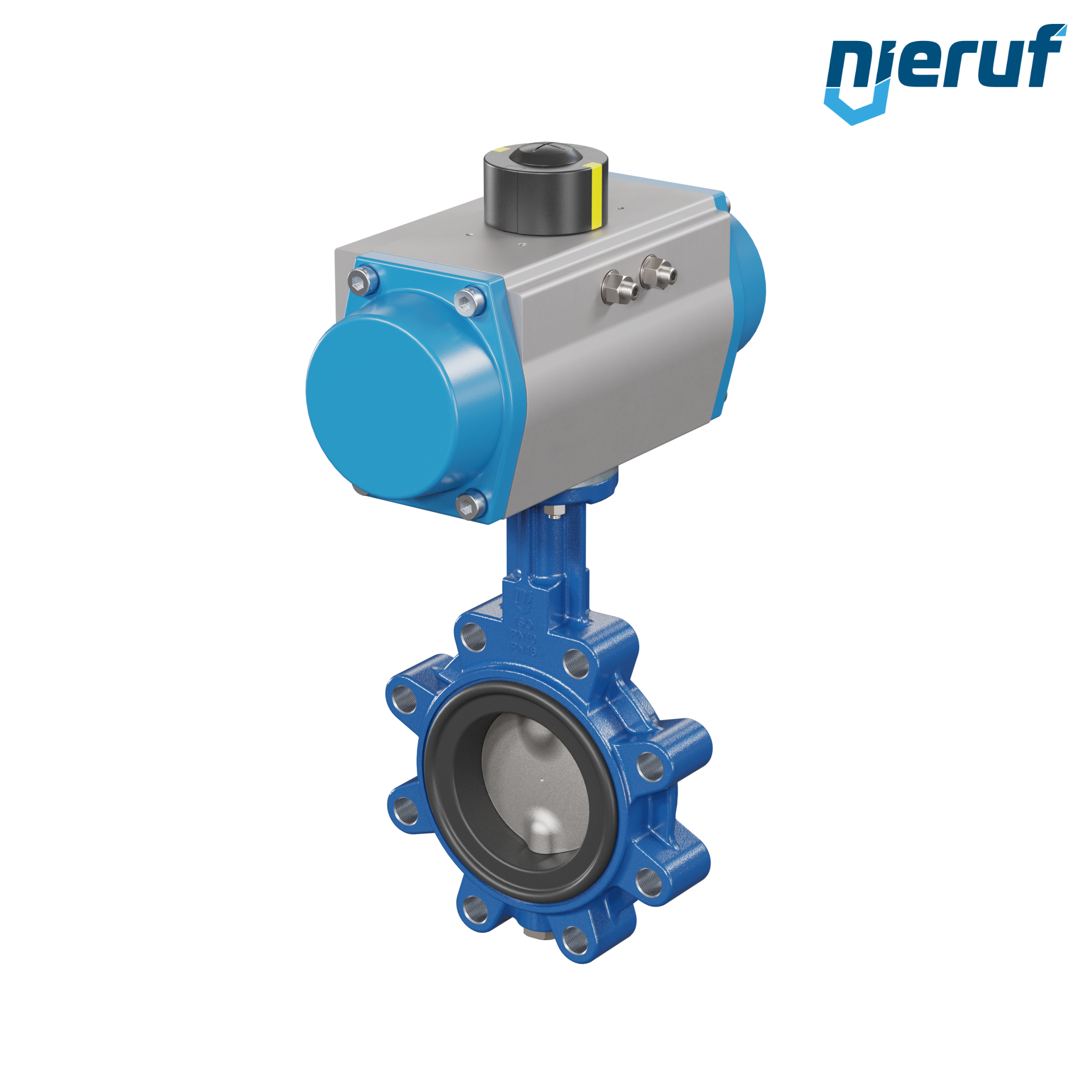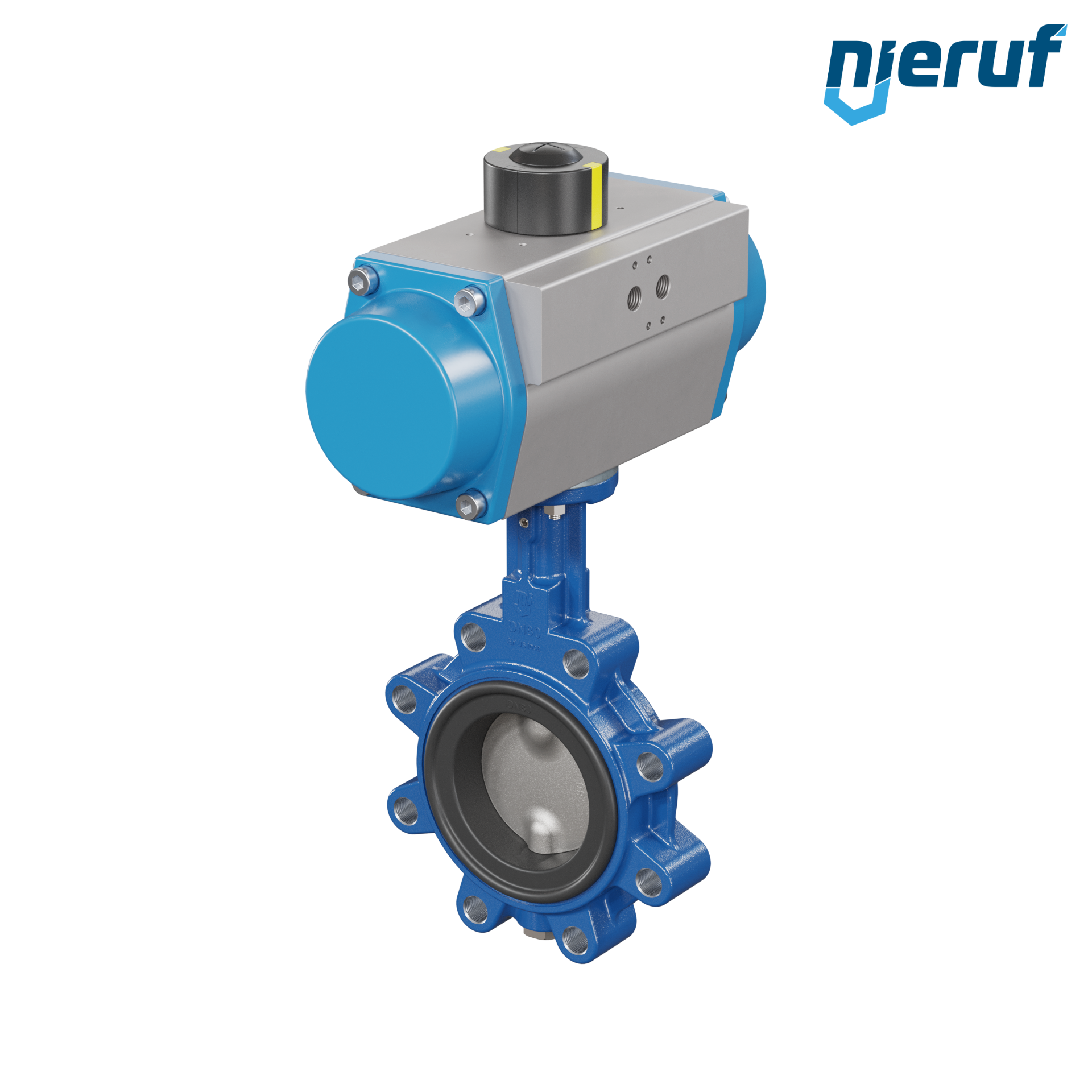 Absperrklappe DN 80 mit Gewindeaugen Gehäuse aus Sphäroguss mit pneumatischer Schwenkantrieb einfachwirkend federschließend Manschette aus EPDM DVGW Trinkwasser, WRAS, ACS, W270