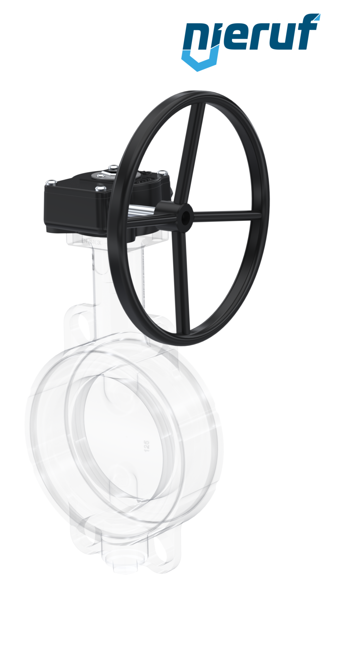 Absperrklappe DN 150 PN6-PN10-PN16 & ANSI150 mit Zentrieraugen aus Sphäroguss mit Schneckenradgetriebe FPM