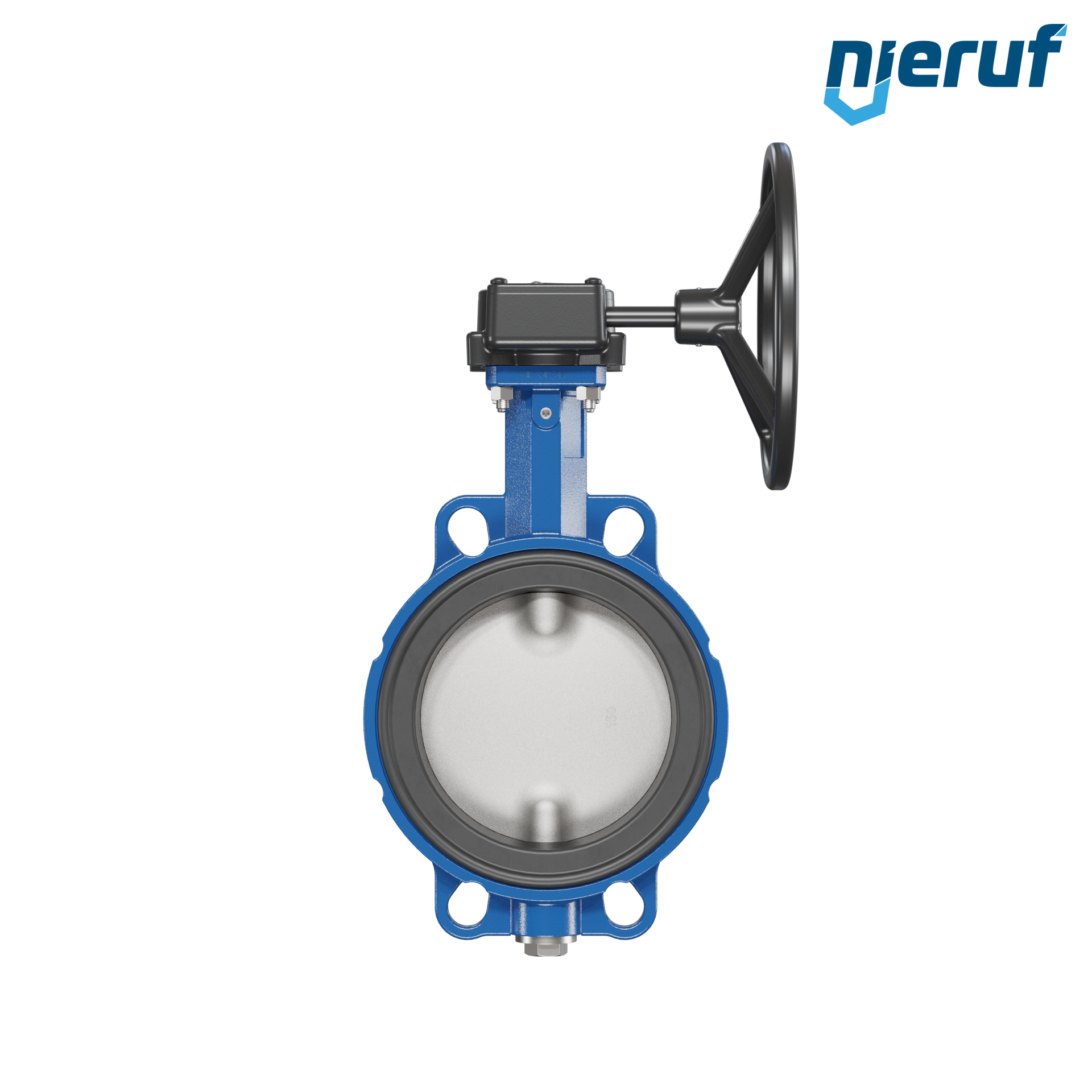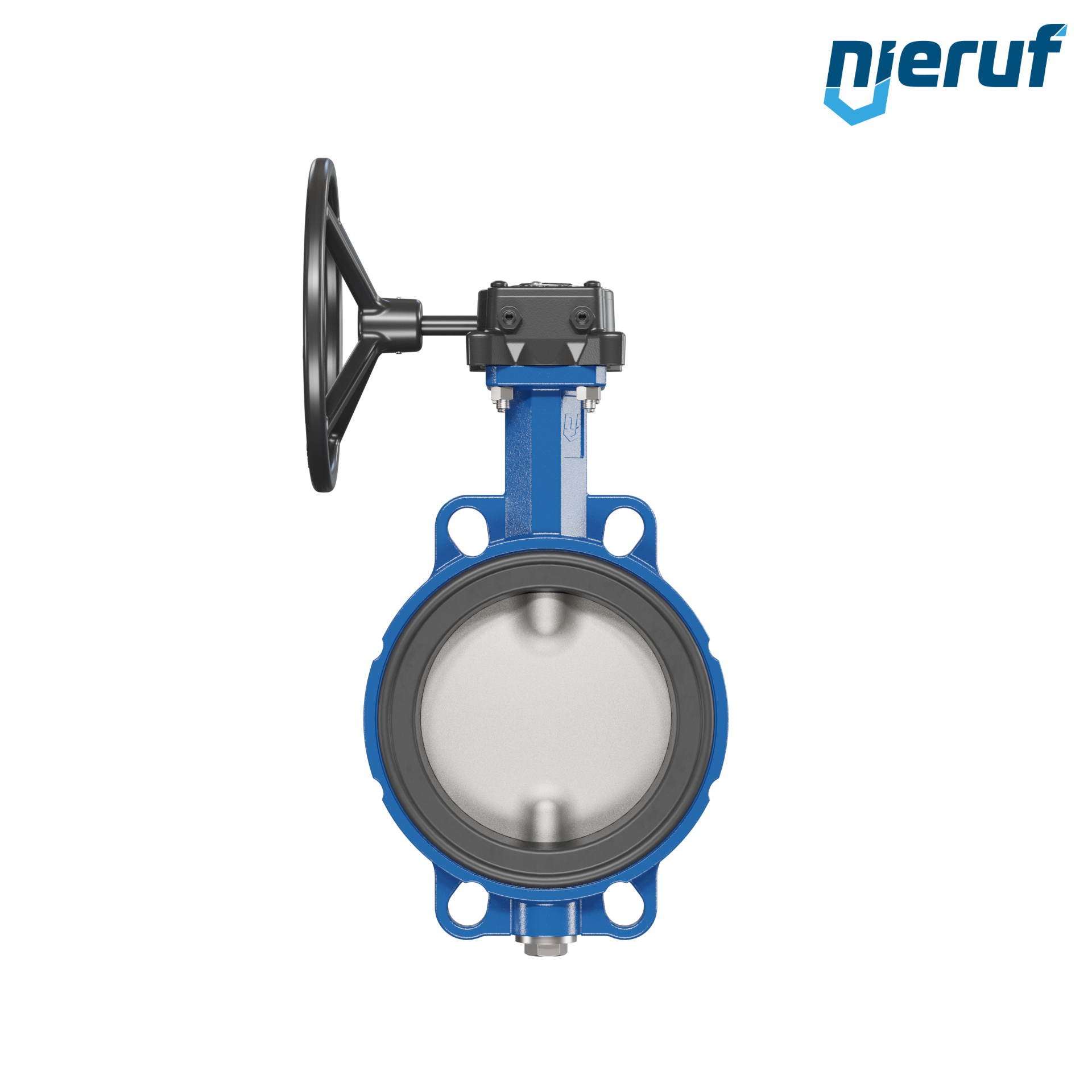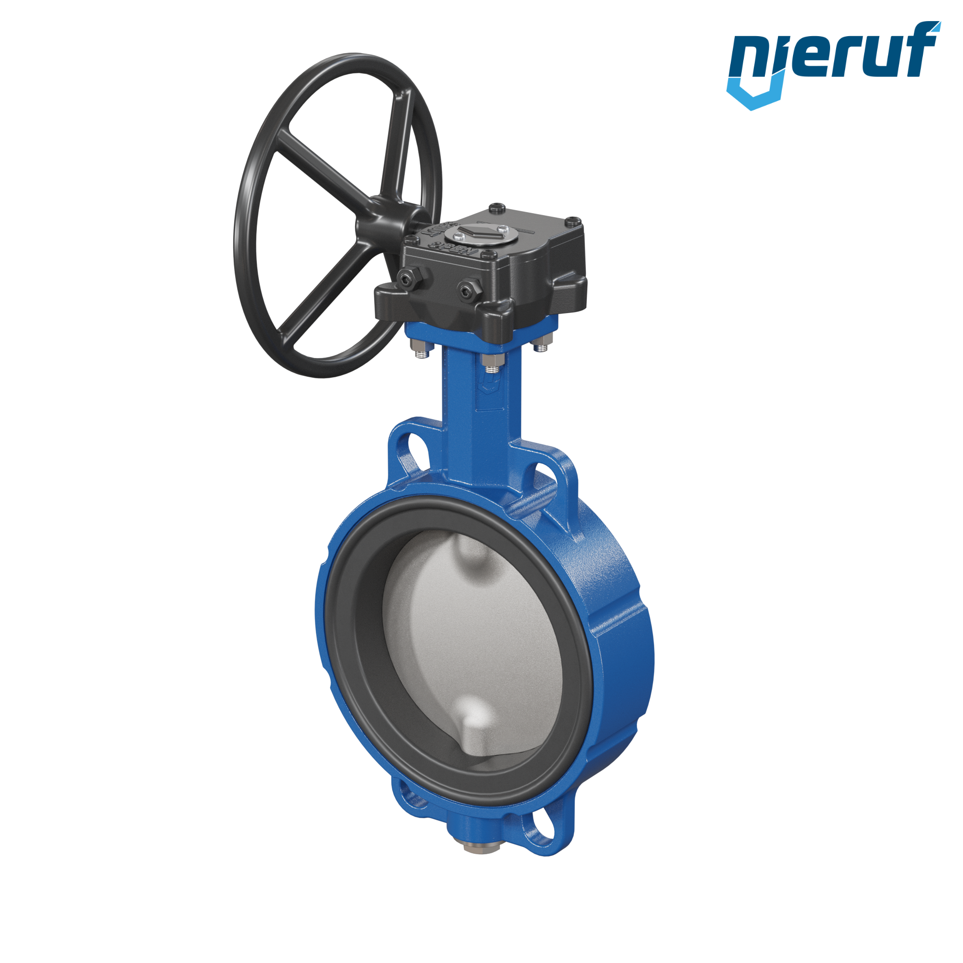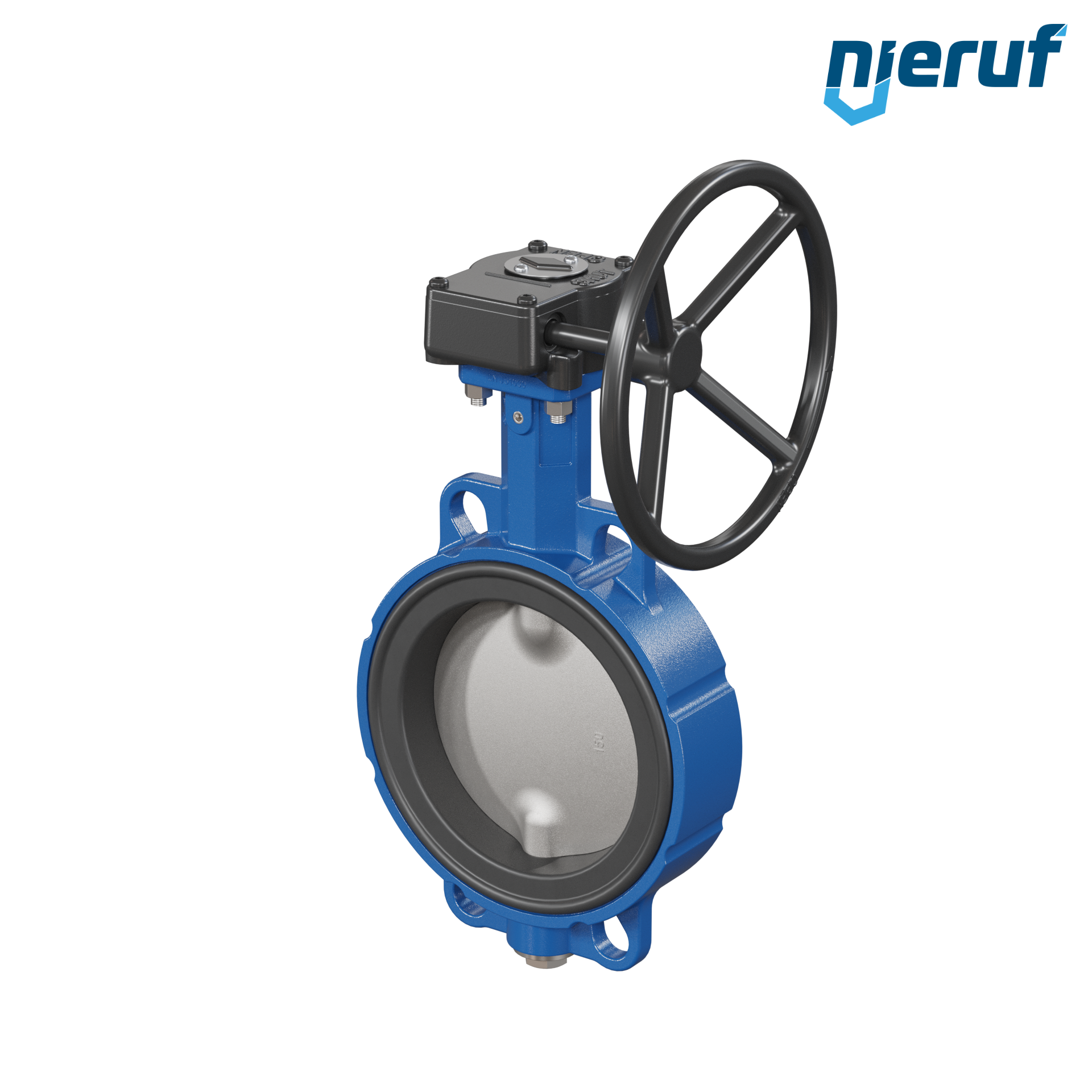 Absperrklappe DN 150 PN6-PN10-PN16 & ANSI150 mit Zentrieraugen aus Sphäroguss mit Schneckenradgetriebe NBR-70-schwarz DVGW Gas