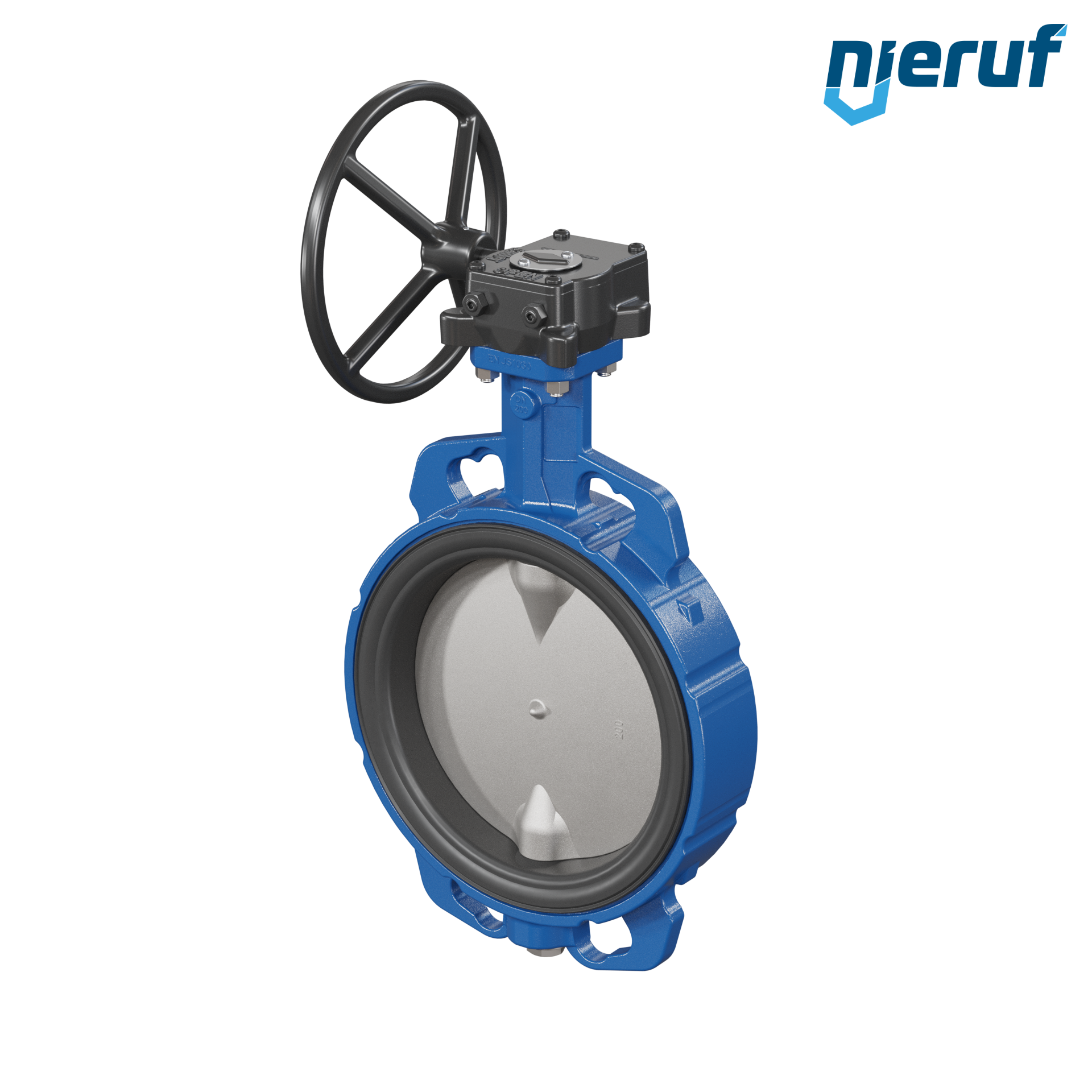 Absperrklappe DN 200 PN6-PN10-PN16 & ANSI150 mit Zentrieraugen aus Sphäroguss mit Schneckenradgetriebe FPM