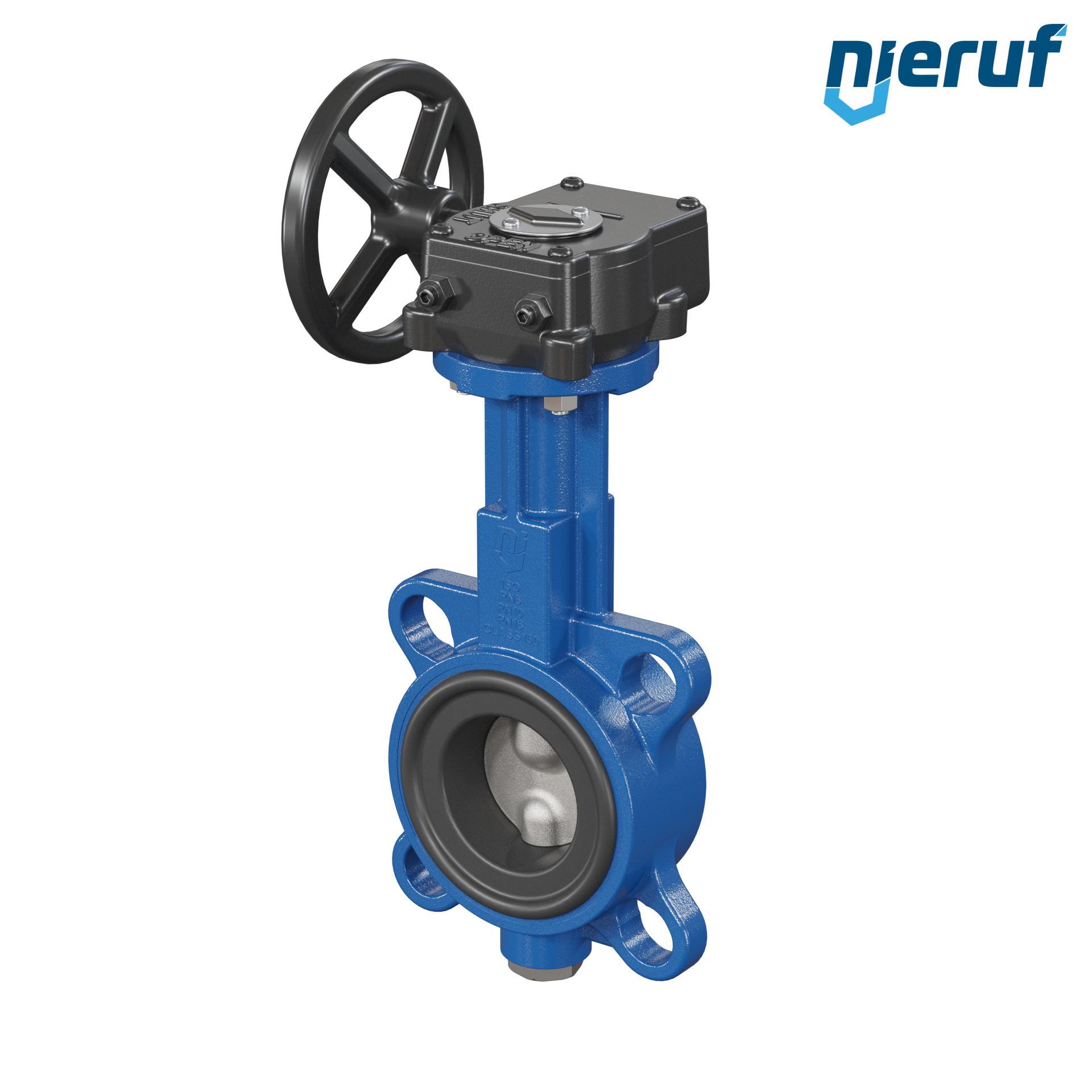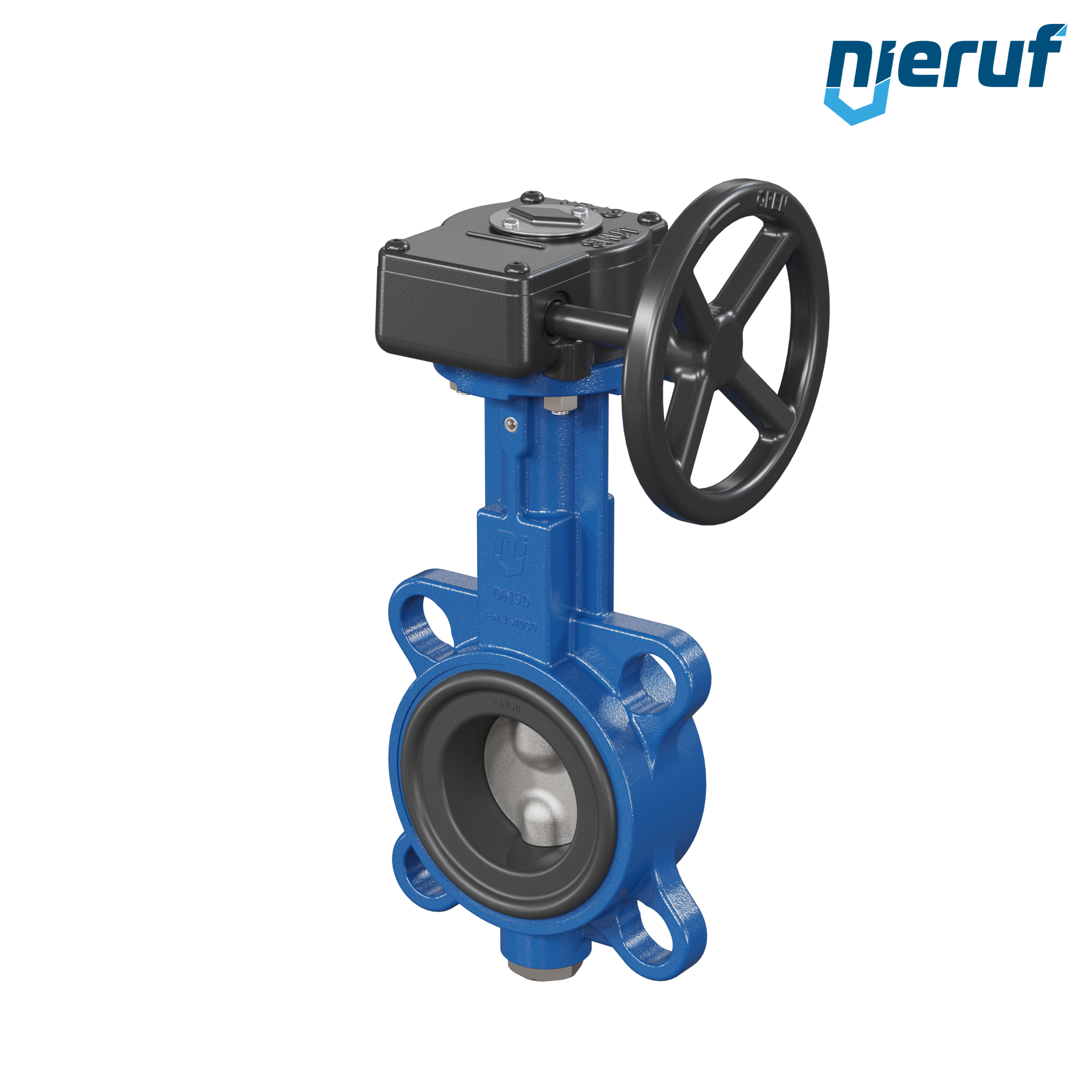 Absperrklappe DN 50 PN6-PN10-PN16 & ANSI150 mit Zentrieraugen aus Sphäroguss mit Schneckenradgetriebe FPM