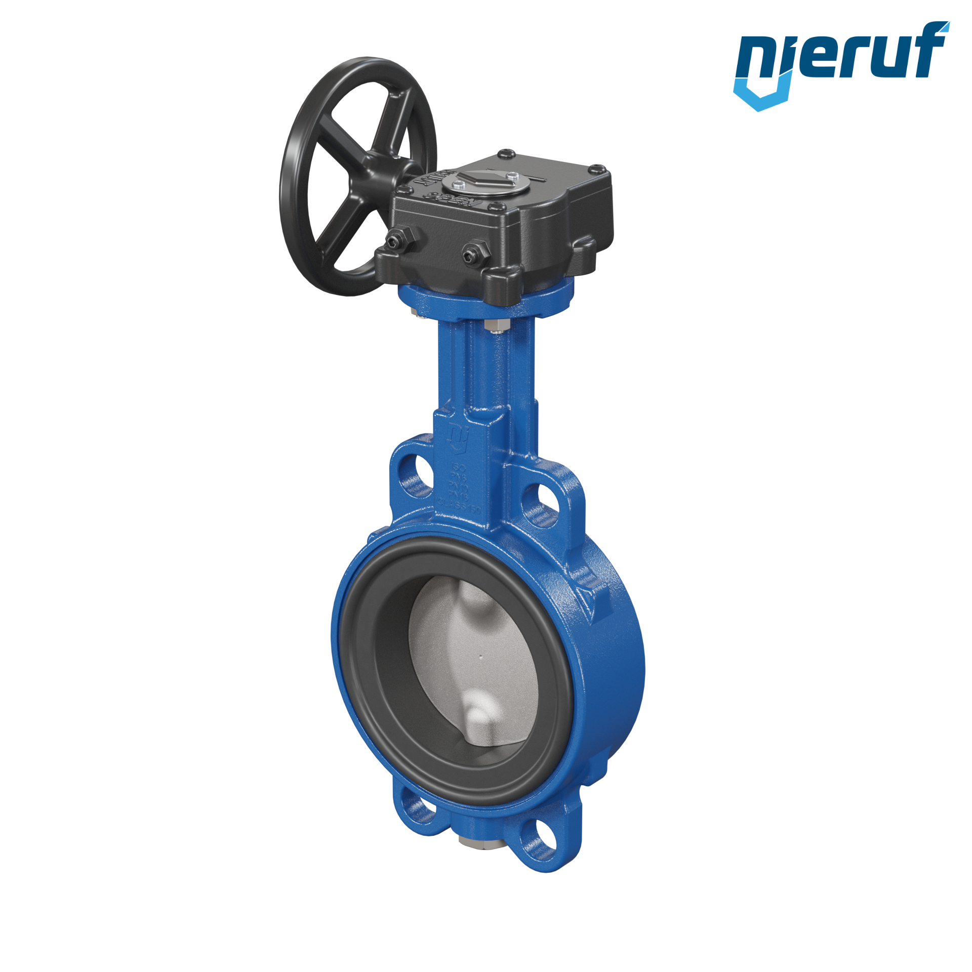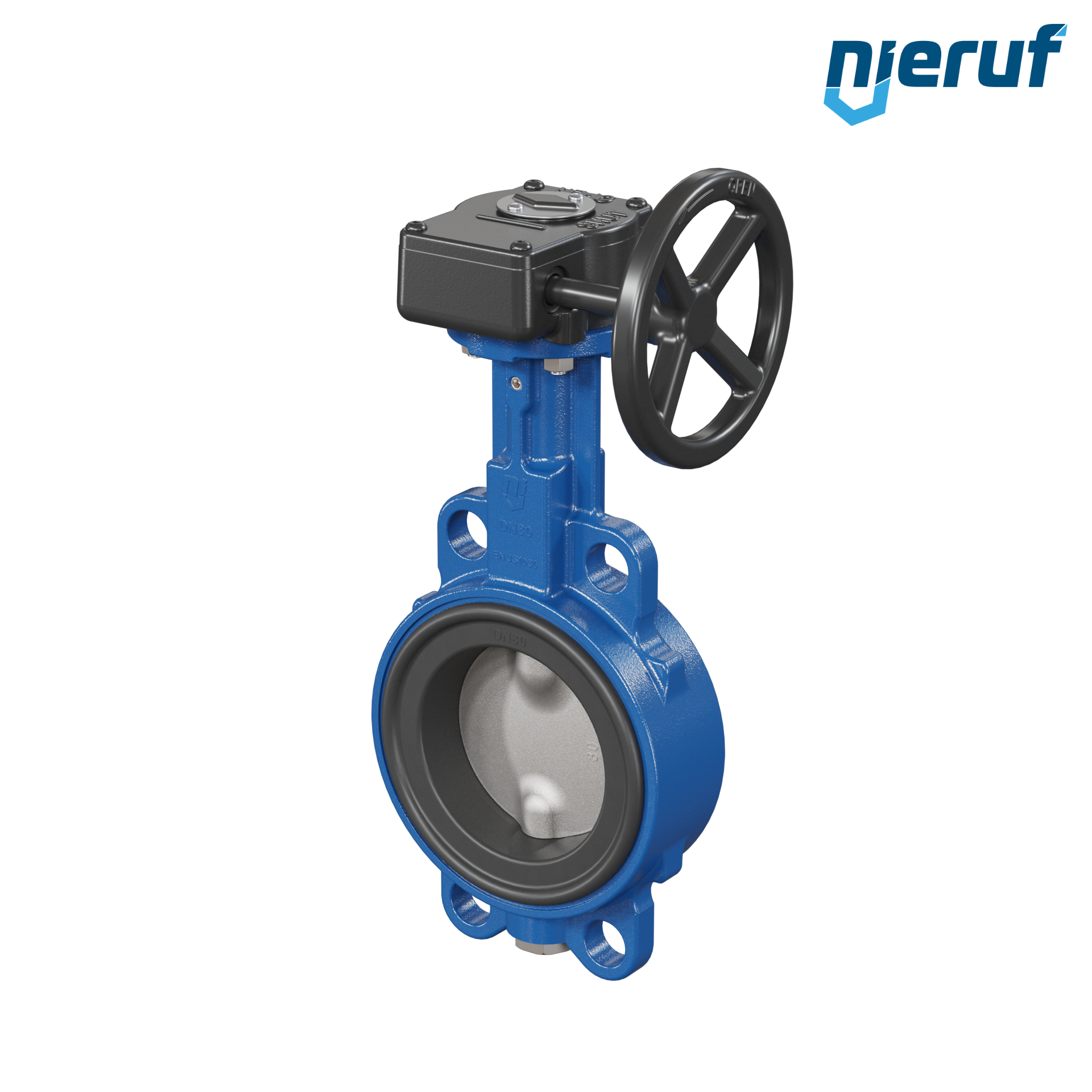 Absperrklappe DN 80 PN6-PN10-PN16 & ANSI150 mit Zentrieraugen aus Sphäroguss mit Schneckenradgetriebe FPM