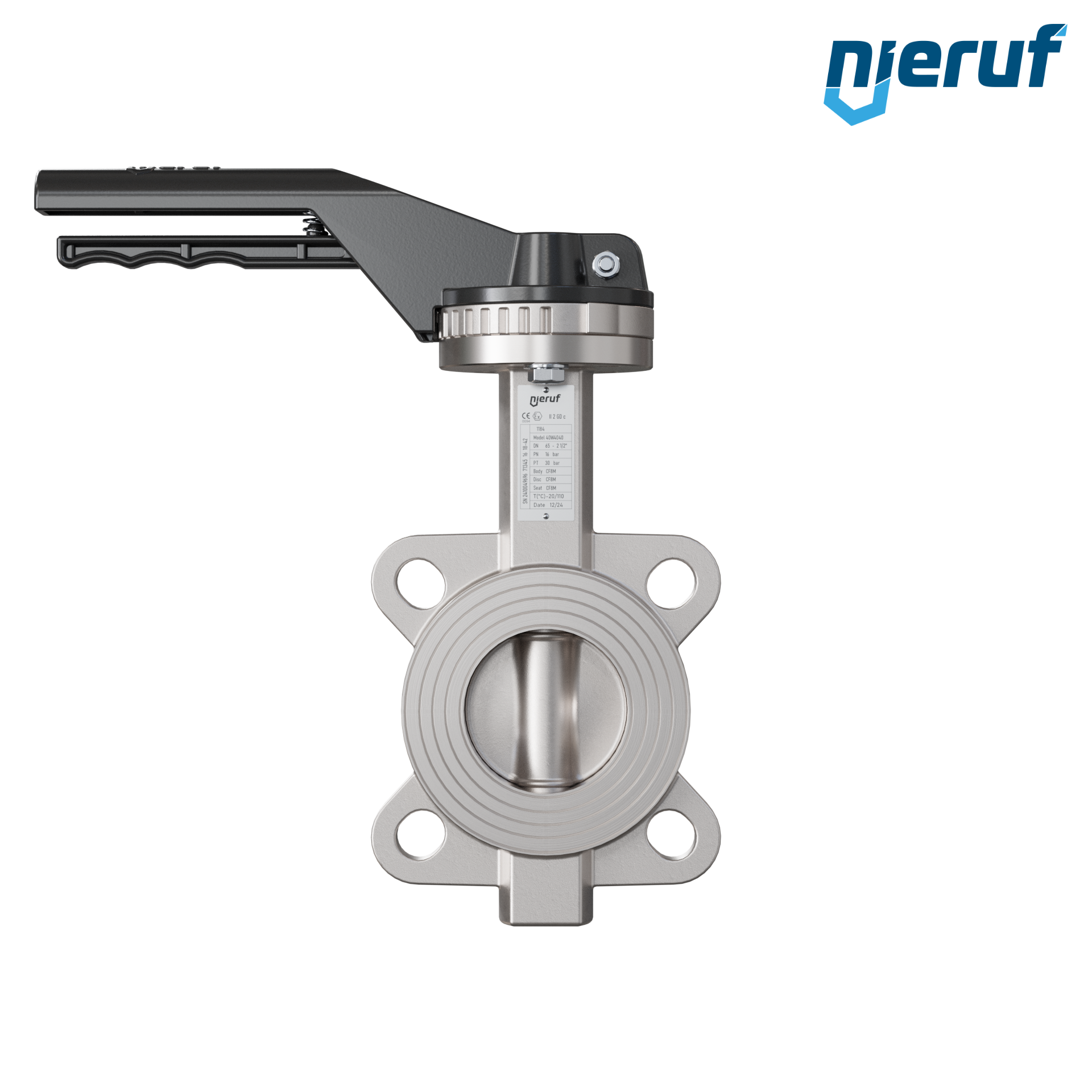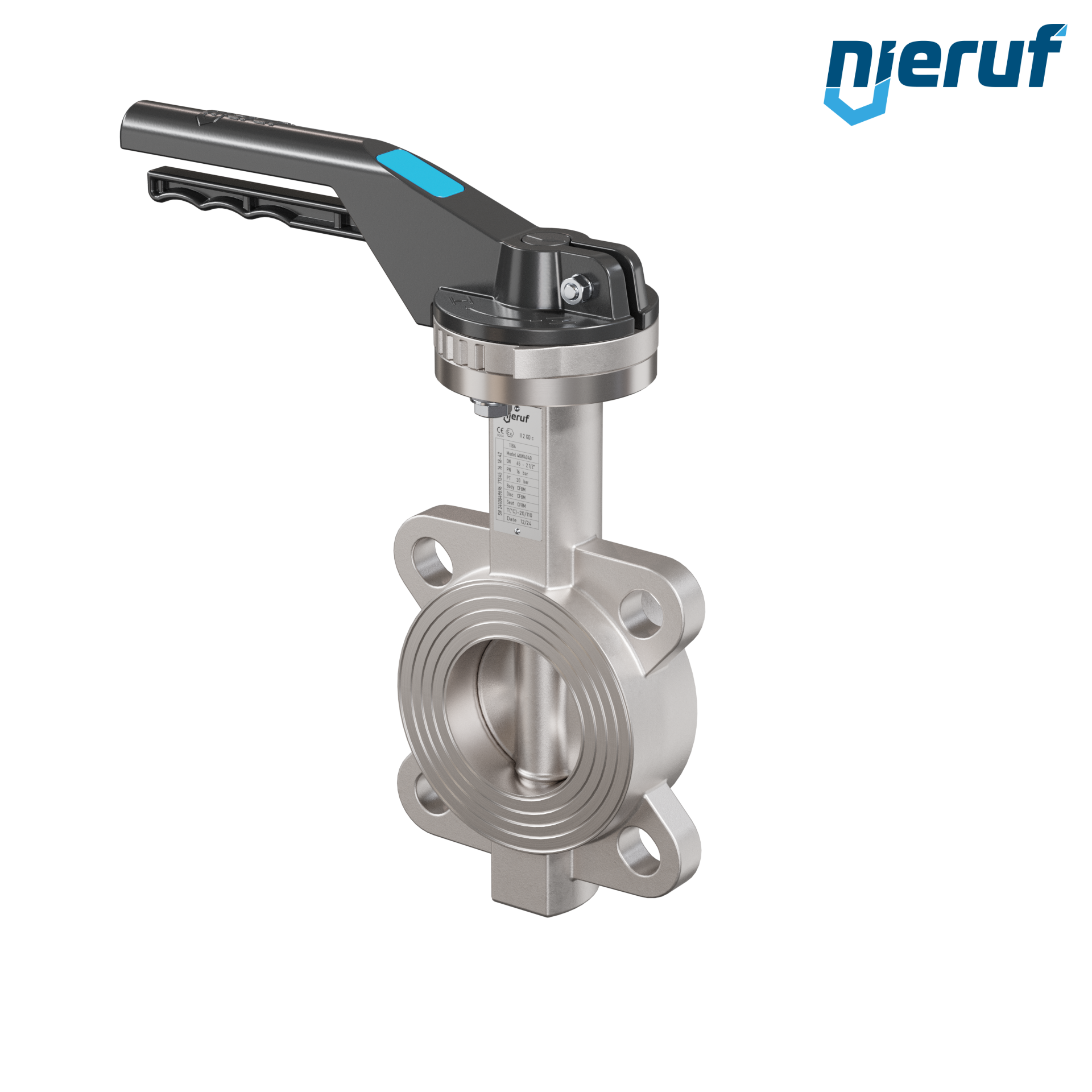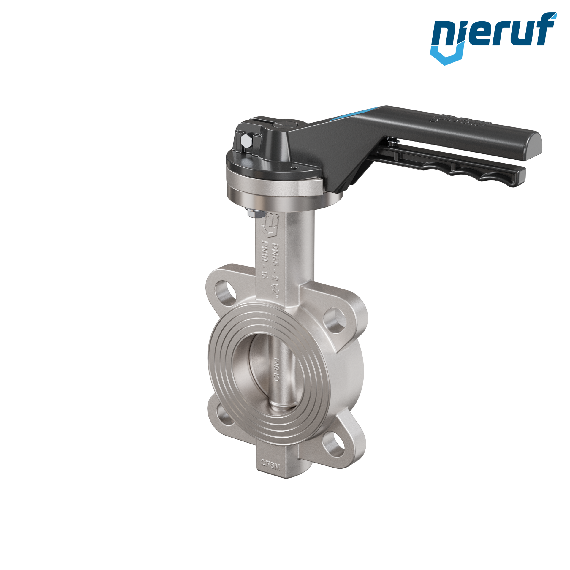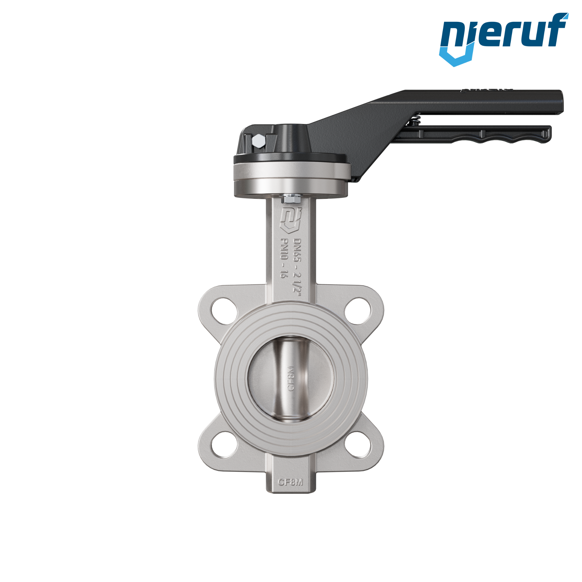 Edelstahl-Absperrklappe DN 65 PN16 mit Zentrieraugen Gehäuse aus Edelstahl 1.4408 Klappenscheibe aus Edelstahl 1.4408 mit Handhebel und Dichtung aus metall