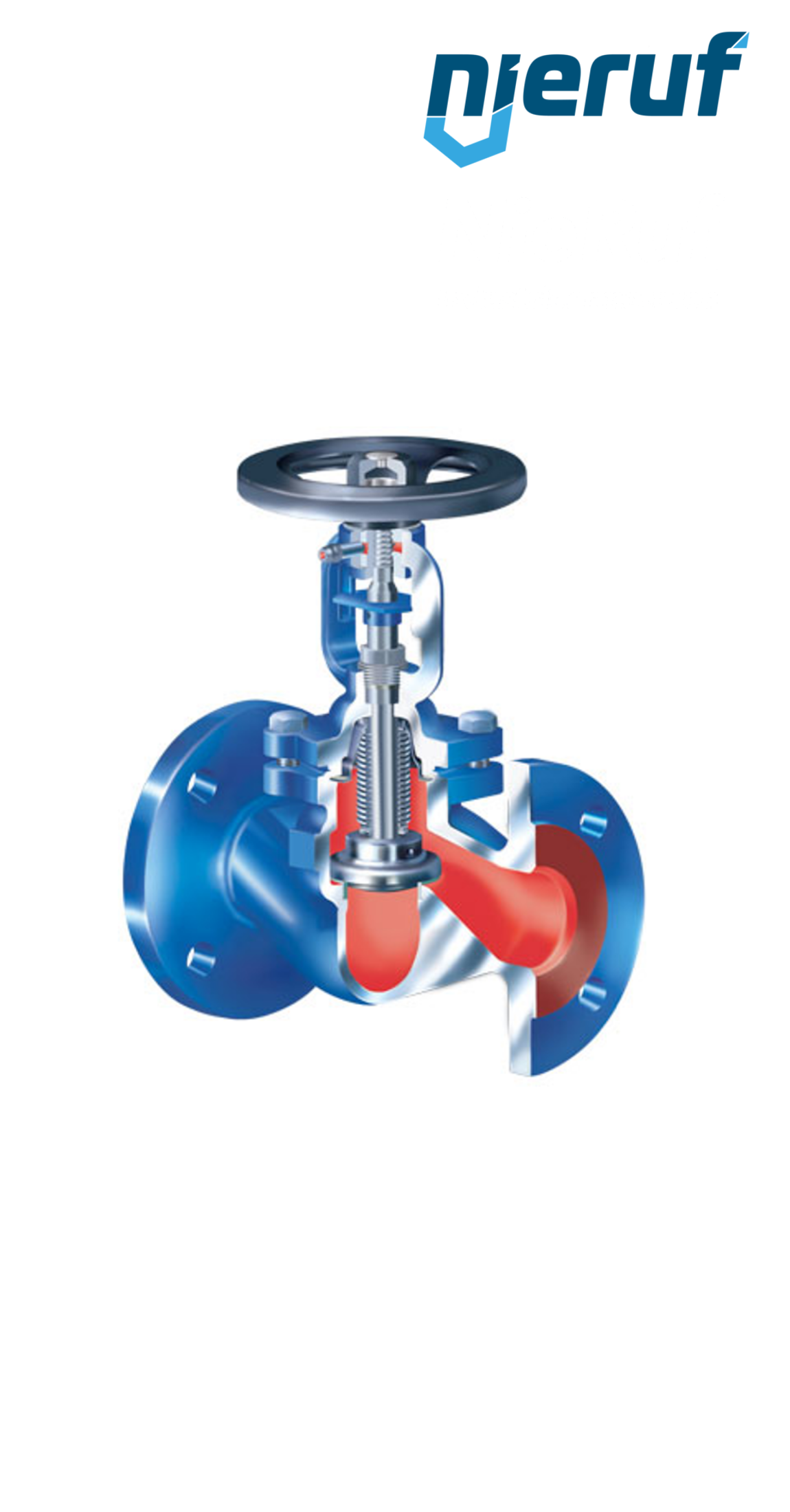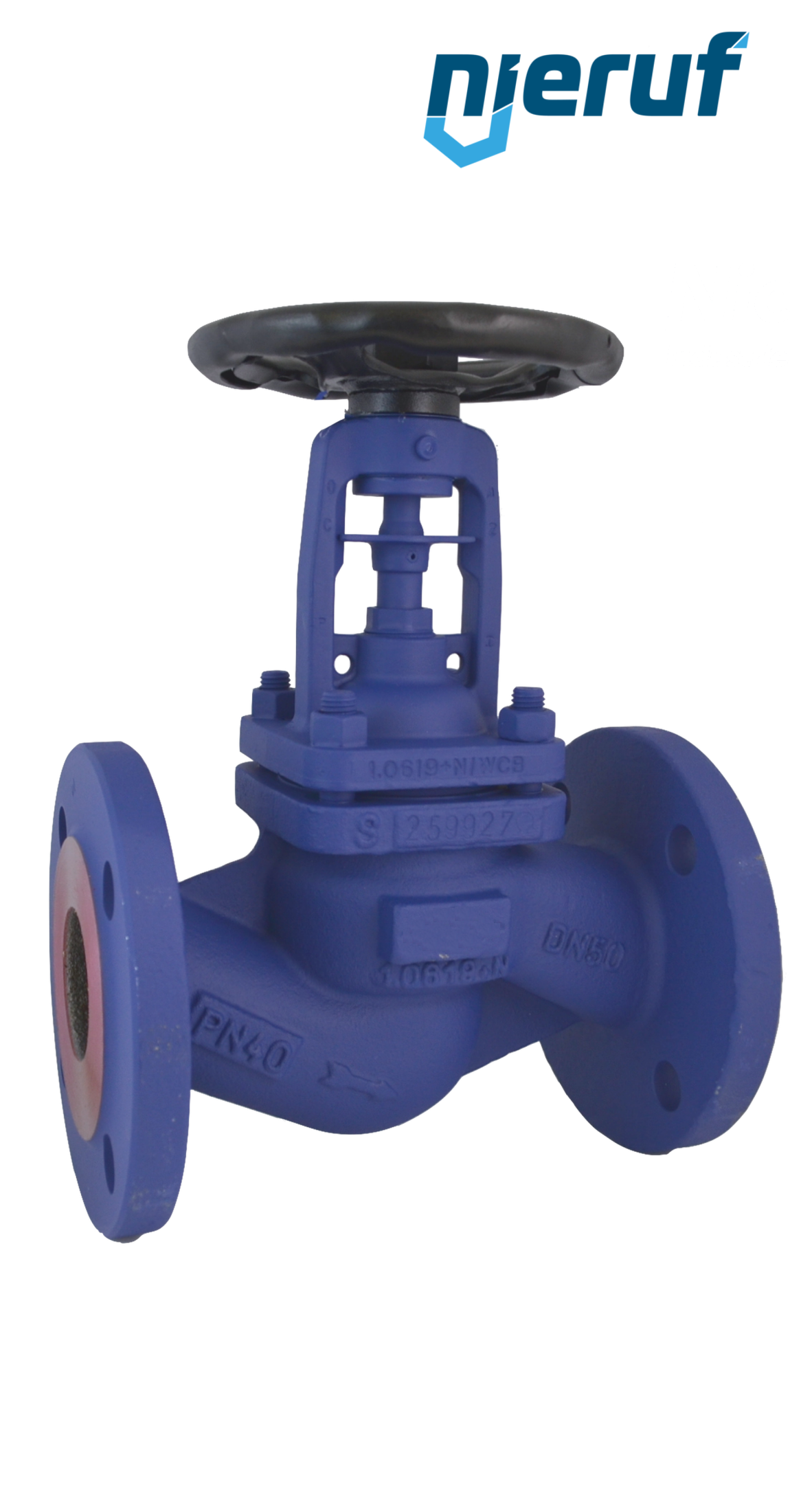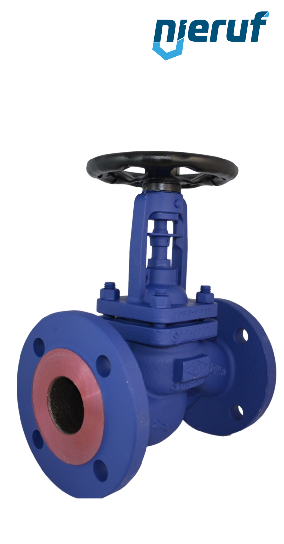 Flansch-Absperrventil DN 32 in Durchgangsform mit Faltenbalg Flansch nach DIN EN 1092 Material Grauguss EN-JL1040 mit Kantensitzkegel