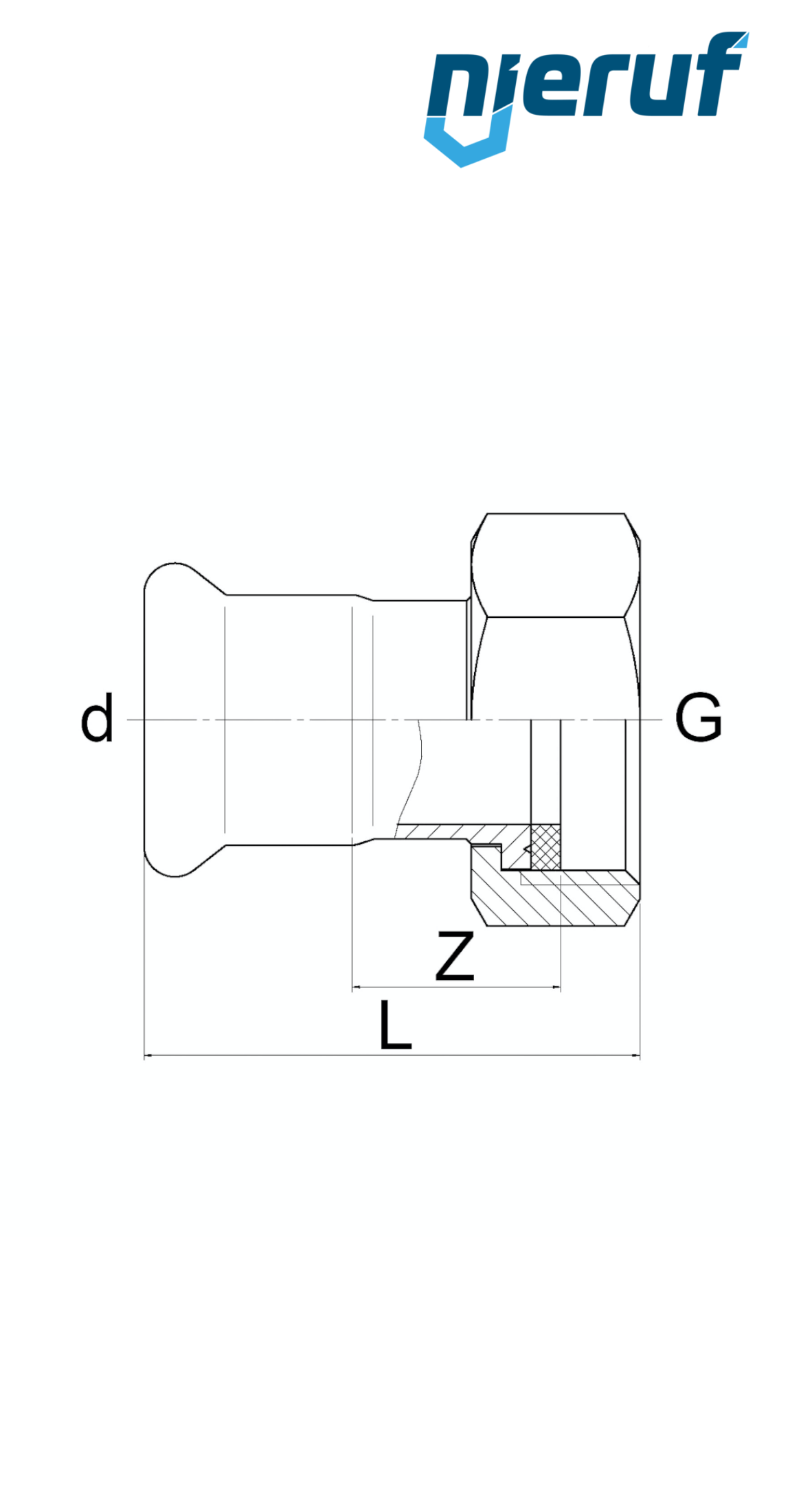 Anschlussverschraubung PF01-08 mit Pressverbindung I DN25 - 28,0 mm, Innengewinde 1 1/4" Zoll aus Edelstahl für flüssige & gasförmige Medien
