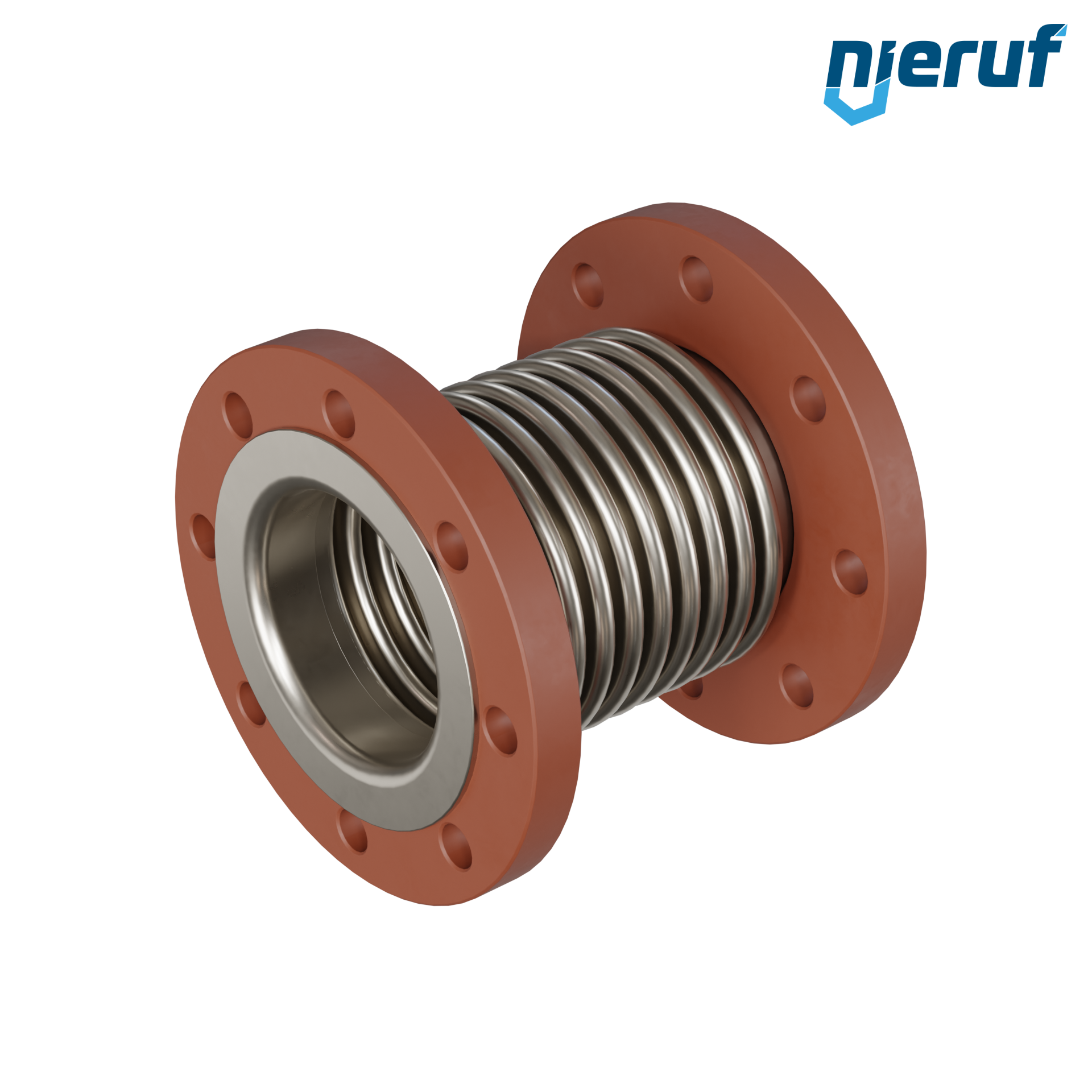 Dieser hochwertige Axialkompensator mit Edelstahlfaltenbalg und Bördelflanschen aus Stahl ist für den Einsatz bei hohen Temperaturen und rauhen Bedingungen geeignet. Der Typ kann auch in anderen Nennweiten, Druckstufen und Baulängen, so wie mit Sonderbeschichtung angeboten werden und um ein Leit- oder Schutzrohr erweitert werden.