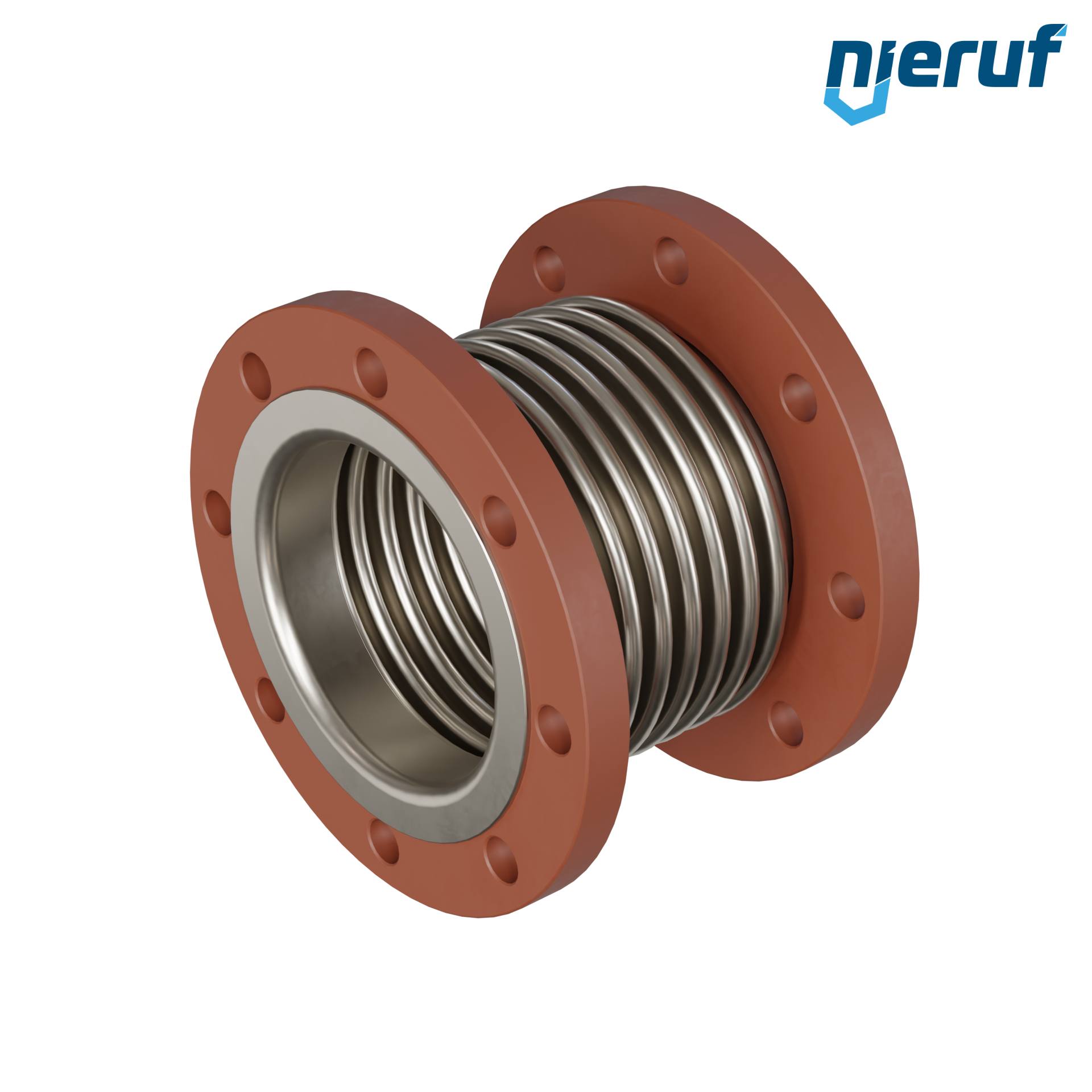 Dieser hochwertige Axialkompensator mit Edelstahlfaltenbalg und Bördelflanschen aus Stahl ist für den Einsatz bei hohen Temperaturen und rauhen Bedingungen geeignet. Der Typ kann auch in anderen Nennweiten, Druckstufen und Baulängen, so wie mit Sonderbeschichtung angeboten werden und um ein Leit- oder Schutzrohr erweitert werden.