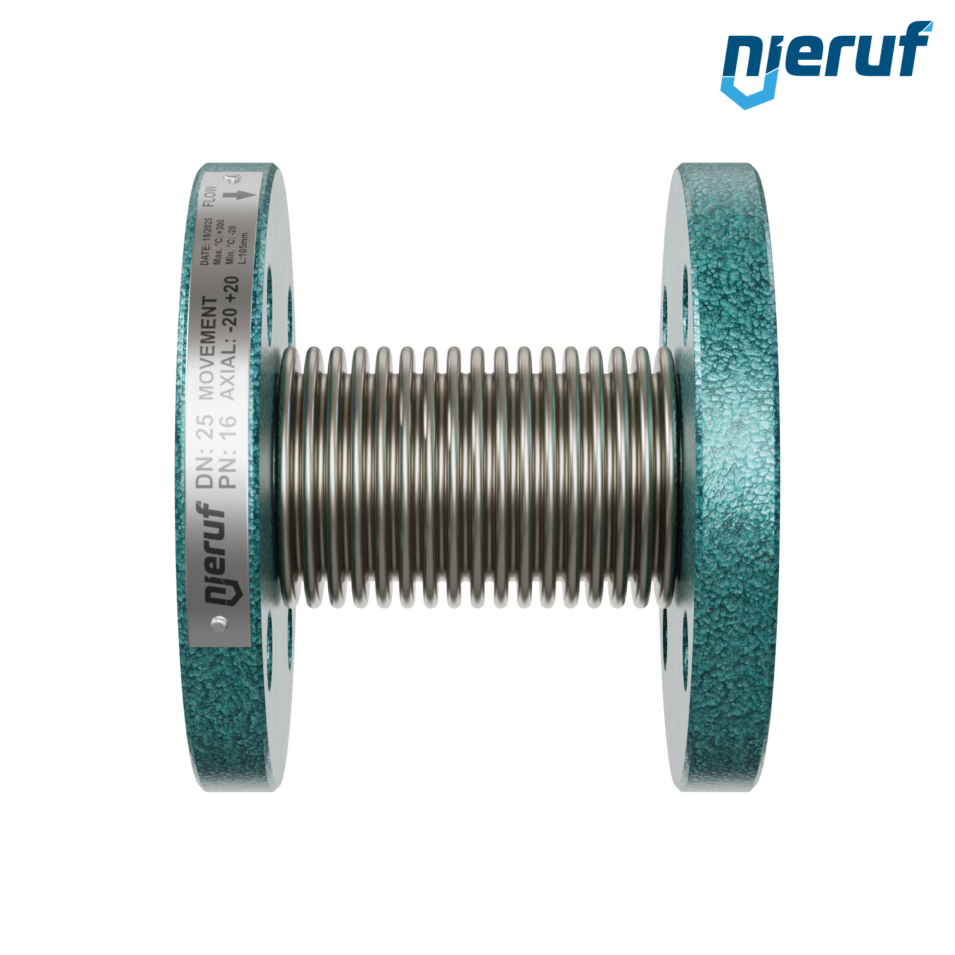 Axialkompensator DN25, Manschette und Faltenbalg aus Edelstahl 1.4541 / SS 321 Flansch DIN EN 1092-1 PN 10/16