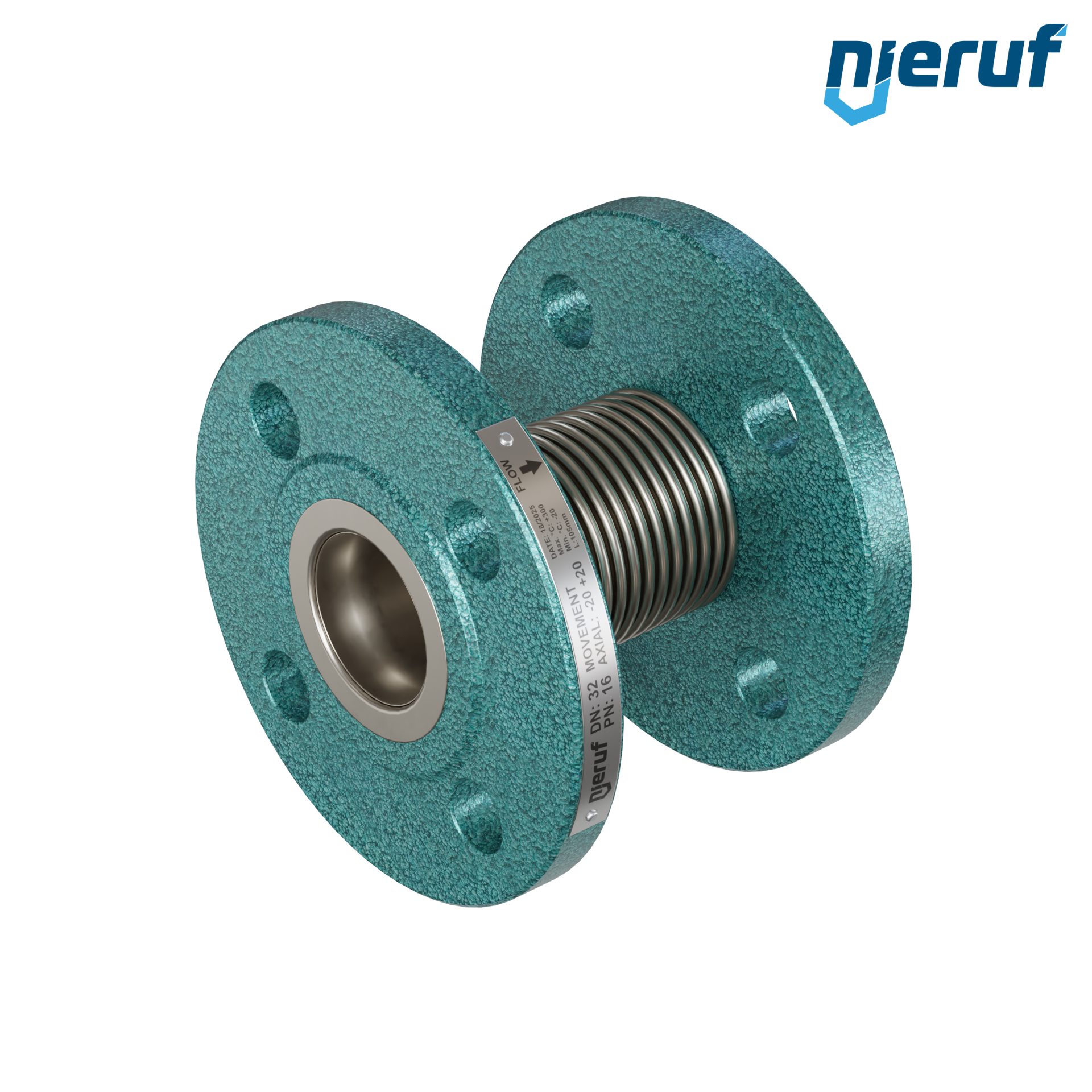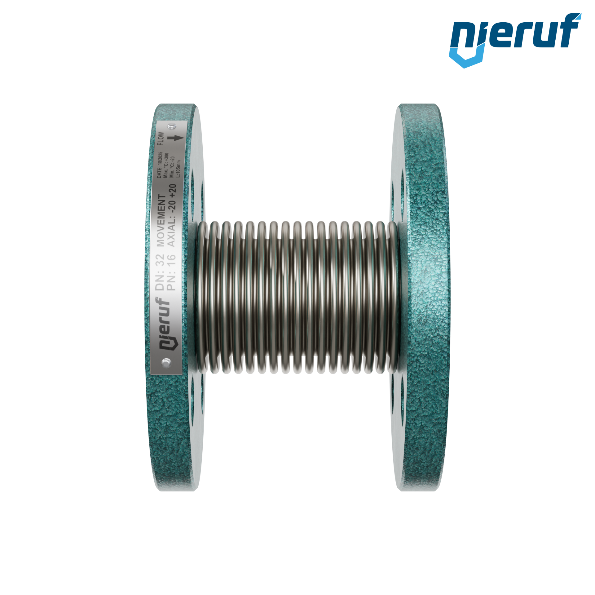Axialkompensator DN32, Manschette und Faltenbalg aus Edelstahl 1.4541 / SS 321 Flansch DIN EN 1092-1 PN 10/16