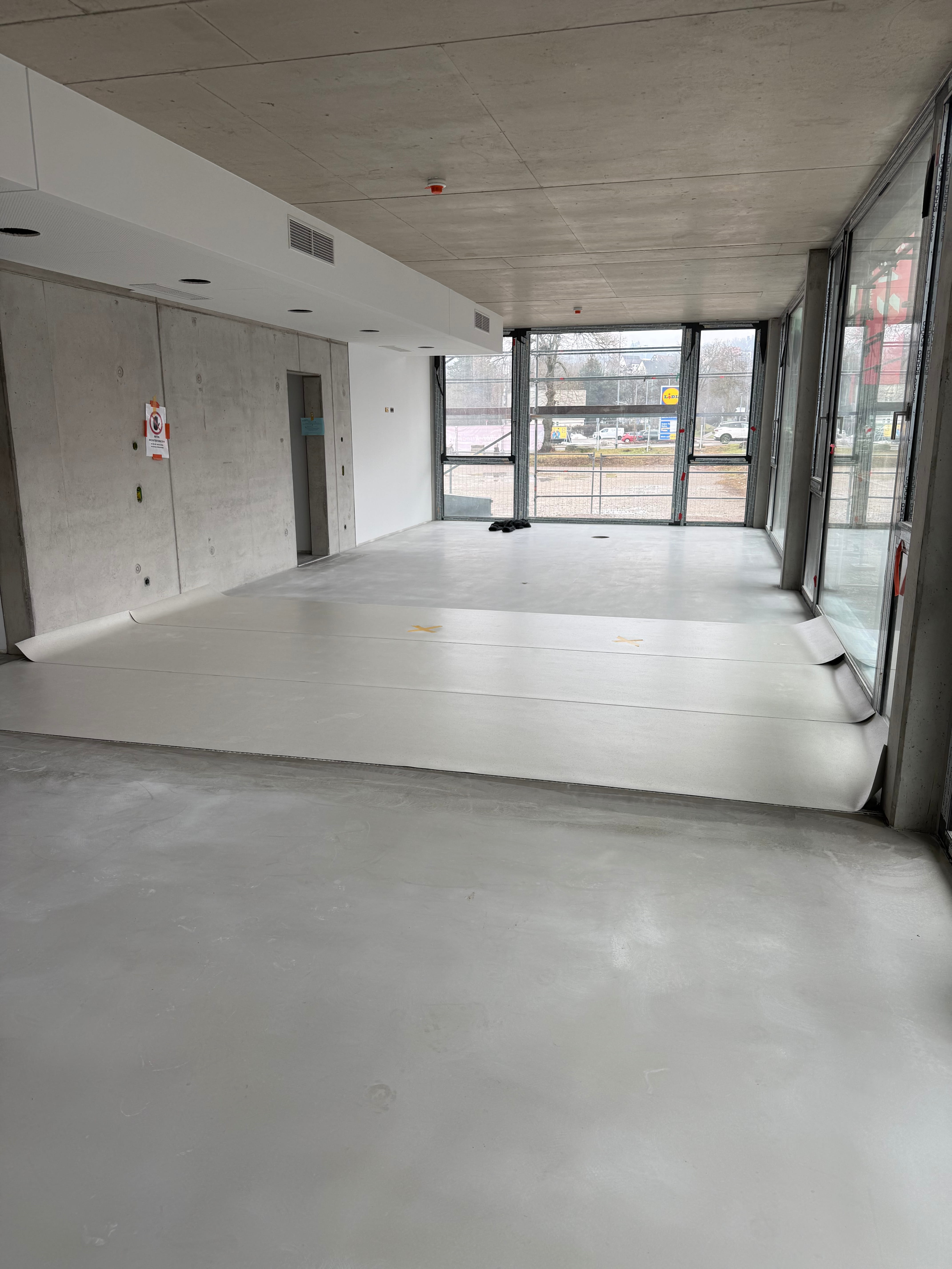 Im Januar kommt der Fußboden ins Gebäude – die Räume wirken sofort klarer und fertiger. Gleichzeitig werden die ersten Sanitärinstallationen sichtbar und geben den Bereichen zunehmend ihre Funktion.