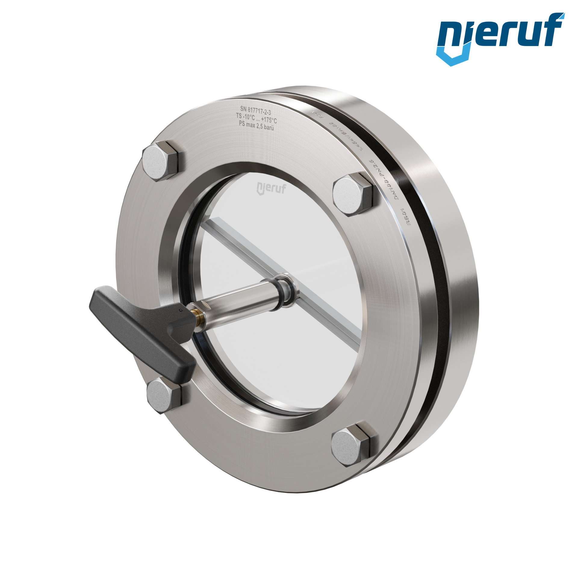 Behälter-Schauglas mit PTFE-Scheibenwischer DN100 BS01 Edelstahl 1.4571 EPDM Borosilikatglas 2,5bar
