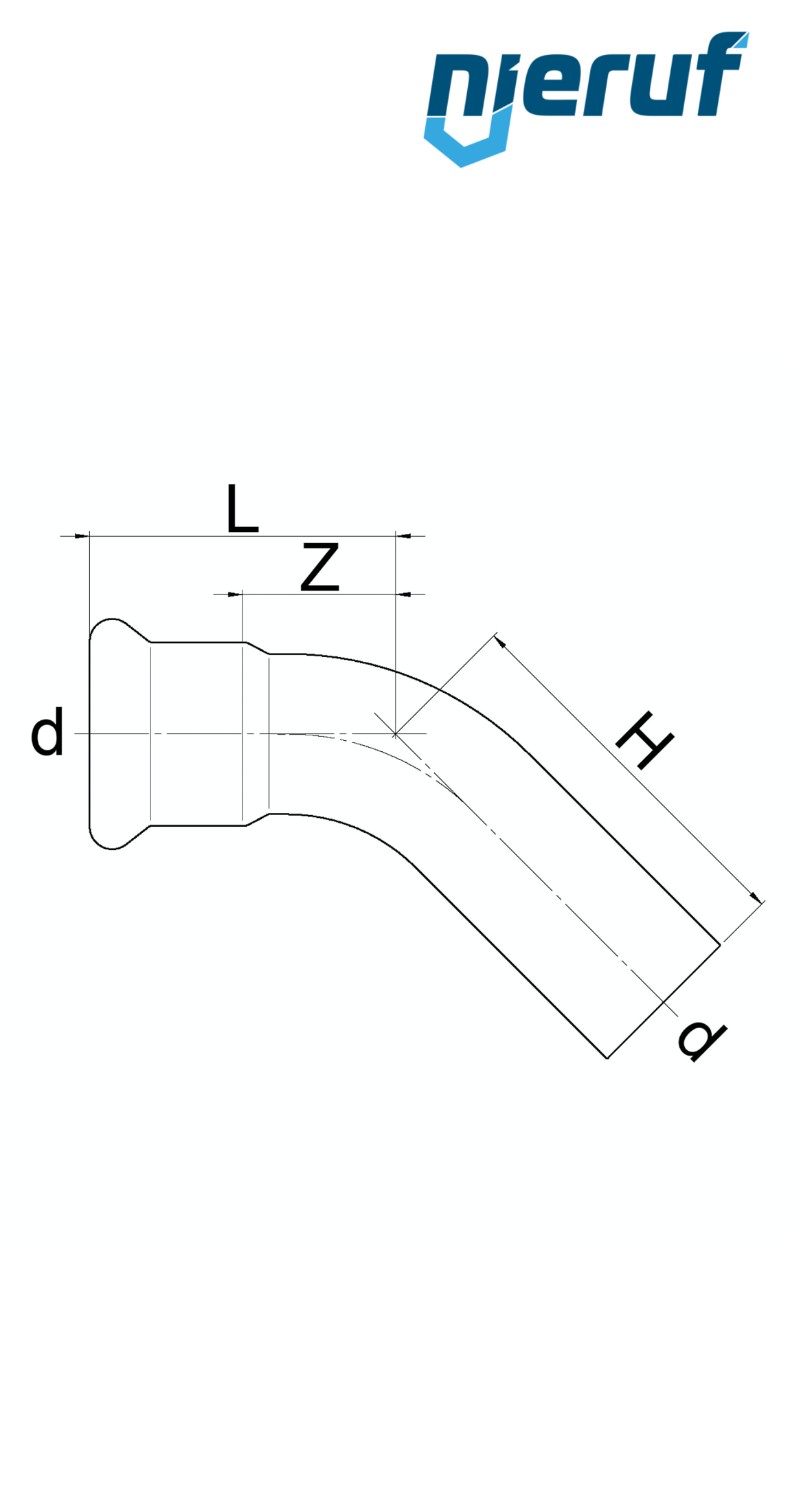 Bogen 45° PF01-00 mit Pressverbindung I x A DN20 - 22,0 mm aus Edelstahl für flüssige & gasförmige Medien