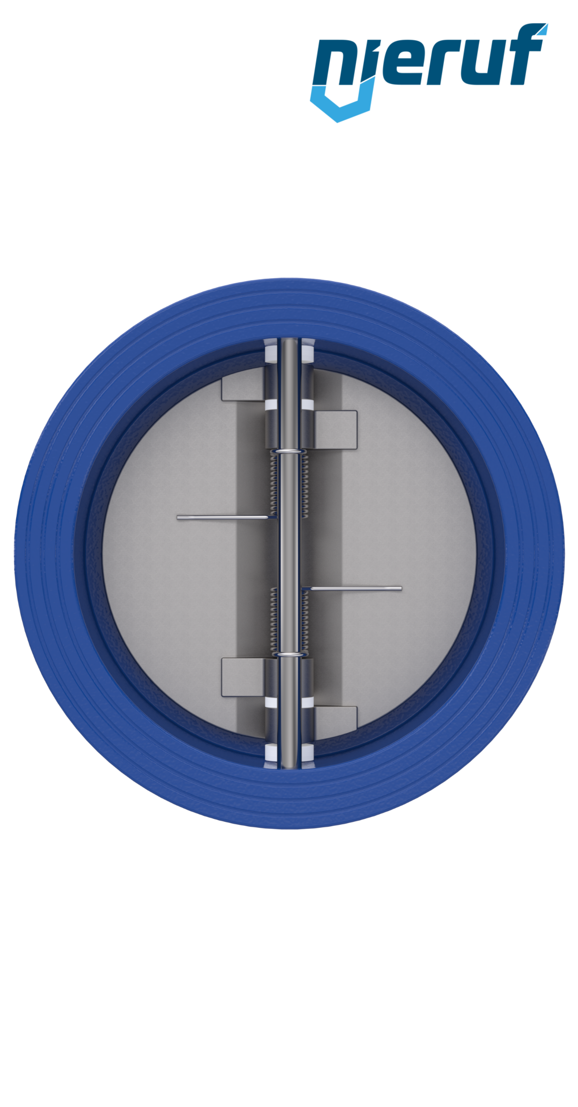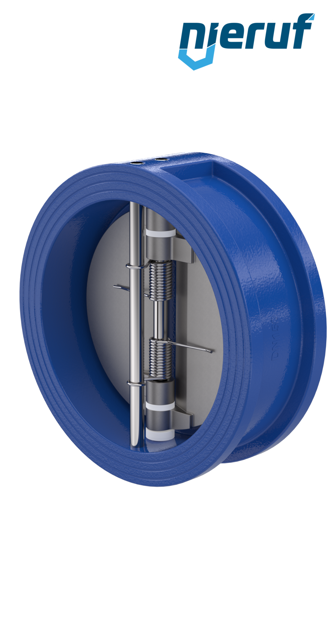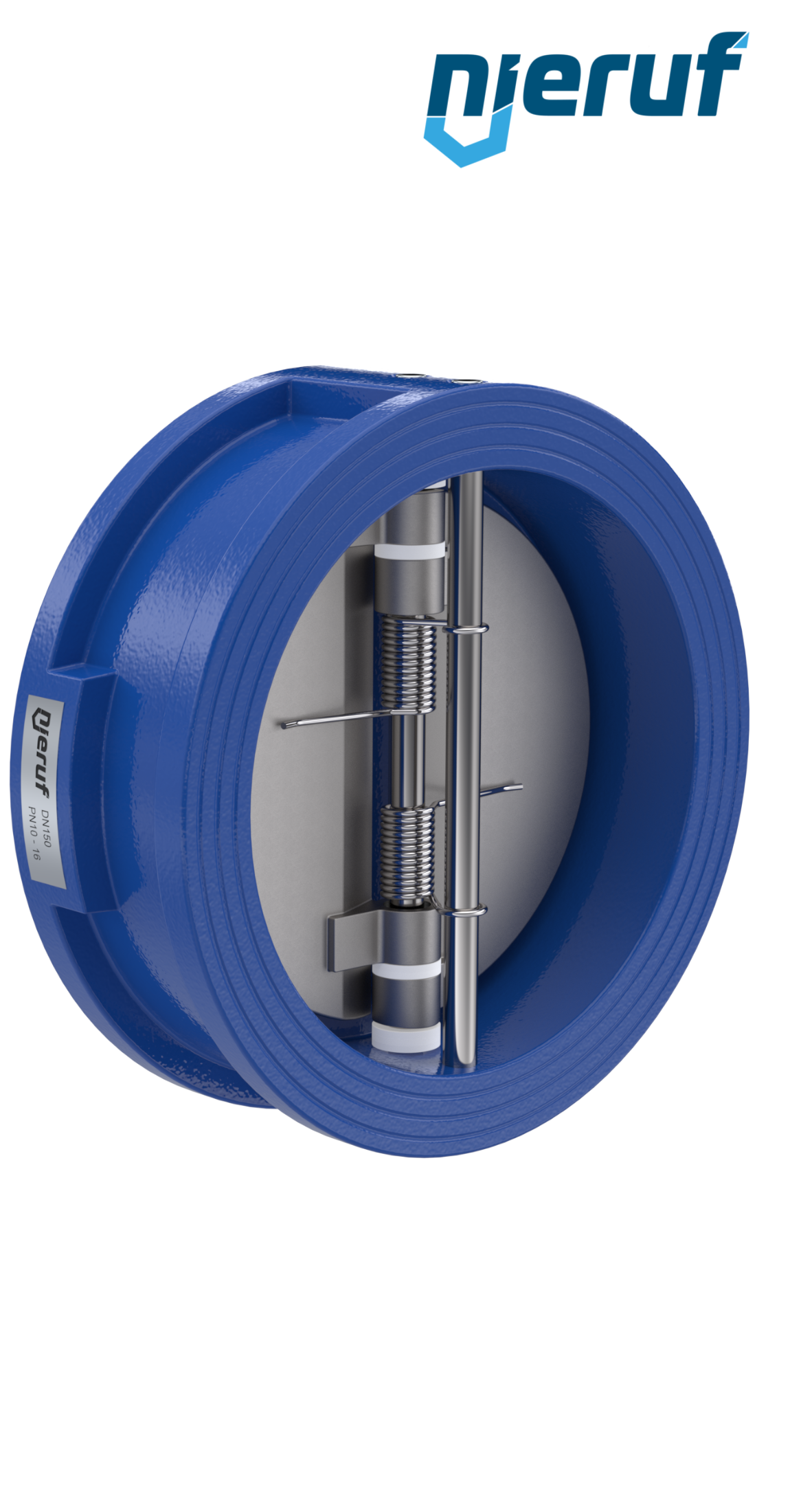 Doppelflügel-Rückschlagklappe DN150 Dichtung FKM (Viton) PN 10/16 DIN EN 1092-1 Form B, Gehäuse aus GGG40 epoxid-beschichtet blau 180µm