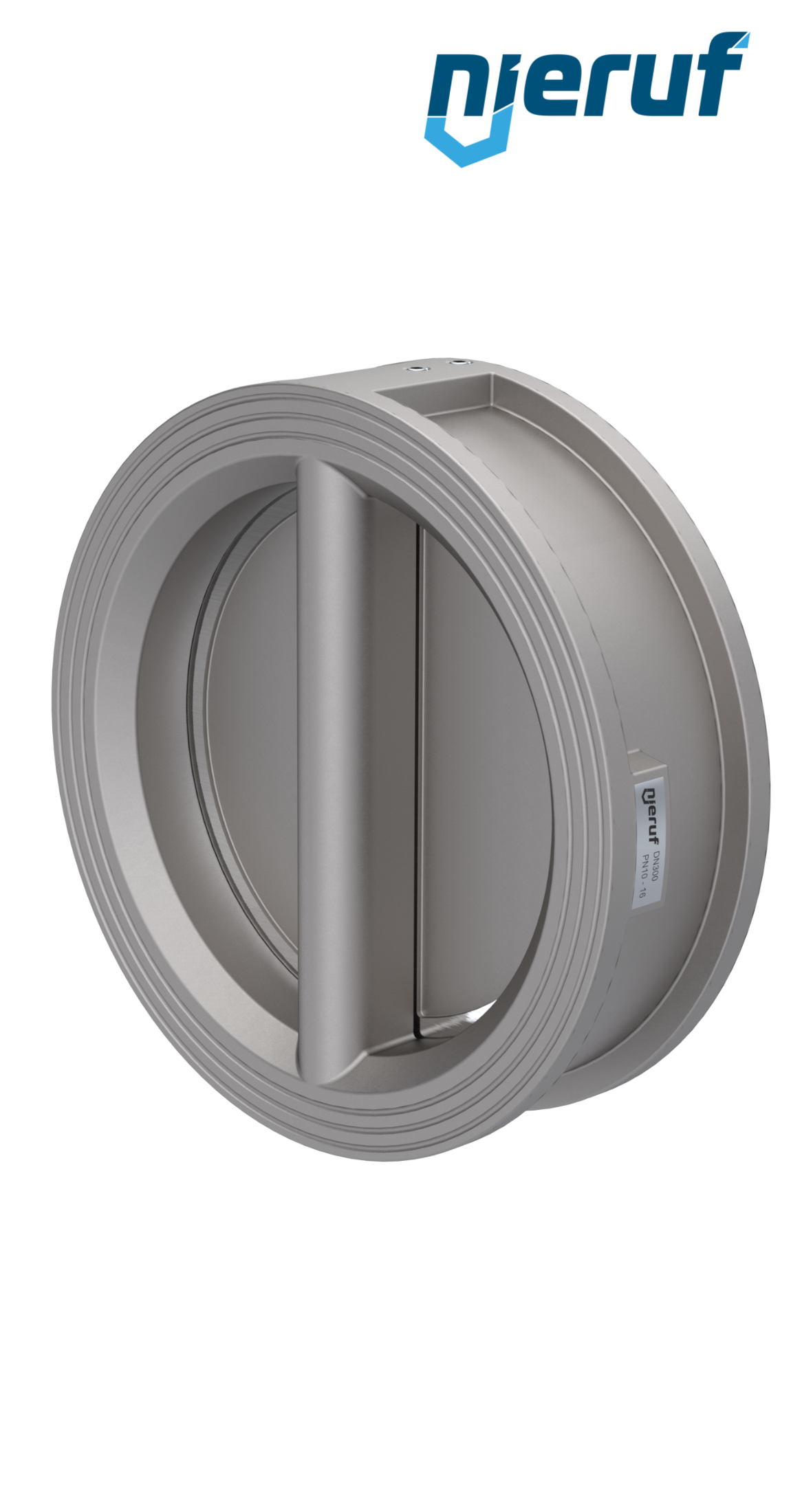 Doppelflügel-Rückschlagklappe DN300 Dichtung FKM (Viton) PN 10 DIN EN 1092-1 Form B, Gehäuse aus Edelstahl 1.4408, Flügel aus Edelstahl 1.4408