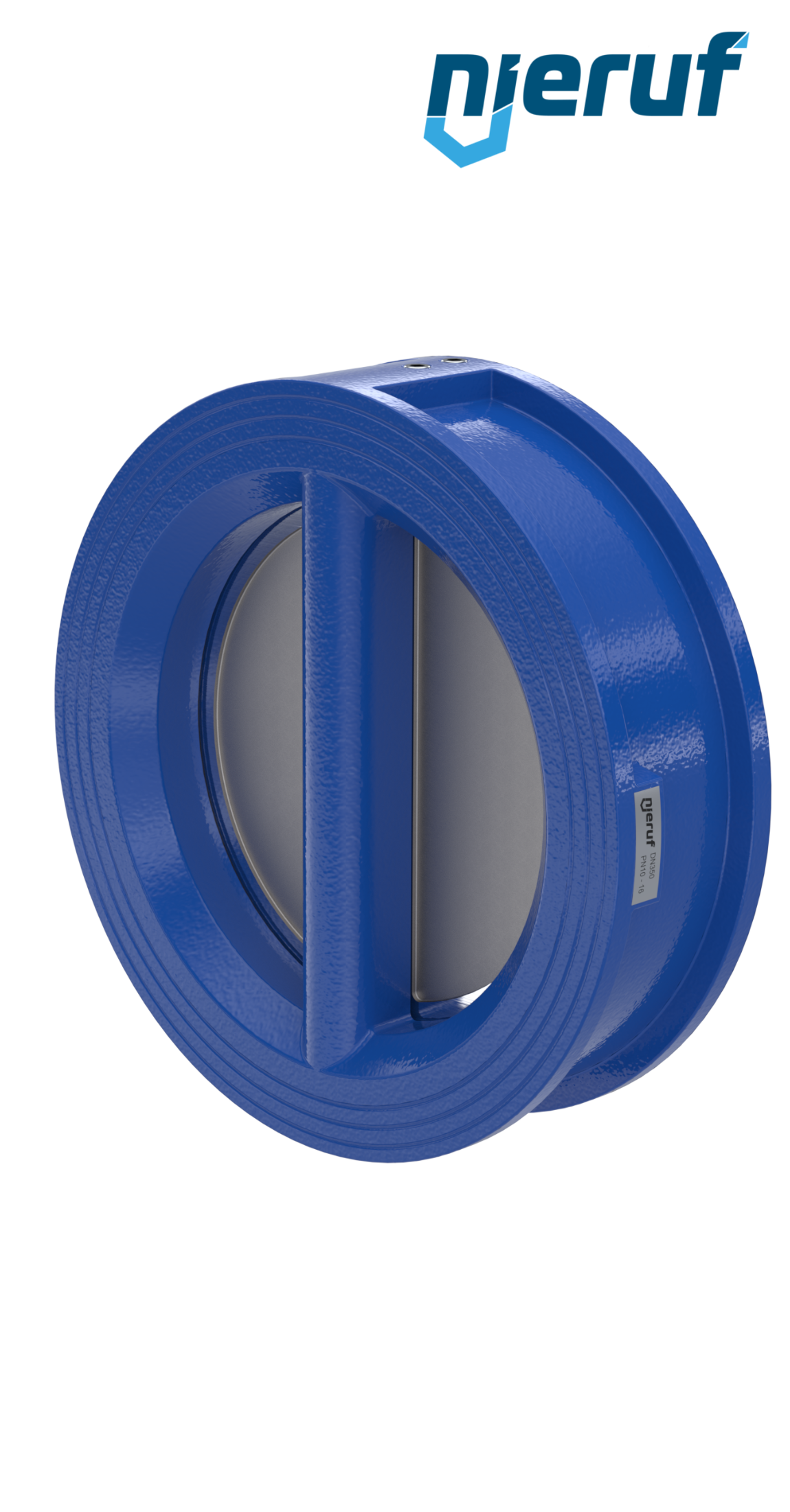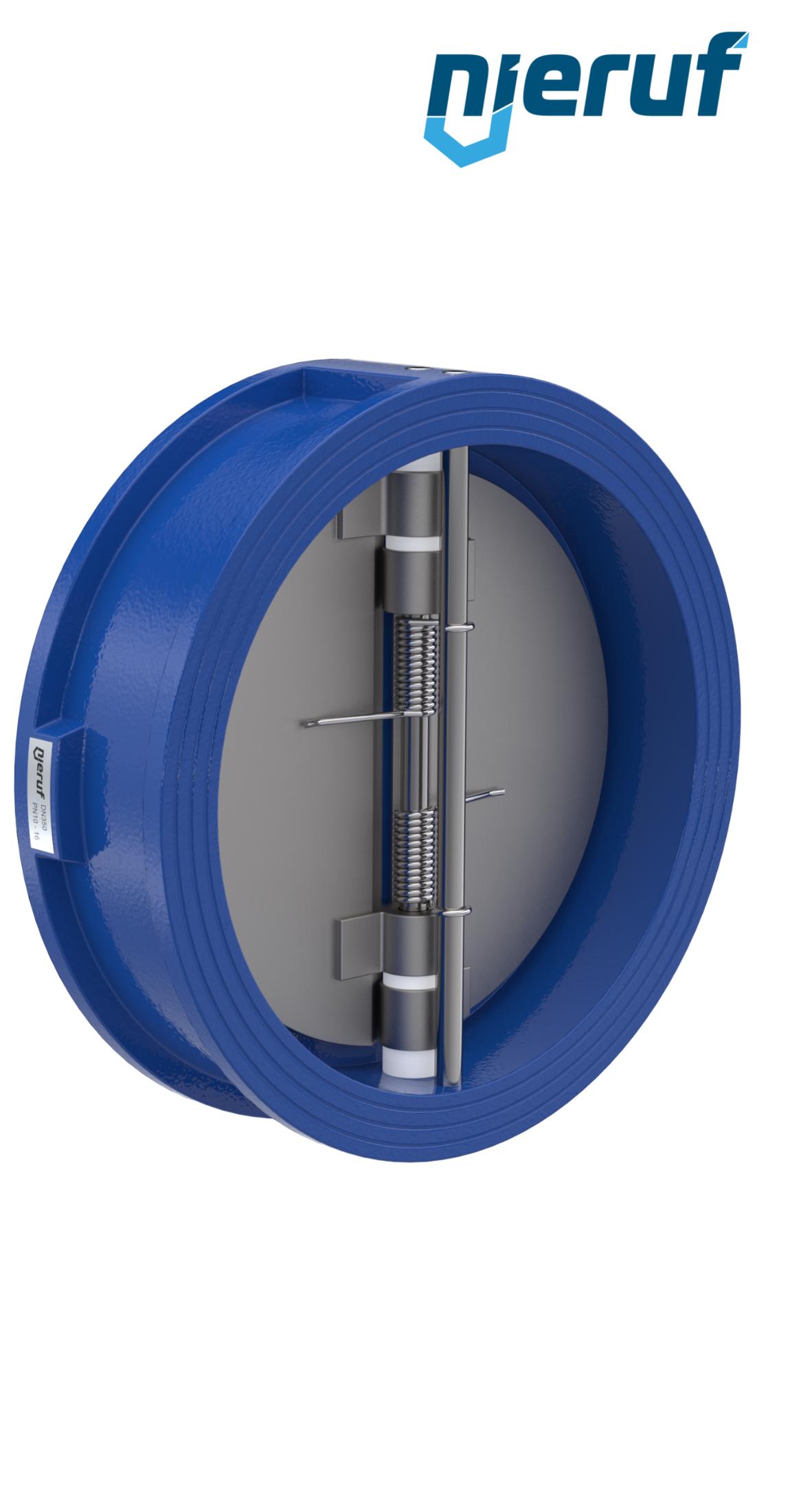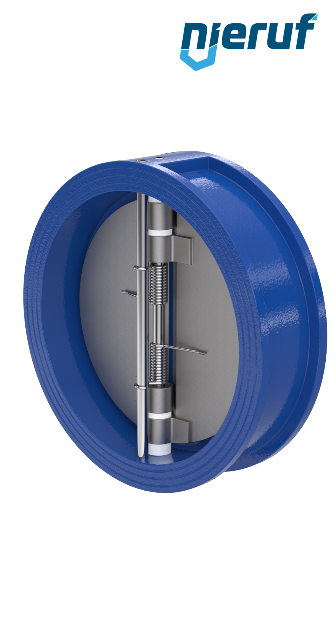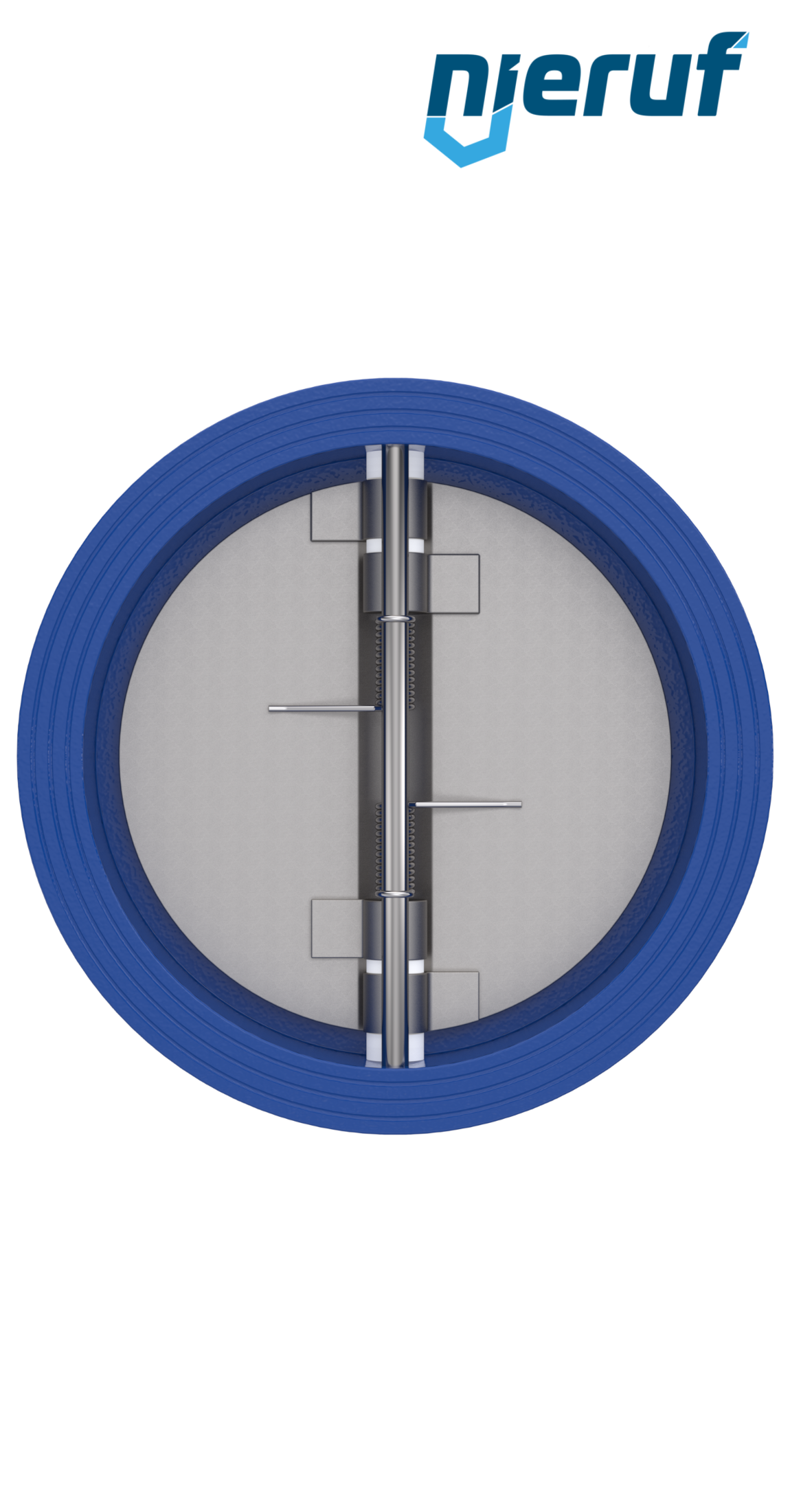 Doppelflügel-Rückschlagklappe DN350 Dichtung FKM (Viton) PN 10 DIN EN 1092-1 Form B, Gehäuse aus GGG40 epoxid-beschichtet blau 180µm