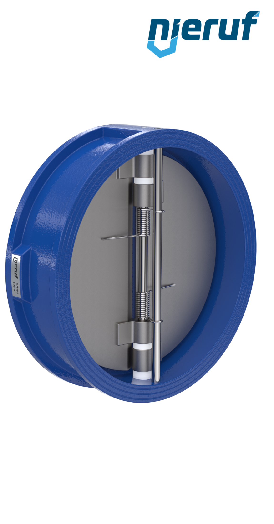 Doppelflügel-Rückschlagklappe DN450 Dichtung FKM (Viton) PN 10 DIN EN 1092-1 Form B, Gehäuse aus Grauguss mit Edelstahl-Flügel