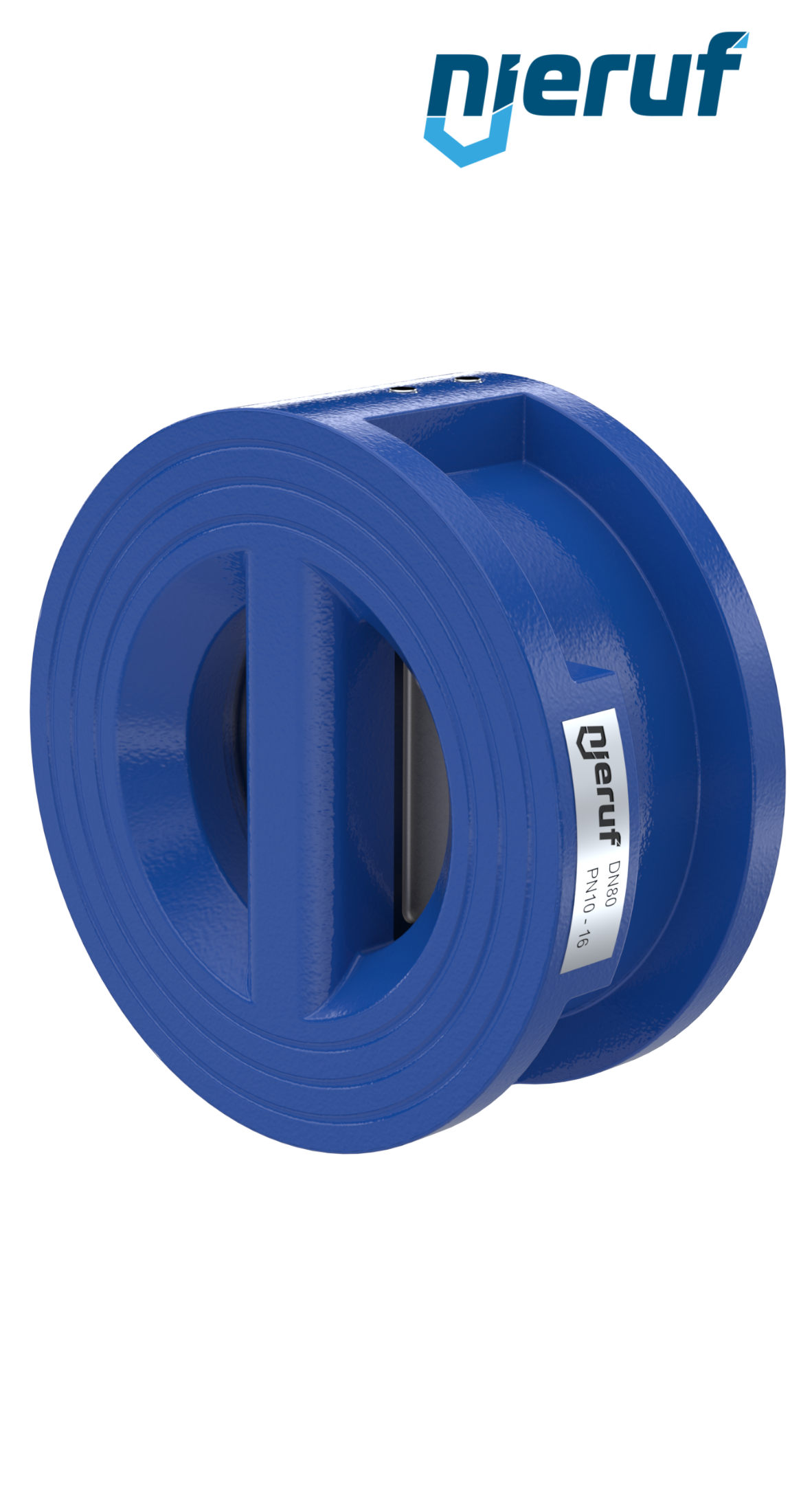 Doppelflügel-Rückschlagklappe DN80 Dichtung FKM (Viton) PN 10/16/25/40 DIN EN 1092-1 Form B, Gehäuse aus GGG40 epoxid-beschichtet blau 180µm